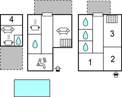 Badezimmer 4m2 (nr. 1) - WC. Warmes und kaltes Wasser. Dusche