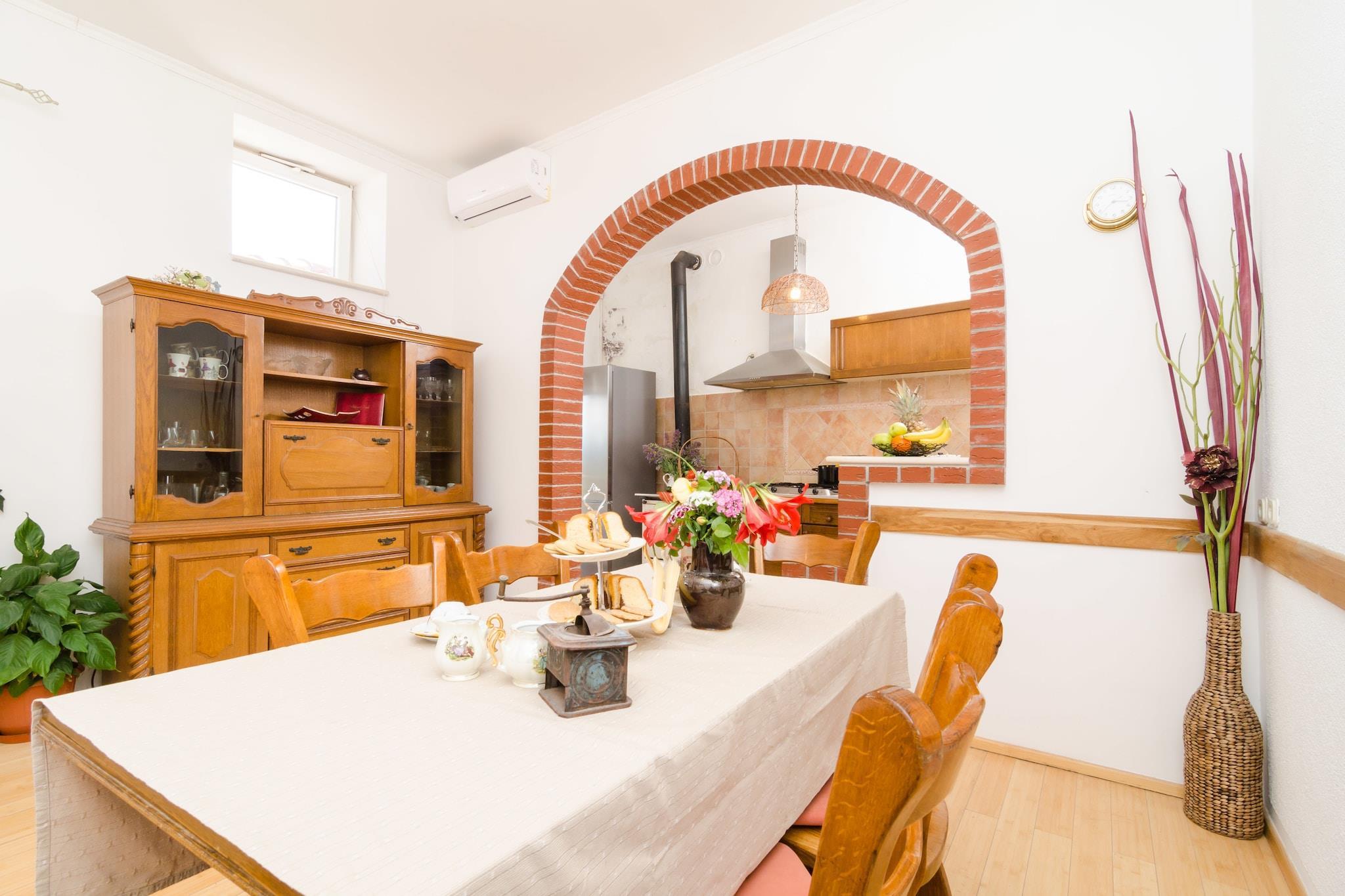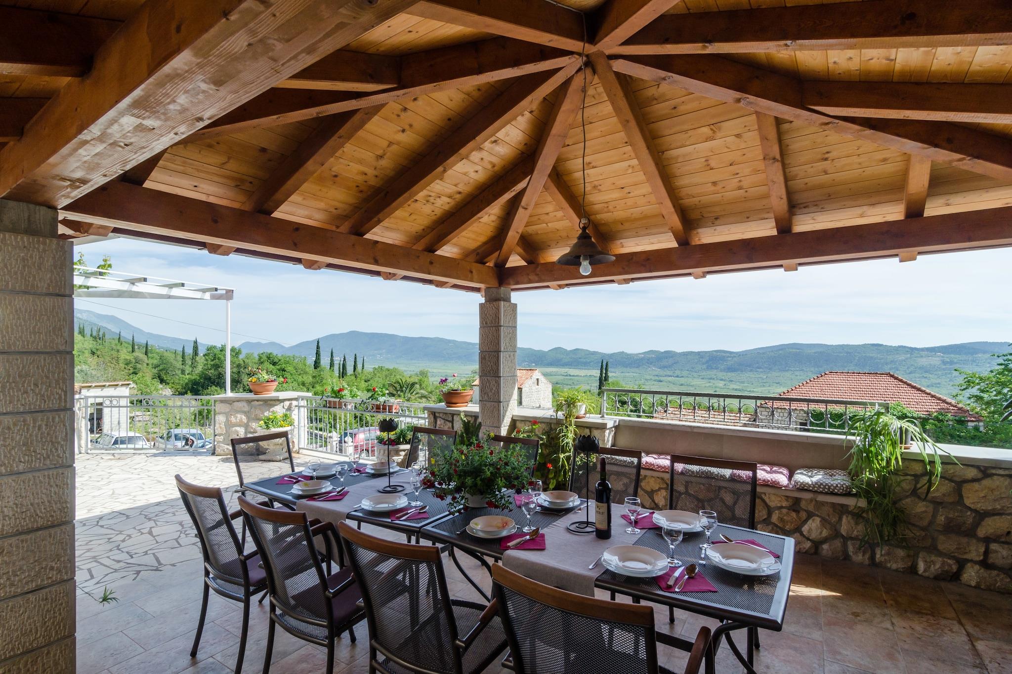 Dieses schöne Steinhaus befindet sich in der Region Konavle. Es ist im traditionellen dalmatinischen Stil mit Holz und Stein gebaut. Die sonnige, geräumige Villa verfügt über 2 Terrassen mit schöner Aussicht auf die Umgebung, den privaten Swimmingpool und den Garten. Das Anwesen ist für mehrere Familien oder Gruppen geeignet Freunde.Ihre Haustiere sind ebenfalls willkommen!Die Region Konavle verfügt über Radwege und Pfade für Touristen und Bergsteiger.Die Altstadt von Cavtat ist nur 8 km entfernt und die Stadtmauern von Dubrovnik sind 18 km entfernt.Von diesem Haus aus können Sie bequem erreichen Sie die kleine Stadt Cavtat, die Insel Lokrum, Montenegro, die Weinberge von Konavle oder das Dorf Cilipi.Der Pool ist mit Sonnenliegen, Sonnenschirmen, einer Außendusche und einem Sitzbereich ausgestattet.Sie können auch im Whirlpool entspannen. Auf Anfrage kann der Eigentümer einen schnellen Transfer zum Flughafen arrangieren, der nur 5 km von der Villa entfernt ist.