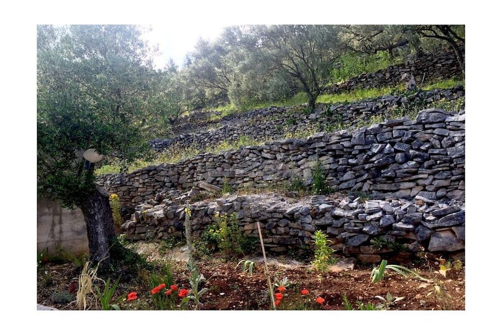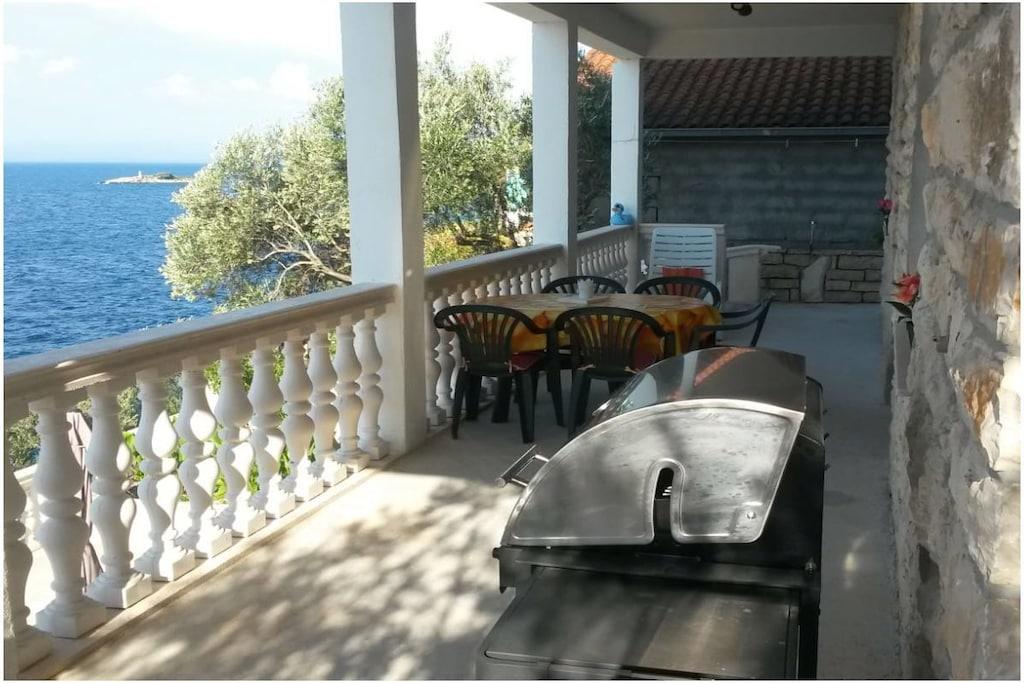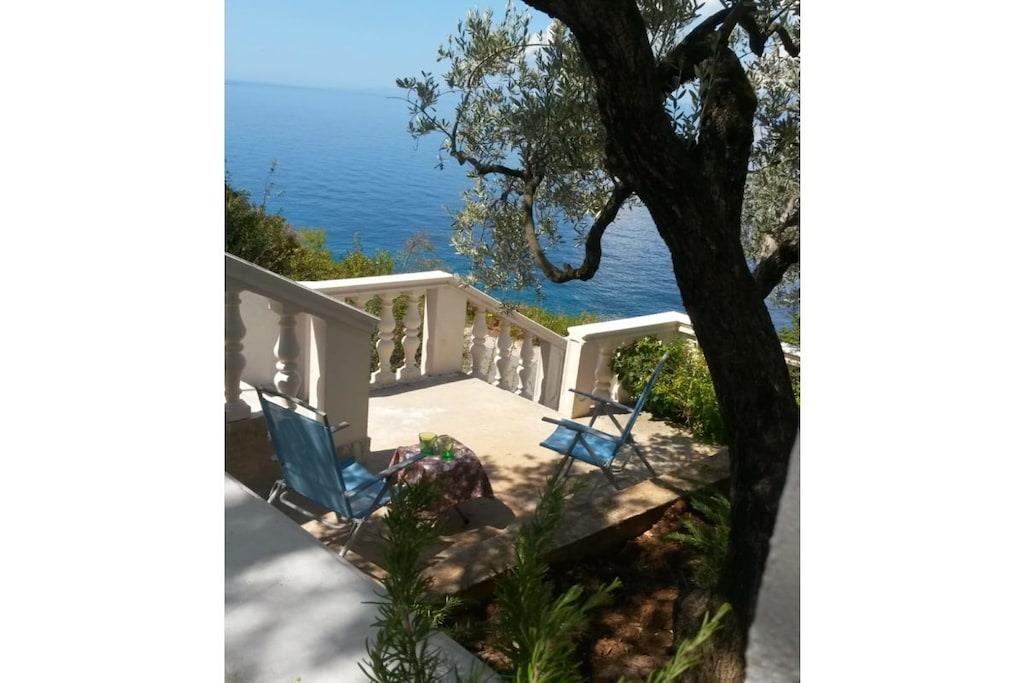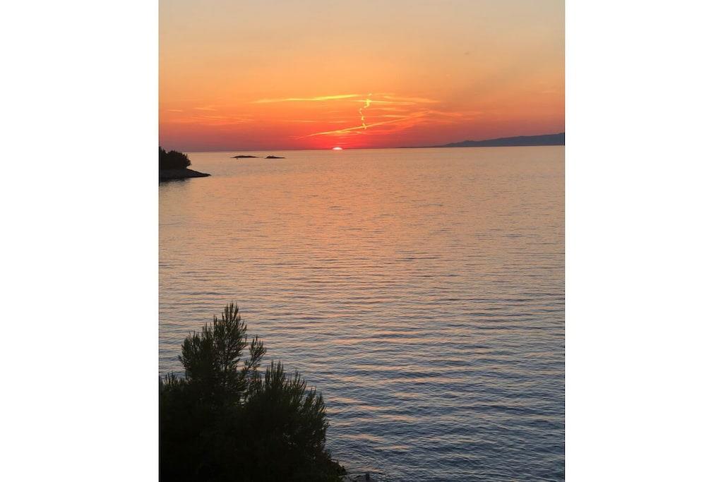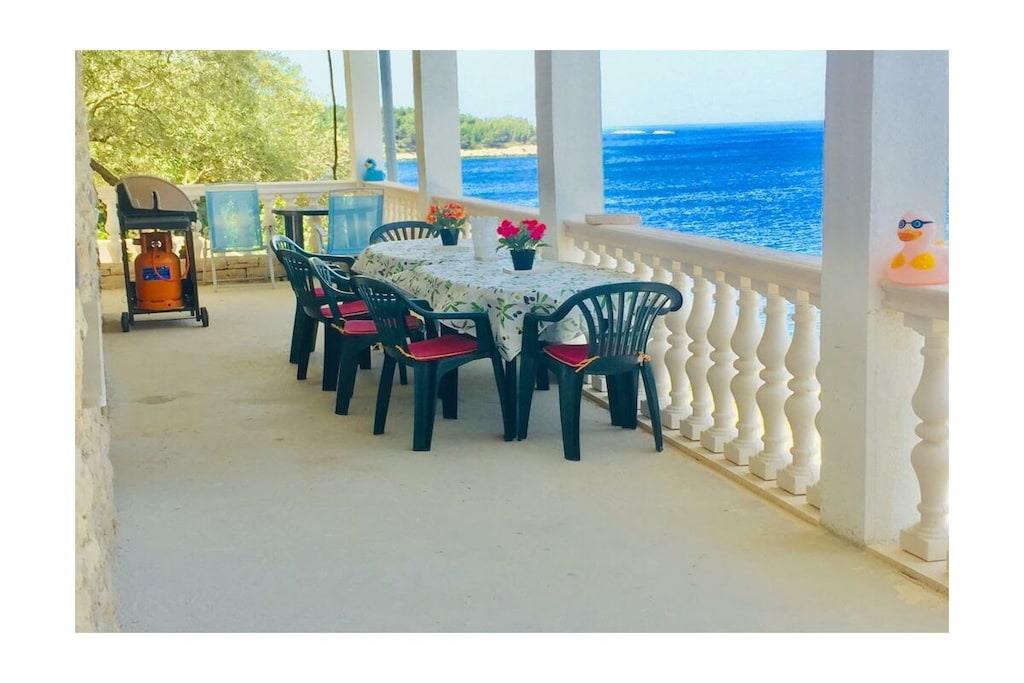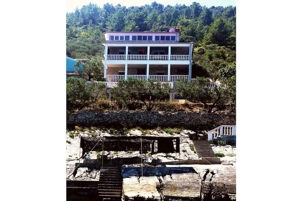 Gemütliche, zeitgemäße Ferienwohnung ( 70 m2 ) mit 2 DZ, 1 Zimmer m. Etagenbett, 2 Bäder, einer gut ausgestatteten Wohnküche mit TV, wartet auf Sie. Eine überdachteTerrasse m. 35m² u.Gasgrill u. eine Sonnenterrasse m. 50m² vervollständigen Ihre Ferienwohnung. Das Haus verfügt über Solarstrom, deshalb sind el. Geräte mit hohem Energieverbrauch ungeeignet (zB. Wasserkocher, Föhn.....),die Kaffeemaschine ist durch Espressokocher u. Kaffeefilter ersetzt. Entschleunigung ist bei uns angesagt. Dies wird durch die ruhige, wenig bebaute Bucht in der unsere Ferienwohnung liegt gefördert. Unterhalb des Hauses befinden sich unsere beschatteten Sonnenterrassen, die Sie nach einem erfrischenden Bad im Meer, zum Sonnenbaden, Lesen, Ausruhen...nutzen können.