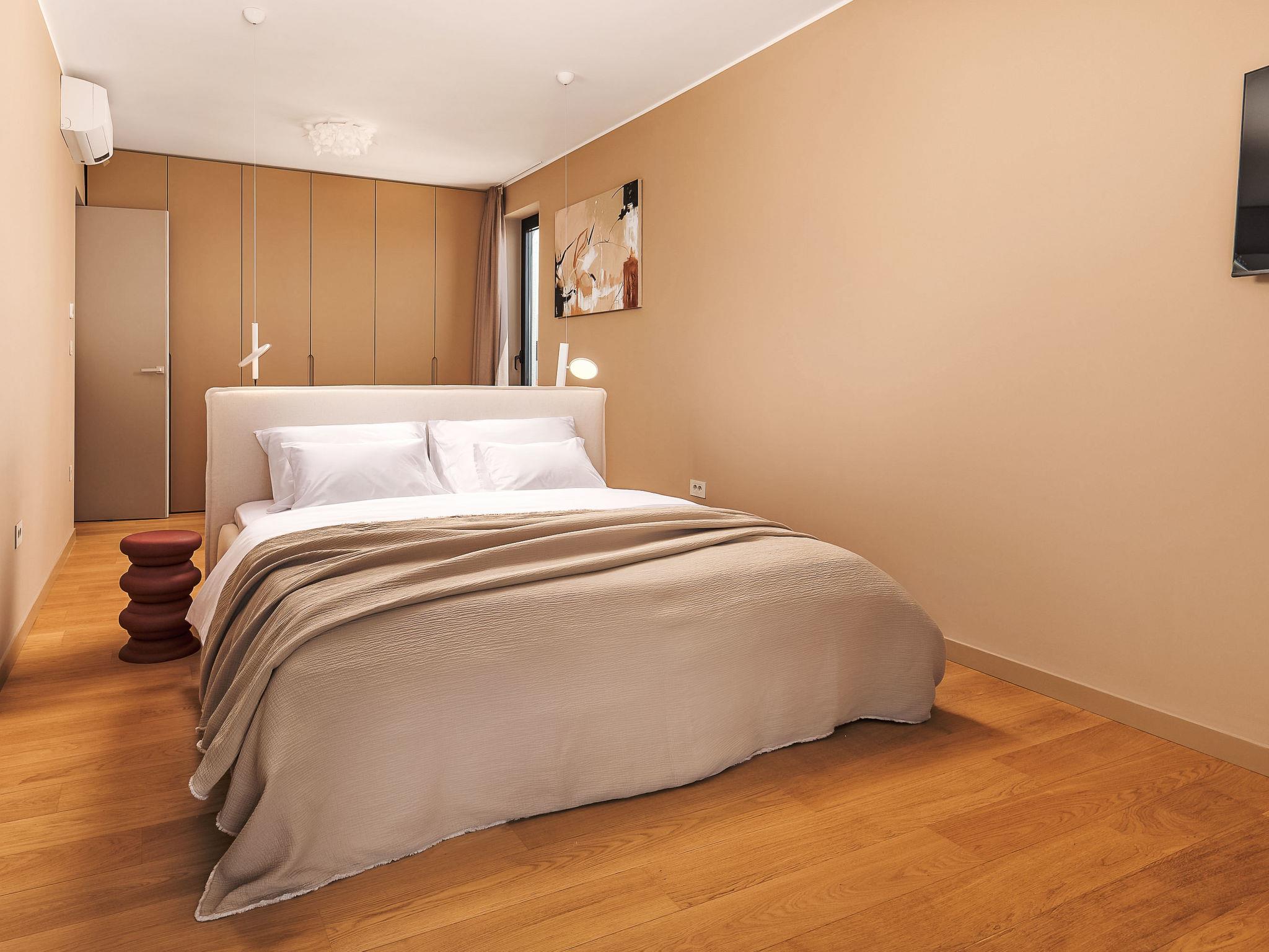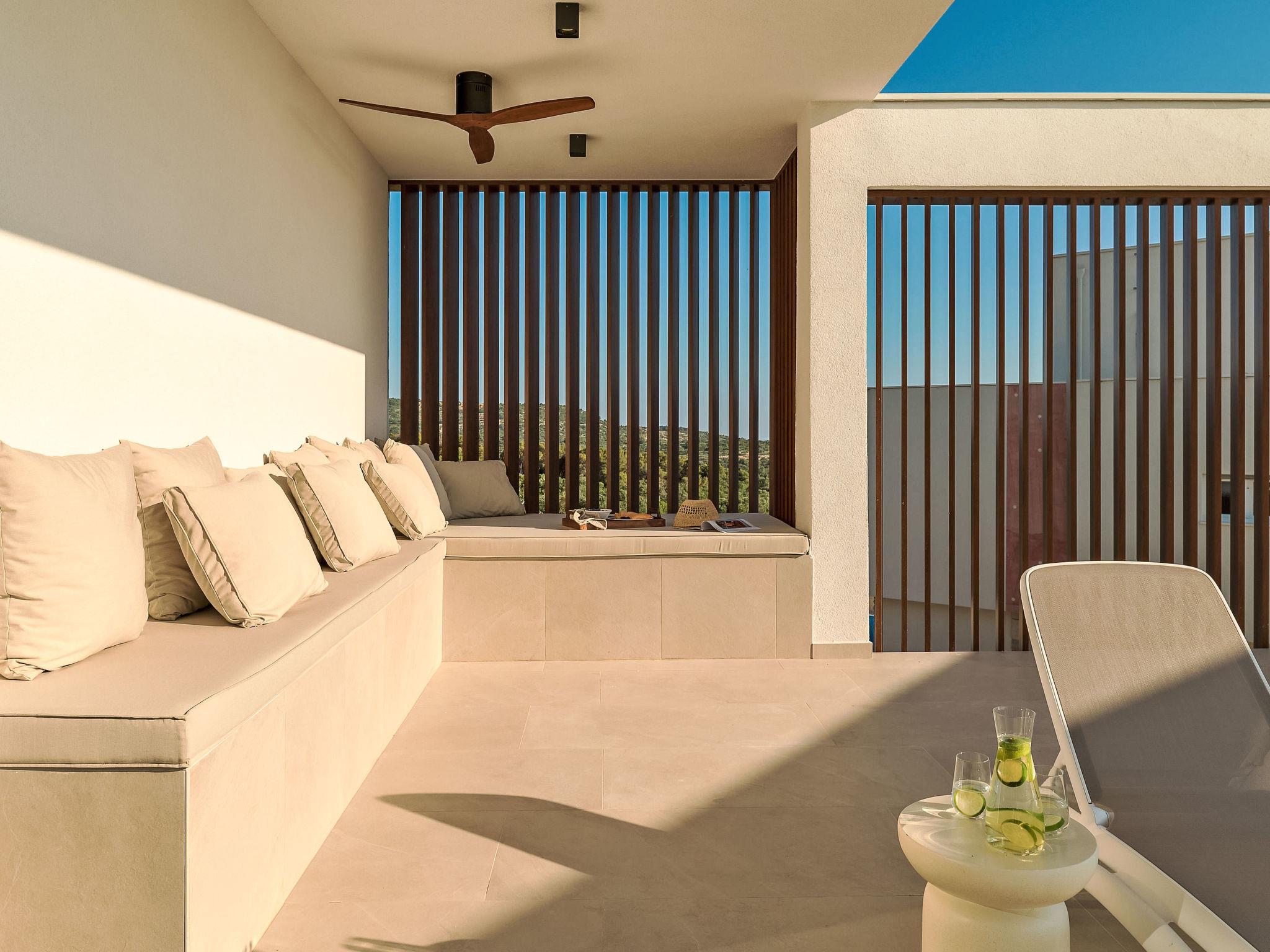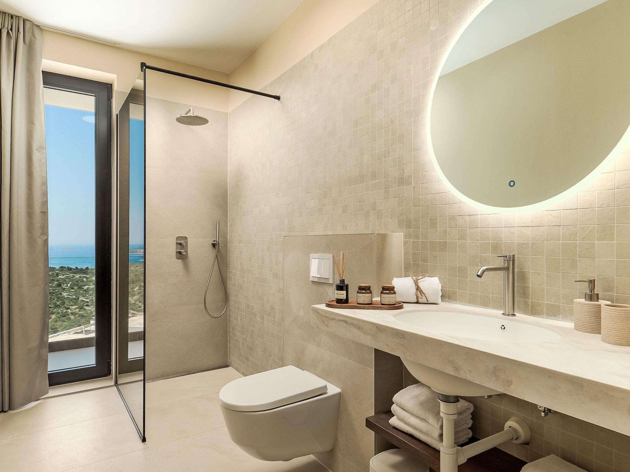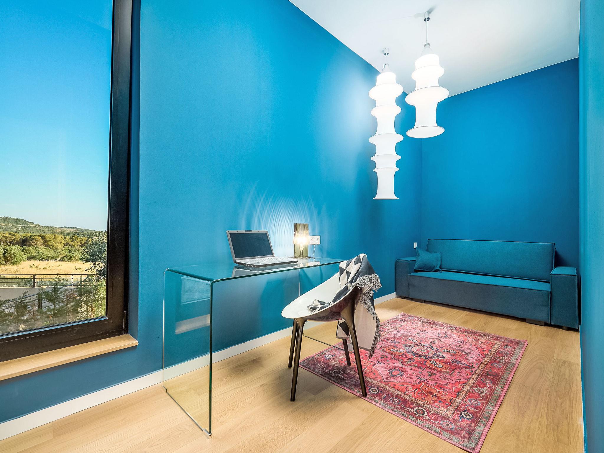 Moderne Villa "Five K", auf 3 Stockwerken. 2.3 km vom Zentrum von Primošten, ruhige, sonnige Lage, 2 m vom Meer, 2.3 km vom Strand, in einer Sackgasse. Zur Alleinbenutzung: Grundstück 1'100 m2 (eingezäunt), Garten, Liegewiese 200 m2, Schwimmbad eckig (10 x 3 m, 150 cm tief, saisonale Verfügbarkeit: 30.Mar. - 12.Okt.) mit Innentreppe. Aussendusche, Sprudelbad, Terrasse (55 m2), Gartenmöbel, Grill, Kinderspielplatz. Im Hause: Internetzugang, Billard, Spielzimmer, Tischfussball, Waschmaschine, Wäschetrockner. (extra). Parkplatz (für 4 Autos) beim Haus auf dem Grundstück, Einzelgarage. Einkaufsgeschäft 2 km, Restaurant 2.5 km, Bushaltestelle 2 km, Kieselstrand 2.3 km, Felsstrand 2.3 km. Jacht-Hafen 2 km.