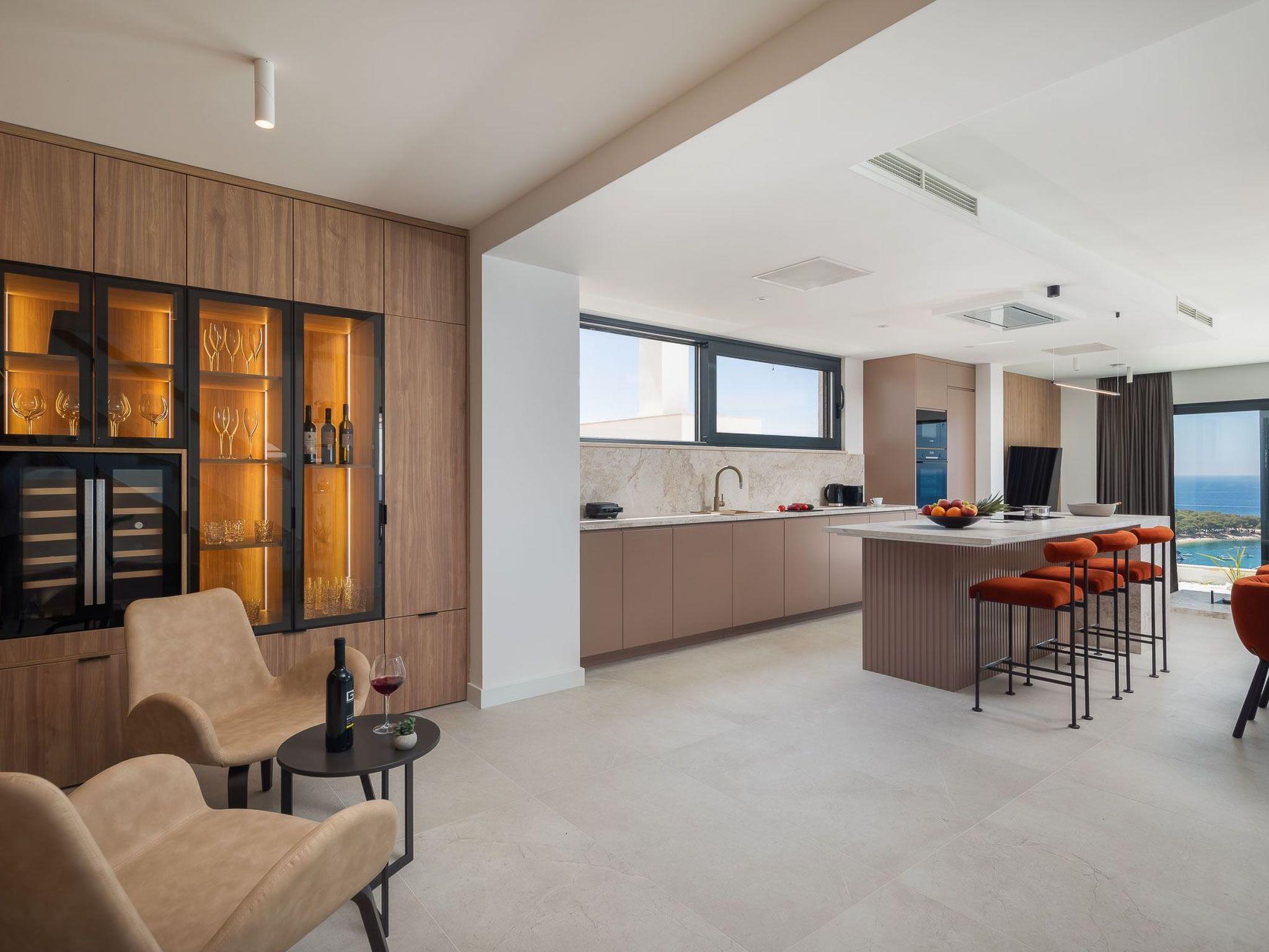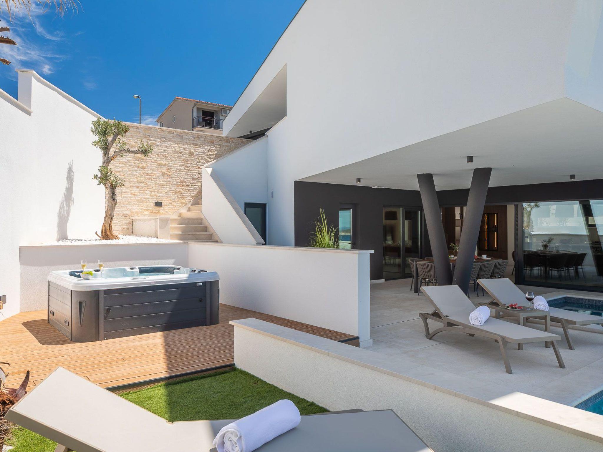 Die Lage der Villa ist ein Tor zu den bezaubernden Landschaften Dalmatiens, der Strand ist nur 300 Meter entfernt und lädt zu morgendlichen Spaziergängen oder faulen Tagen am Meer ein. Das nächstgelegene Stadtzentrum, das 4000 Meter von der Villa entfernt ist, bietet einen Einblick in das lokale Leben, mit verschiedenen Geschäften und Restaurants. Für den täglichen Bedarf gibt es in 4000 m Entfernung ein Lebensmittelgeschäft, das Ihren Aufenthalt noch angenehmer macht.