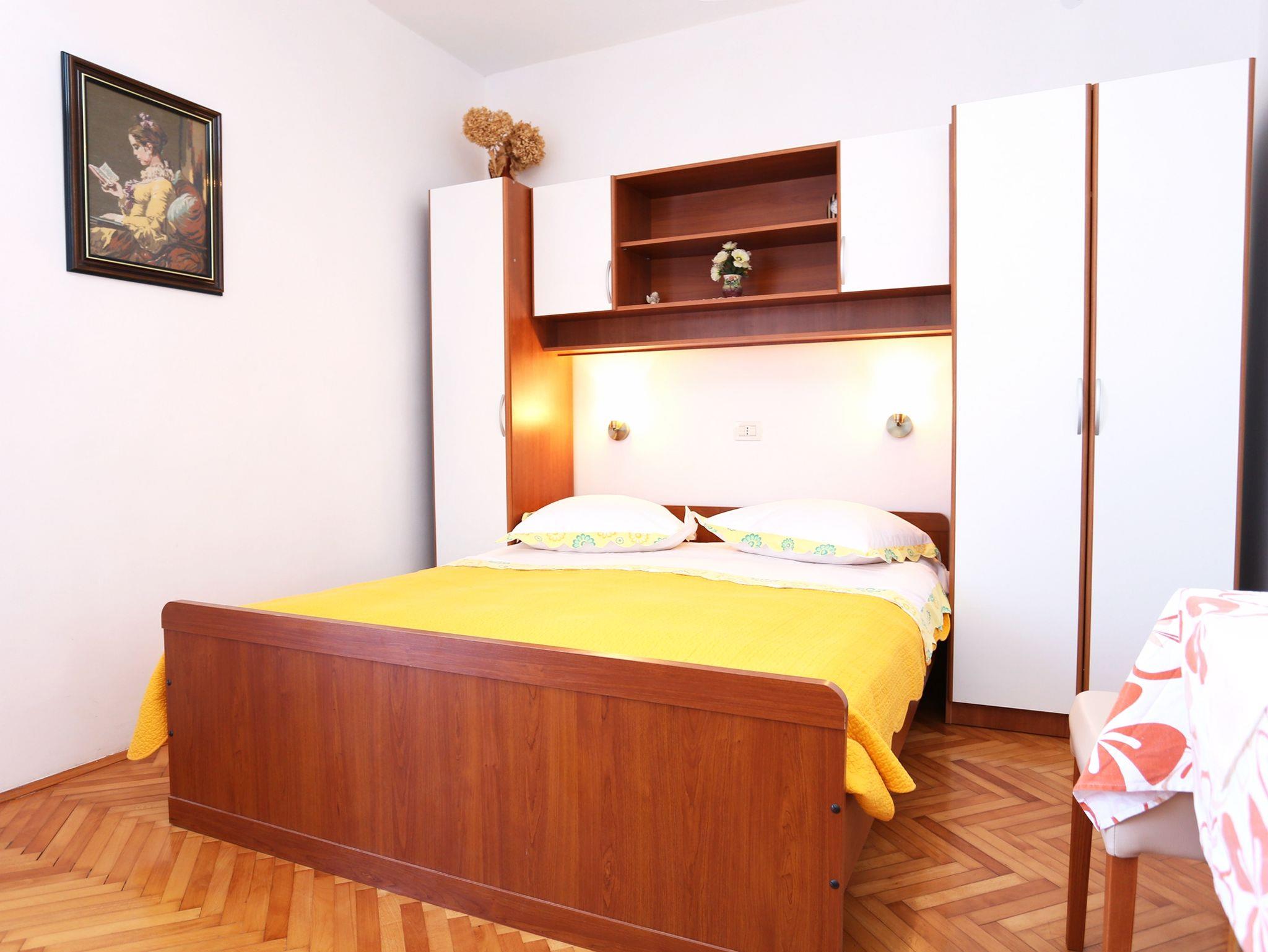 Studio bietet Platz für 3 Gäste. Die Betten sind in Schlafzimmern, die es 1 gibt, und in Esszimmer, innerhalb einer Gesamtfläche von 18m2, angeordnet. Die Gäste haben einen eigenen Balkon zur Verfügung, auf der sie in warmen Sommernächten genießen können. Das Studio-Apartment bietet Meerblick. Es ist erlaubt, Speisen auf dem Gemeinschafts-Grill vorzubereiten. IM PREIS INBEGRIFFEN: Kurtaxe, Endreinigung, Klimatisierung, Parkplatz, Internet, Kinderbett, Bügeleisen, Föhn. VERBINDLICHE ZUSÄTZLICHE KOSTEN: Aufzahlung für Kurzaufenthalte (prozentualer Zuschlag pro Nächtigungsanzahl: 30% - 1, 20% - 2, 10% - 3). UNVERBINDLICHE ZUSÄTZLICHE KOSTEN: Wäschewaschen (5,00 € Waschen). Die Verfügbarkeit zusätzlicher Dienstleistungen in Ihrem reservierten Termin und die Preise derselben (falls nicht aufgeführt) müssen im Voraus überprüft werden. Zusätzliche Dienstleistungen die in der Zahlungsaufforderung nicht aufgeführt sind werden direkt beim Vermieter bezahlt, angenommen der Gast nutzt auch diese.