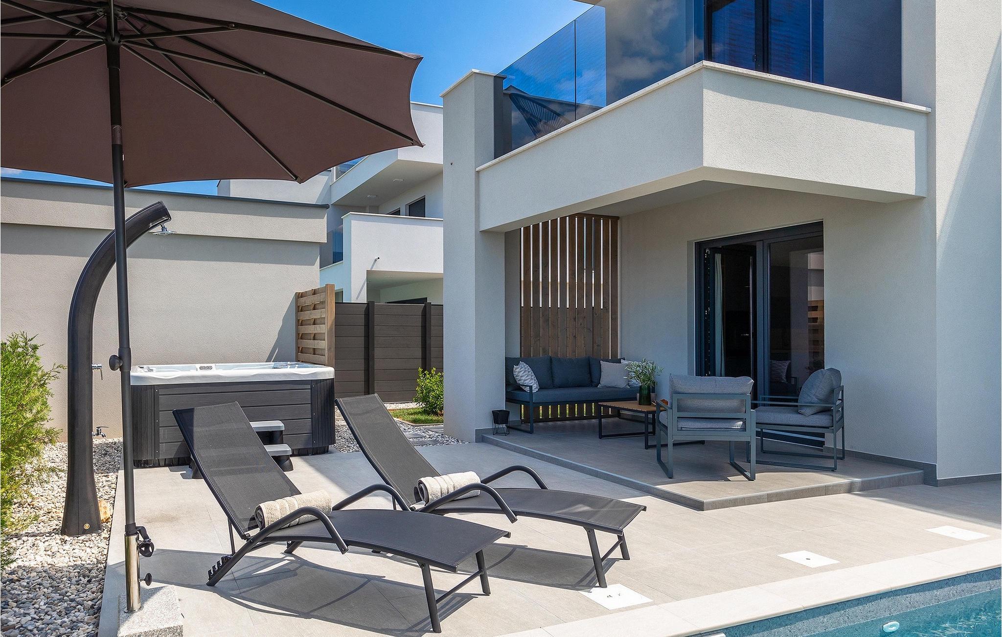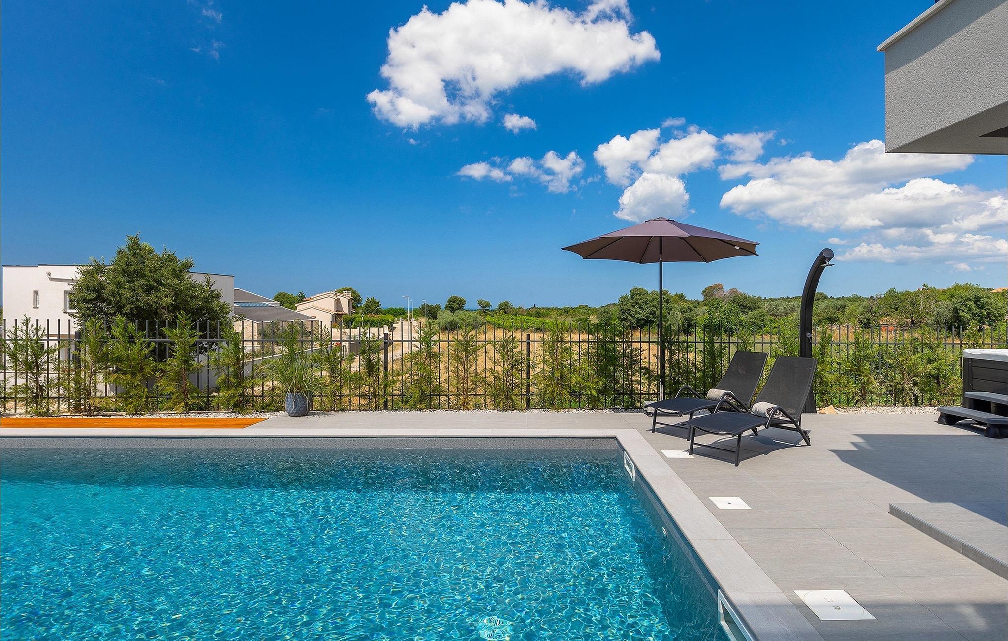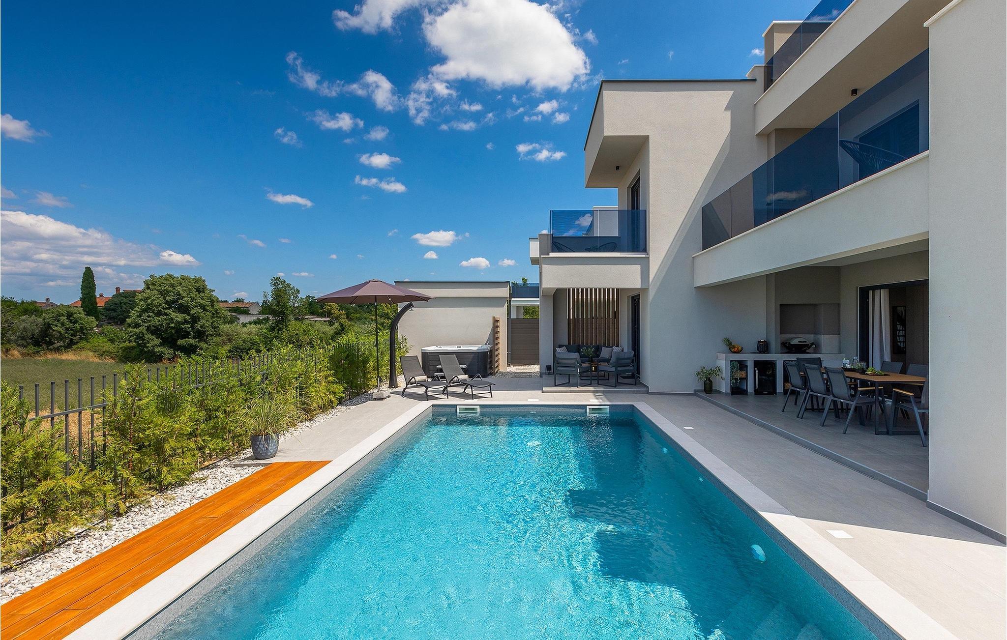 Villa IVaLA ist eine wunderschöne Familienvilla in der Nähe von Pula, ideal für einen Traumurlaub mit Familie und Freunden. Vor der Villa befindet sich ein wunderschöner Pool von 32 m2. Während der Sommerhitze finden Sie Erfrischung im Pool, während Sonnenanbeter auf den Liegestühlen direkt am Pool die istrische Sonne genießen können. Entspannen Sie im Außenwhirlpool. Genießen Sie auf dem Grill zubereitete istrische Gerichte in einem überdachten Bereich vor der Villa, wo Sie einen Esstisch für 8 Personen finden können. Die jüngsten Gäste vergnügen sich auf dem Kinderspielplatz, der mit Schaukeln und Klettergerüsten ausgestattet ist. Aber auch in der Villa kommt der Spaß nicht zu kurz. Auf der Terrasse im ersten Stock der Villa könnenSie sich bei einer Partie Tischfußball vergnügen. Im Erdgeschoss der Villa gibt es ein gemütliches Wohnzimmer mit herrlichem Blick auf den Pool. Im offenen Raum gibt es auch eine ausgestattete Küche mit allem, was Sie zum Zubereiten köstlicher Mahlzeiten benötigen, und ein Esszimmer mit 6 Sitzplätzen. Auf der gleichen Etage stehen Ihnen ein Badezimmer und eine separate Toilette zur Verfügung. Im ersten Stock befinden sich die Schlafzimmer. Das erste Schlafzimmer ist mit einem Doppelbett und einem eigenen Badezimmer ausgestattet. Die anderen beiden Schlafzimmer verfügen über Doppelbetten und auf dieser Etage befindet sich ein separates Badezimmer. Alle Schlafzimmer verfügen über Klimaanlage, Fernseher und eigene Terrassen, auf denen Sie Ihren Morgenkaffee genießen und dabei den wunderschönen Meerblick bewundern können. Das Besondere an der Villa ist die Dachterrasse, die sich im zweiten Stock befindet. Genießen Sie den einzigartigen Blick auf die Brijuni-Inseln und das wunderschöne Meer, der Ihnen den Atem rauben wird. Lassen Sie sich einen einzigartigen Urlaub in der Villa IVaLA mit Panoramablick nicht entgehen und genießen Sie die Atmosphäre des charmanten Dorfes Galizana. Galizana ist ein Dorf in Istrien zwischen Vodnjan und Pula. Galizana hat eine reiche Geschichte und Tradition, die bis in die Antike zurückreicht. Die lokale Bevölkerung wird Sie mit ihren Produkten begeistern. Verpassen Sie nicht, natives Olivenöl extra, Schafskäse und andere lokale Produkte zu probieren. Viel Spaß bei lokalen Veranstaltungen wie Galizischen Nächten und Folklore. Verpassen Sie nicht, Vodnjan mit seinem reichhaltigen gastronomischen Angebot zu besuchen. Erkunden Sie Vodnjan mit seinen interessanten Wandgemälden, der Kirche St. Foska, in dessen Nähe sich drei Kazuns befinden, traditionelle Schutzhütten aus istrischem Stein. Naturliebhaber werden das Dorf Peroj genießen und die wunderschöne Aussicht auf den Fazana-Kanal und das Brijuni-Archipel bewundern. Ein unverzichtbares Ziel ist die größte istrische Stadt Pula, wo Sie die Pula-Arena, den Augustus-Tempel, das Goldene Tor und viele andere kulturelle und historische Denkmäler besichtigen können. Erkunden Sie am Ende Ihres Istrien-Abenteuers den Brijuni-Archipel mit dem berühmten Brijuni-Nationalpark und seinem Safaripark.