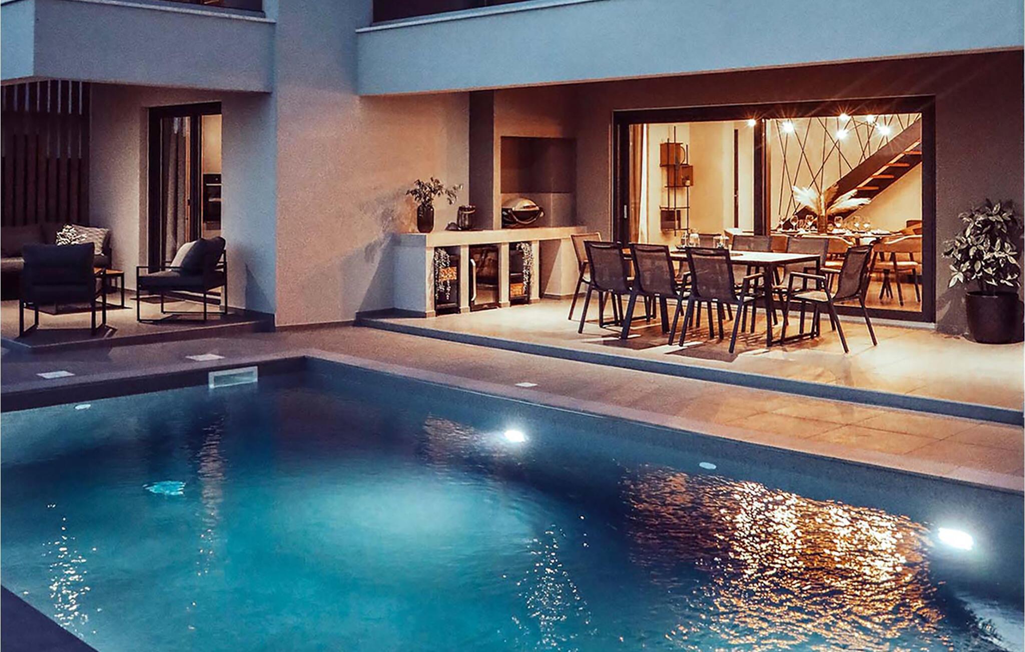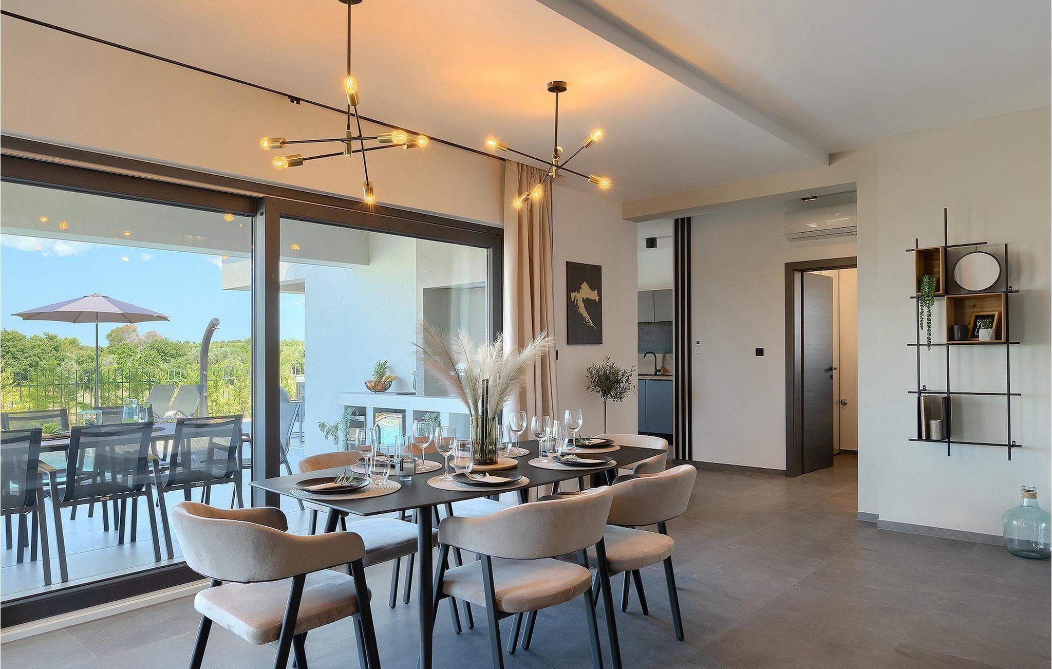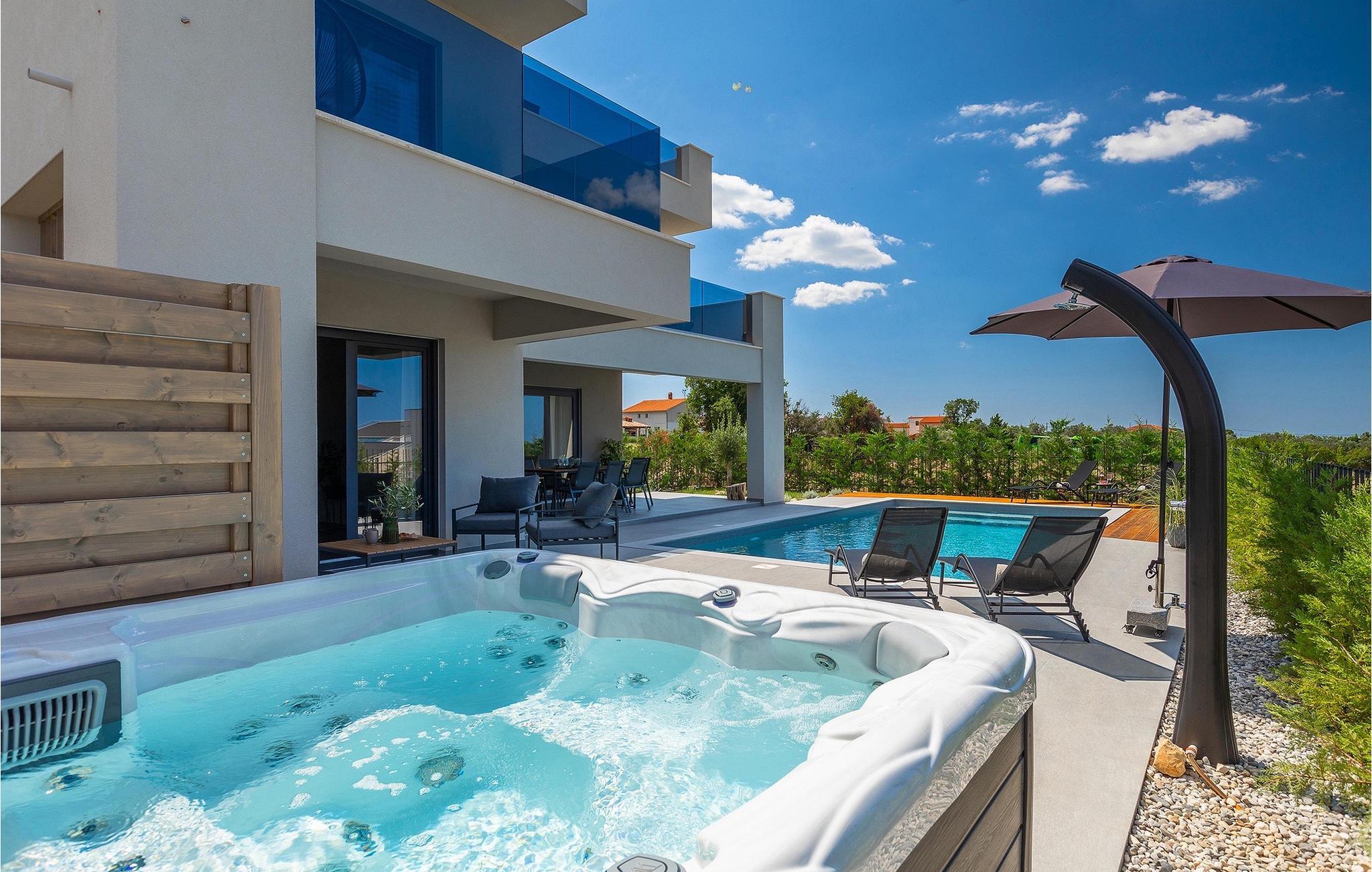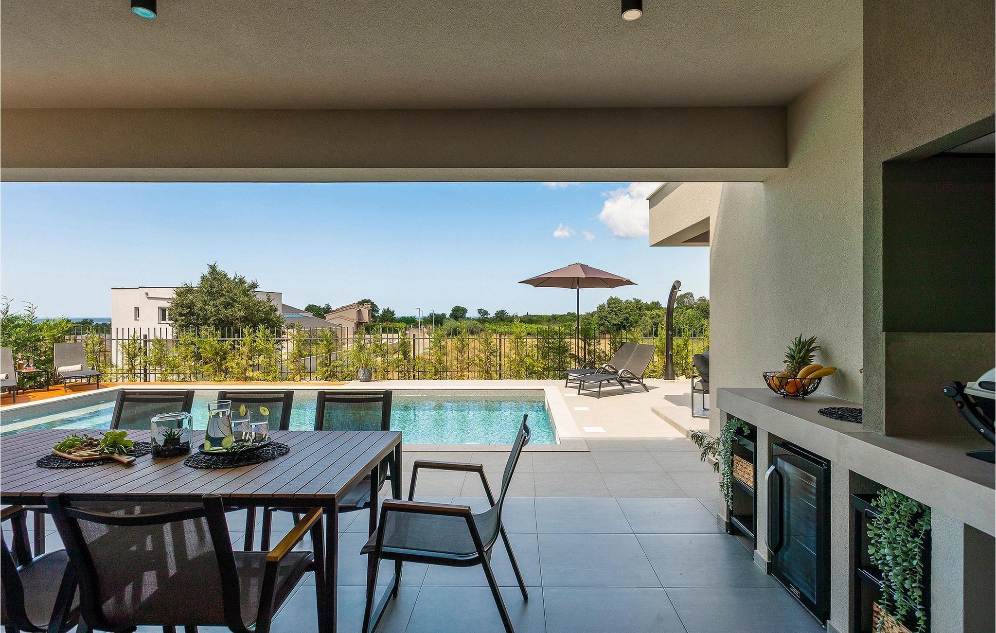 Villa IVaLA ist eine wunderschöne Familienvilla in der Nähe von Pula, ideal für einen Traumurlaub mit Familie und Freunden. Vor der Villa befindet sich ein wunderschöner Pool von 32 m2. Während der Sommerhitze finden Sie Erfrischung im Pool, während Sonnenanbeter auf den Liegestühlen direkt am Pool die istrische Sonne genießen können. Entspannen Sie im Außenwhirlpool. Genießen Sie auf dem Grill zubereitete istrische Gerichte in einem überdachten Bereich vor der Villa, wo Sie einen Esstisch für 8 Personen finden können. Die jüngsten Gäste vergnügen sich auf dem Kinderspielplatz, der mit Schaukeln und Klettergerüsten ausgestattet ist. Aber auch in der Villa kommt der Spaß nicht zu kurz. Auf der Terrasse im ersten Stock der Villa könnenSie sich bei einer Partie Tischfußball vergnügen. Im Erdgeschoss der Villa gibt es ein gemütliches Wohnzimmer mit herrlichem Blick auf den Pool. Im offenen Raum gibt es auch eine ausgestattete Küche mit allem, was Sie zum Zubereiten köstlicher Mahlzeiten benötigen, und ein Esszimmer mit 6 Sitzplätzen. Auf der gleichen Etage stehen Ihnen ein Badezimmer und eine separate Toilette zur Verfügung. Im ersten Stock befinden sich die Schlafzimmer. Das erste Schlafzimmer ist mit einem Doppelbett und einem eigenen Badezimmer ausgestattet. Die anderen beiden Schlafzimmer verfügen über Doppelbetten und auf dieser Etage befindet sich ein separates Badezimmer. Alle Schlafzimmer verfügen über Klimaanlage, Fernseher und eigene Terrassen, auf denen Sie Ihren Morgenkaffee genießen und dabei den wunderschönen Meerblick bewundern können. Das Besondere an der Villa ist die Dachterrasse, die sich im zweiten Stock befindet. Genießen Sie den einzigartigen Blick auf die Brijuni-Inseln und das wunderschöne Meer, der Ihnen den Atem rauben wird. Lassen Sie sich einen einzigartigen Urlaub in der Villa IVaLA mit Panoramablick nicht entgehen und genießen Sie die Atmosphäre des charmanten Dorfes Galizana. Galizana ist ein Dorf in Istrien zwischen Vodnjan und Pula. Galizana hat eine reiche Geschichte und Tradition, die bis in die Antike zurückreicht. Die lokale Bevölkerung wird Sie mit ihren Produkten begeistern. Verpassen Sie nicht, natives Olivenöl extra, Schafskäse und andere lokale Produkte zu probieren. Viel Spaß bei lokalen Veranstaltungen wie Galizischen Nächten und Folklore. Verpassen Sie nicht, Vodnjan mit seinem reichhaltigen gastronomischen Angebot zu besuchen. Erkunden Sie Vodnjan mit seinen interessanten Wandgemälden, der Kirche St. Foska, in dessen Nähe sich drei Kazuns befinden, traditionelle Schutzhütten aus istrischem Stein. Naturliebhaber werden das Dorf Peroj genießen und die wunderschöne Aussicht auf den Fazana-Kanal und das Brijuni-Archipel bewundern. Ein unverzichtbares Ziel ist die größte istrische Stadt Pula, wo Sie die Pula-Arena, den Augustus-Tempel, das Goldene Tor und viele andere kulturelle und historische Denkmäler besichtigen können. Erkunden Sie am Ende Ihres Istrien-Abenteuers den Brijuni-Archipel mit dem berühmten Brijuni-Nationalpark und seinem Safaripark.