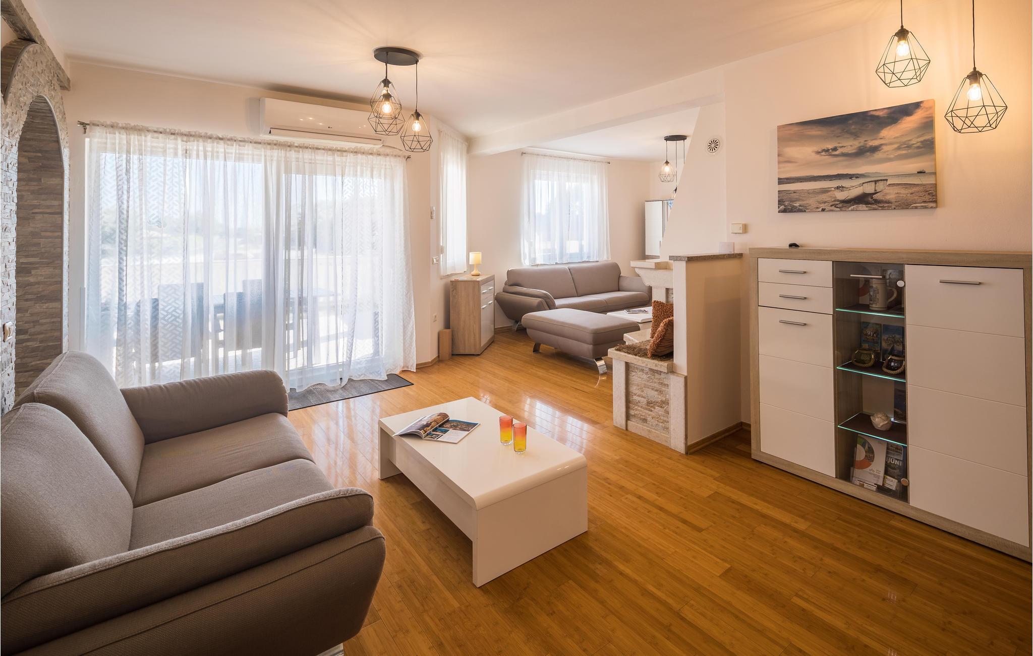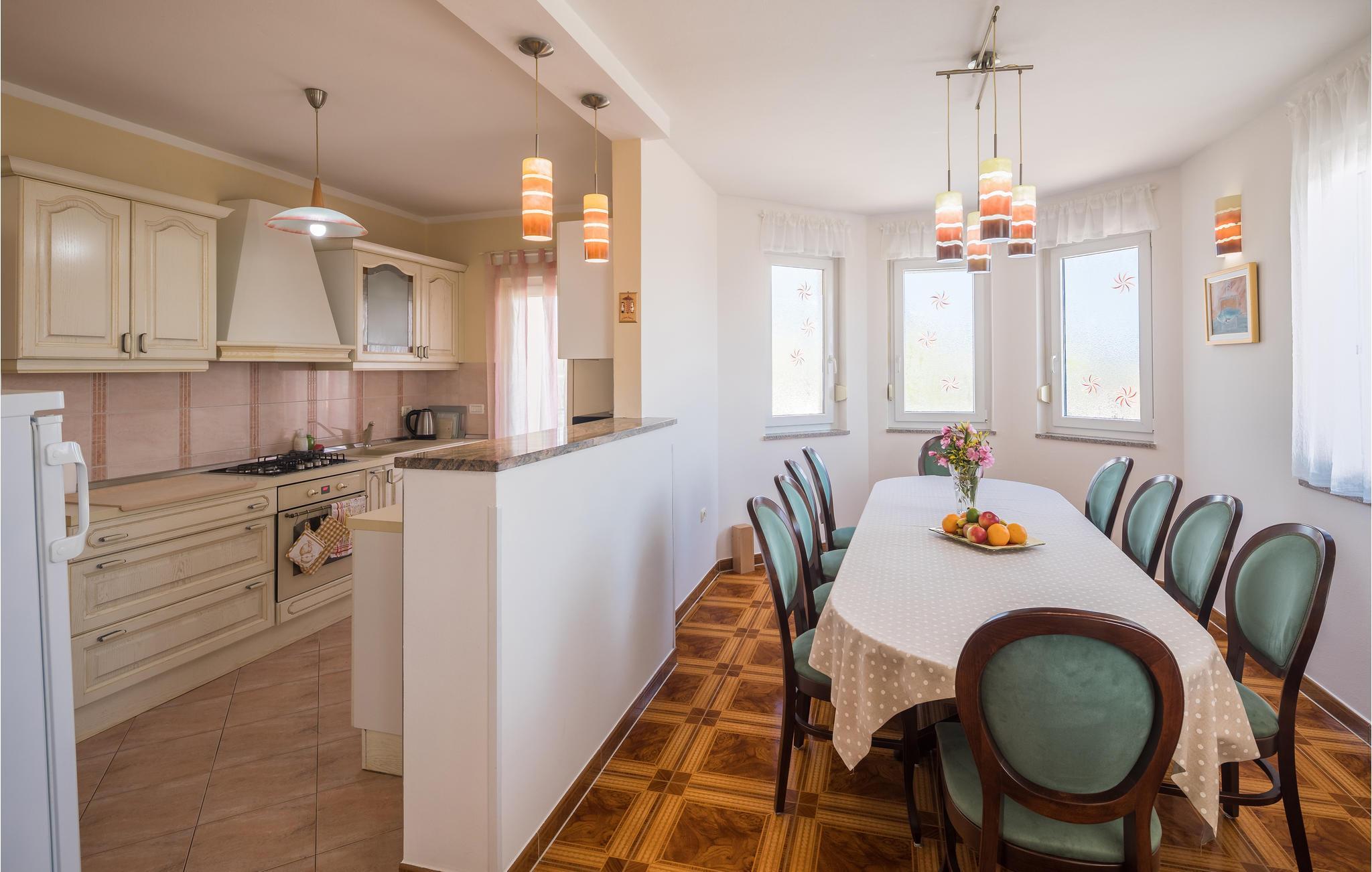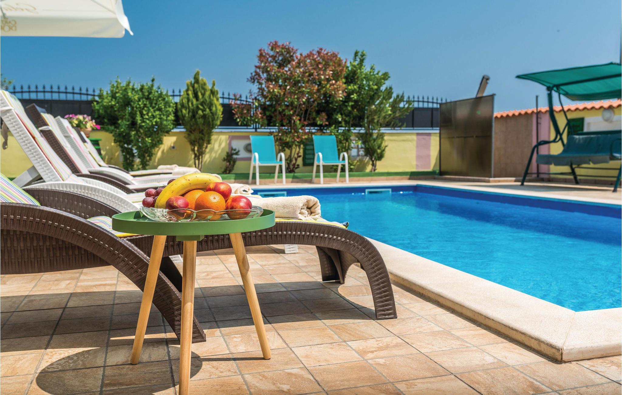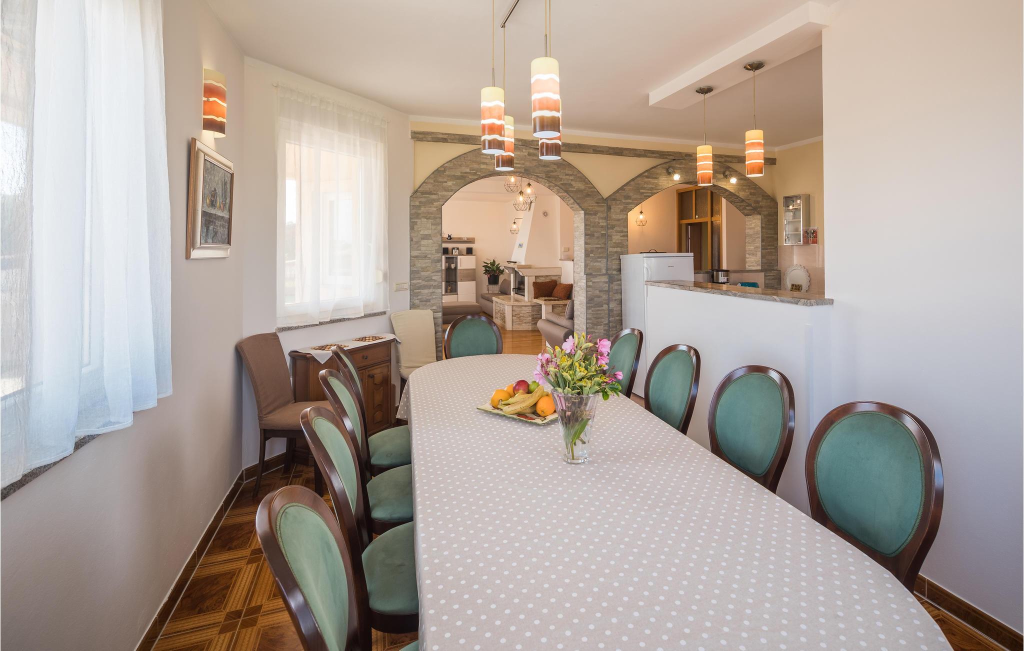 Das moderne Ferienhaus liegt im Ort Loborika, 6 Kilometer vom antiken Pula entfernt. Mit großzügig dimensionierten Räumlichkeiten und einer komfortablen Einrichtung ist Ihnen ein angenehmer Urlaub sicher. Da das Erdgeschoß und der 1. Stock durch Außentreppen verbunden sind, ist das Haus ideal für einen gemeinsamen Urlaub von zwei Familien, die dabei keineswegs auf Privatsphäre verzichten müssen. Das Esszimmer im Erdgeschoß ist groß genug, um alle Gäste des Hauses zu empfangen und mit der überdachten Terrasse werden ideale Aufenthaltsräume für gemeinsame Mahlzeiten, Spiele, Unterhaltung und mehr geboten. Die neugierigen Blicke von anderen Menschen während Sie baden und sich am Pool sonnen, werden durch Mauern verhindert, die somit Privatsphäre garantieren. Den Kleinsten stehen Wippe und die Rutsche zur Verfügung. Die Lage des Hauses ermöglicht Ihnen Tagesausflüge nach Pula zu unternehmen, oder das schöne Innere Istriens und seine Besonderheiten zu erkunden. Die schönen Strände finden Sie in der Nähe von Pula, Medulin, Krnica und Duga Uvala, sicher ist Ihr Lieblingsstrand dabei.