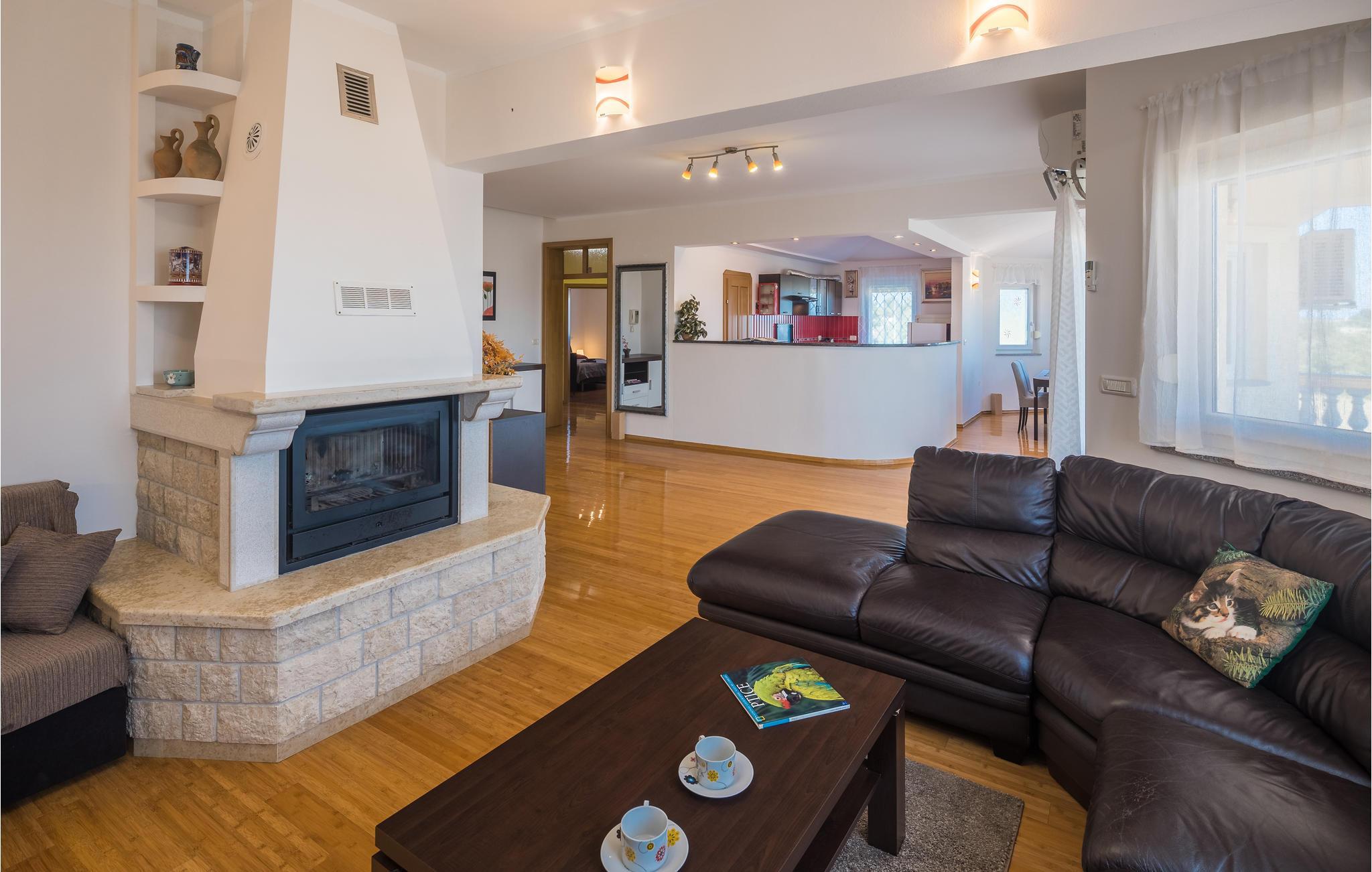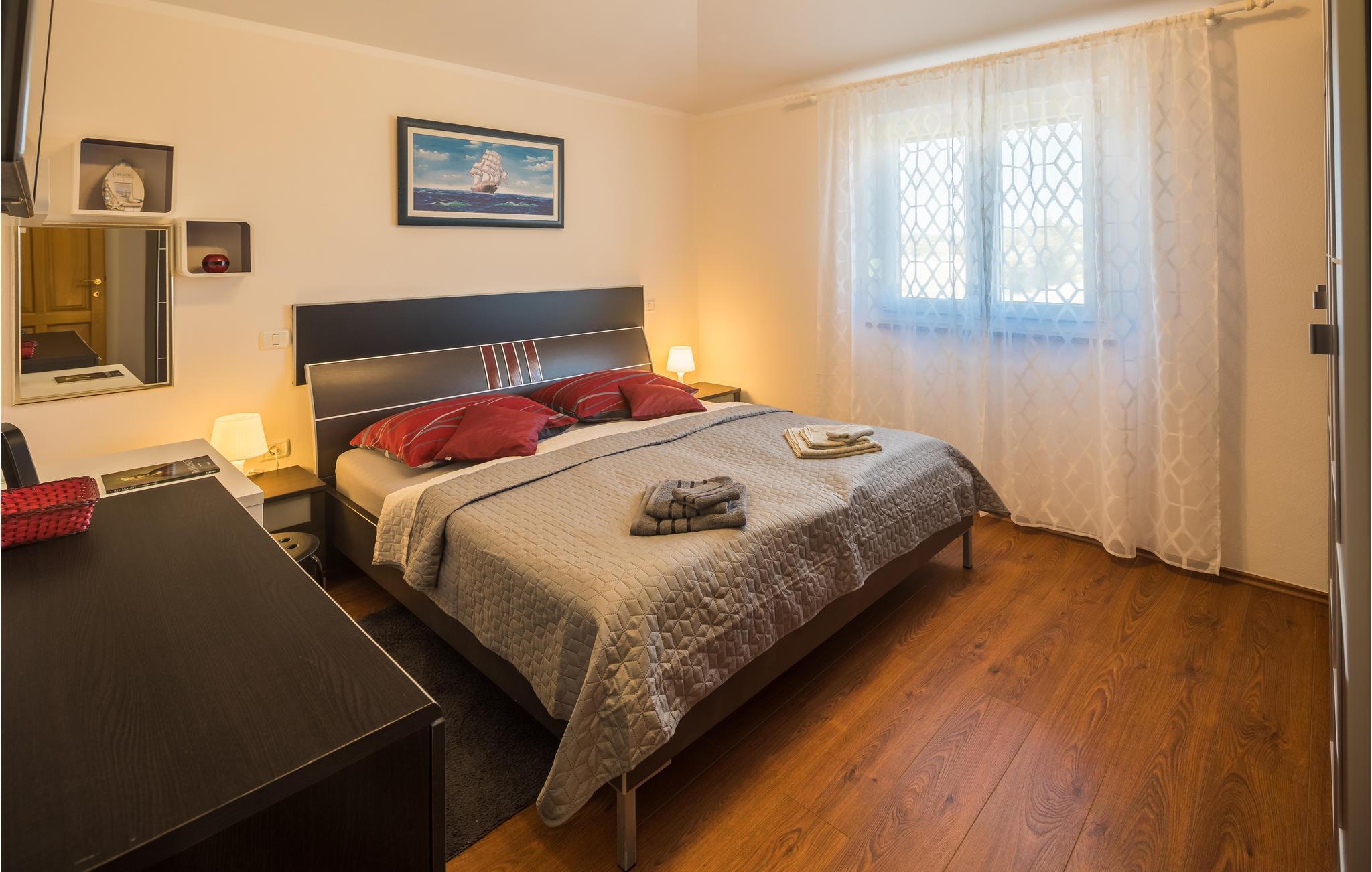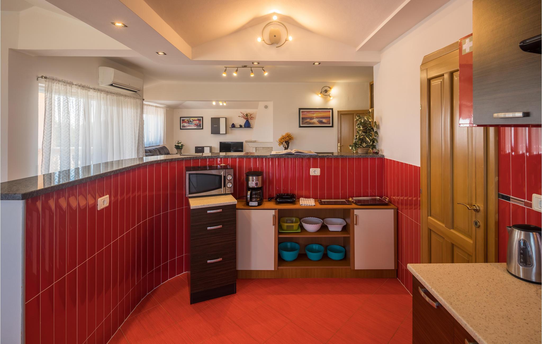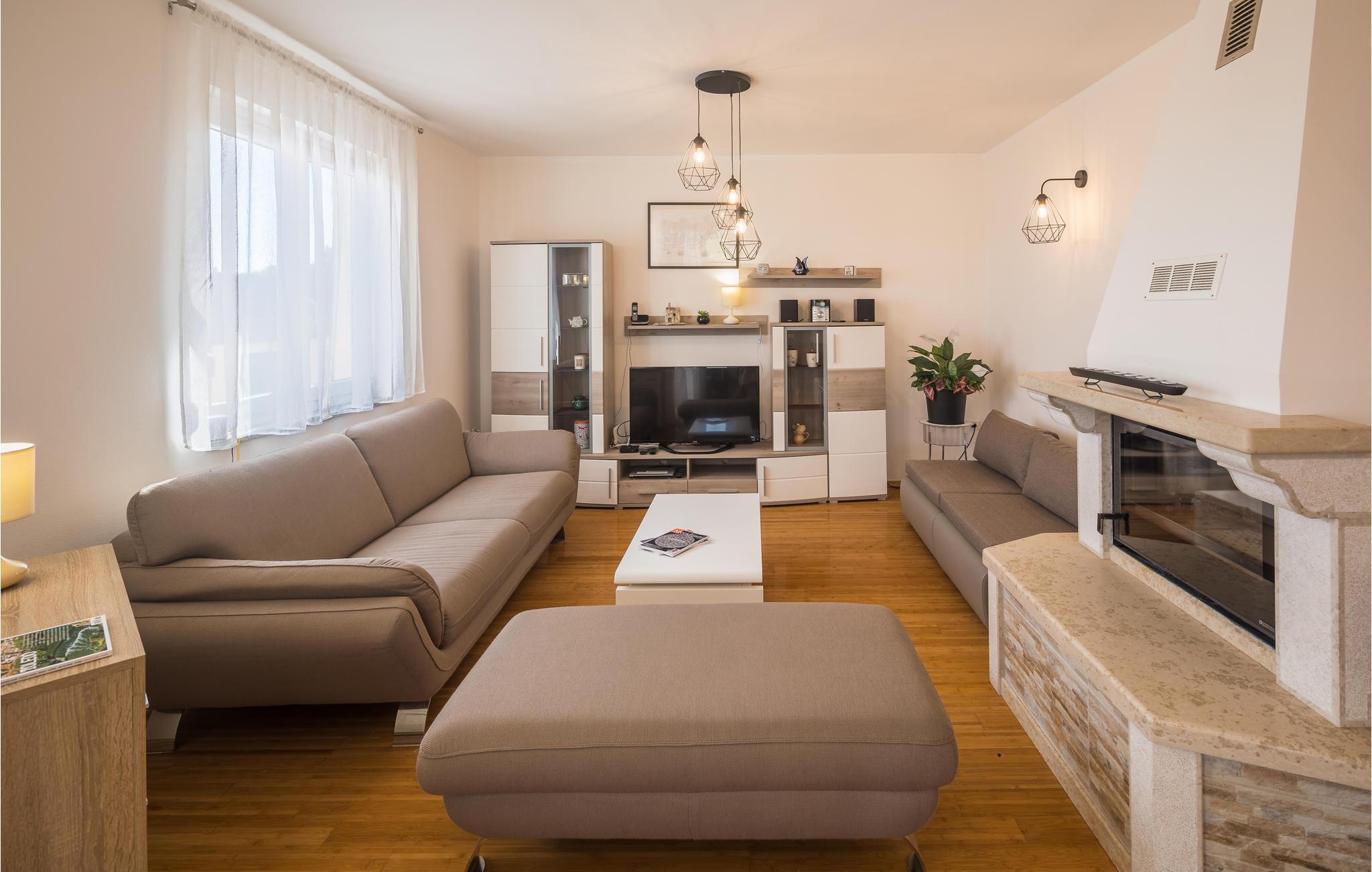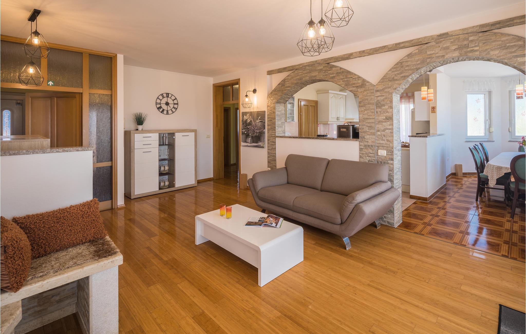 Das moderne Ferienhaus liegt im Ort Loborika, 6 Kilometer vom antiken Pula entfernt. Mit großzügig dimensionierten Räumlichkeiten und einer komfortablen Einrichtung ist Ihnen ein angenehmer Urlaub sicher. Da das Erdgeschoß und der 1. Stock durch Außentreppen verbunden sind, ist das Haus ideal für einen gemeinsamen Urlaub von zwei Familien, die dabei keineswegs auf Privatsphäre verzichten müssen. Das Esszimmer im Erdgeschoß ist groß genug, um alle Gäste des Hauses zu empfangen und mit der überdachten Terrasse werden ideale Aufenthaltsräume für gemeinsame Mahlzeiten, Spiele, Unterhaltung und mehr geboten. Die neugierigen Blicke von anderen Menschen während Sie baden und sich am Pool sonnen, werden durch Mauern verhindert, die somit Privatsphäre garantieren. Den Kleinsten stehen Wippe und die Rutsche zur Verfügung. Die Lage des Hauses ermöglicht Ihnen Tagesausflüge nach Pula zu unternehmen, oder das schöne Innere Istriens und seine Besonderheiten zu erkunden. Die schönen Strände finden Sie in der Nähe von Pula, Medulin, Krnica und Duga Uvala, sicher ist Ihr Lieblingsstrand dabei.