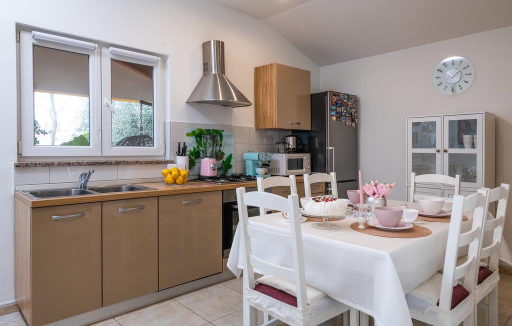 Dieses schöne Ferienhaus ist sehr leicht zu erreichen, da es neben der Hauptstraße Pula-Labin liegt und als solches ideal ist, wenn Sie den südlichen Teil der Halbinsel erkunden wollen - von Vodnjan bis nach Medulin und Rabac. Es verfügt über schönen Garten mit überdachter Terrasse und Grill, wo man in den lauen Sommerabenden entspannen kann. Der Innenraum ist komfortabel und stilvoll eingerichtet, so dass Sie sich sicher Wohl fühlen werden. Strände sind im touristischen Komplex Duga Uvala, wo es auch einen Aqua-Park gibt. Aufgrund der Nähe der Hauptstraße, ist das Haus nicht für Familien mit kleinen Kindern geeignet.