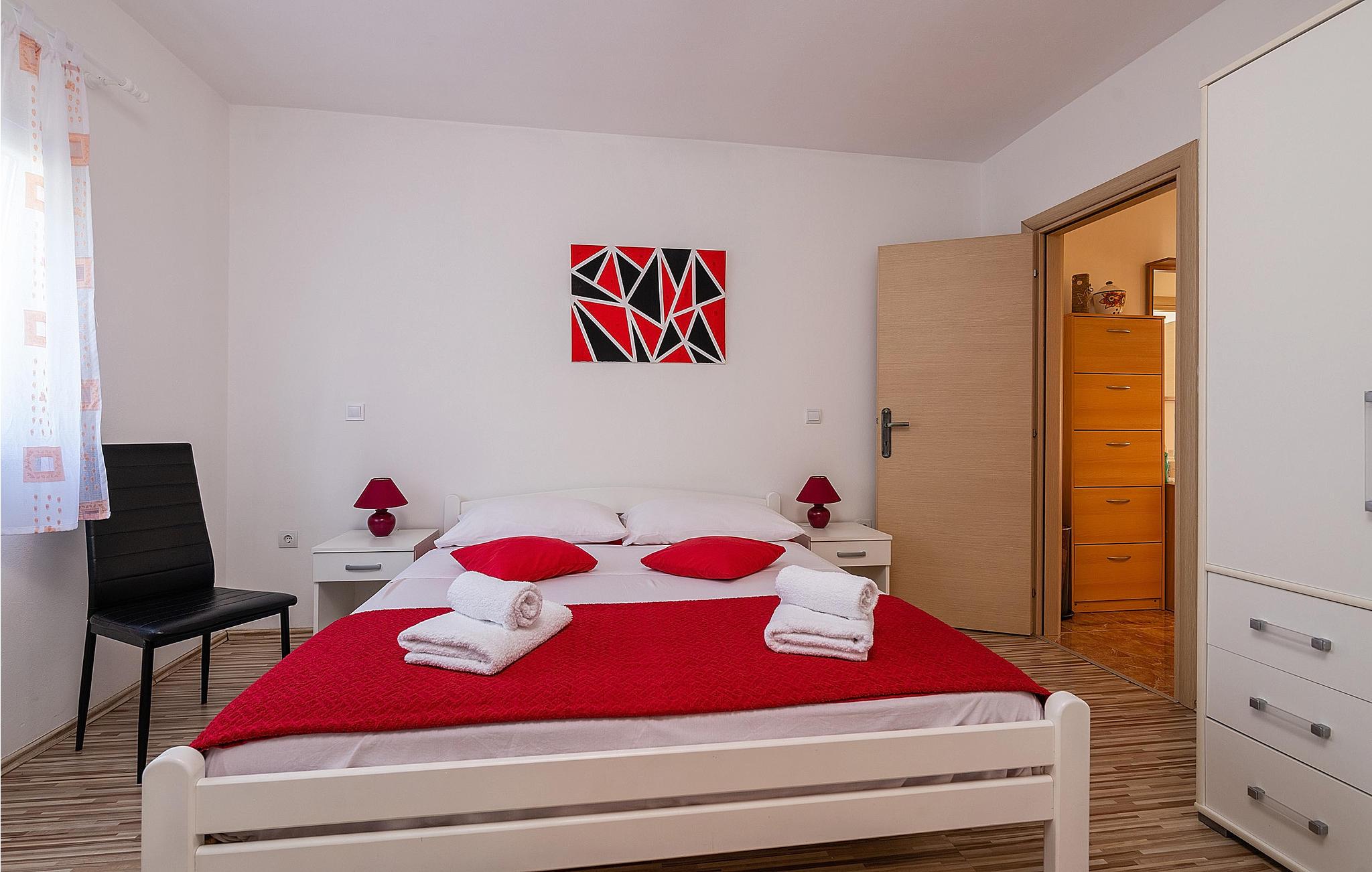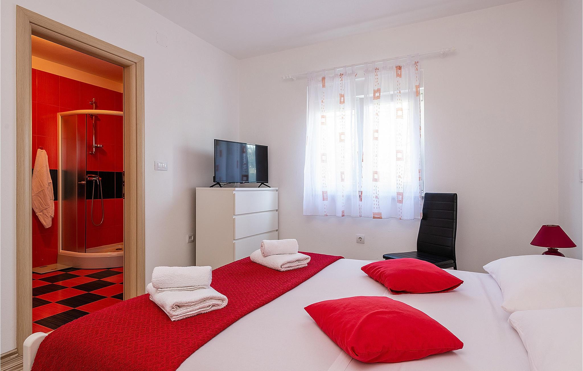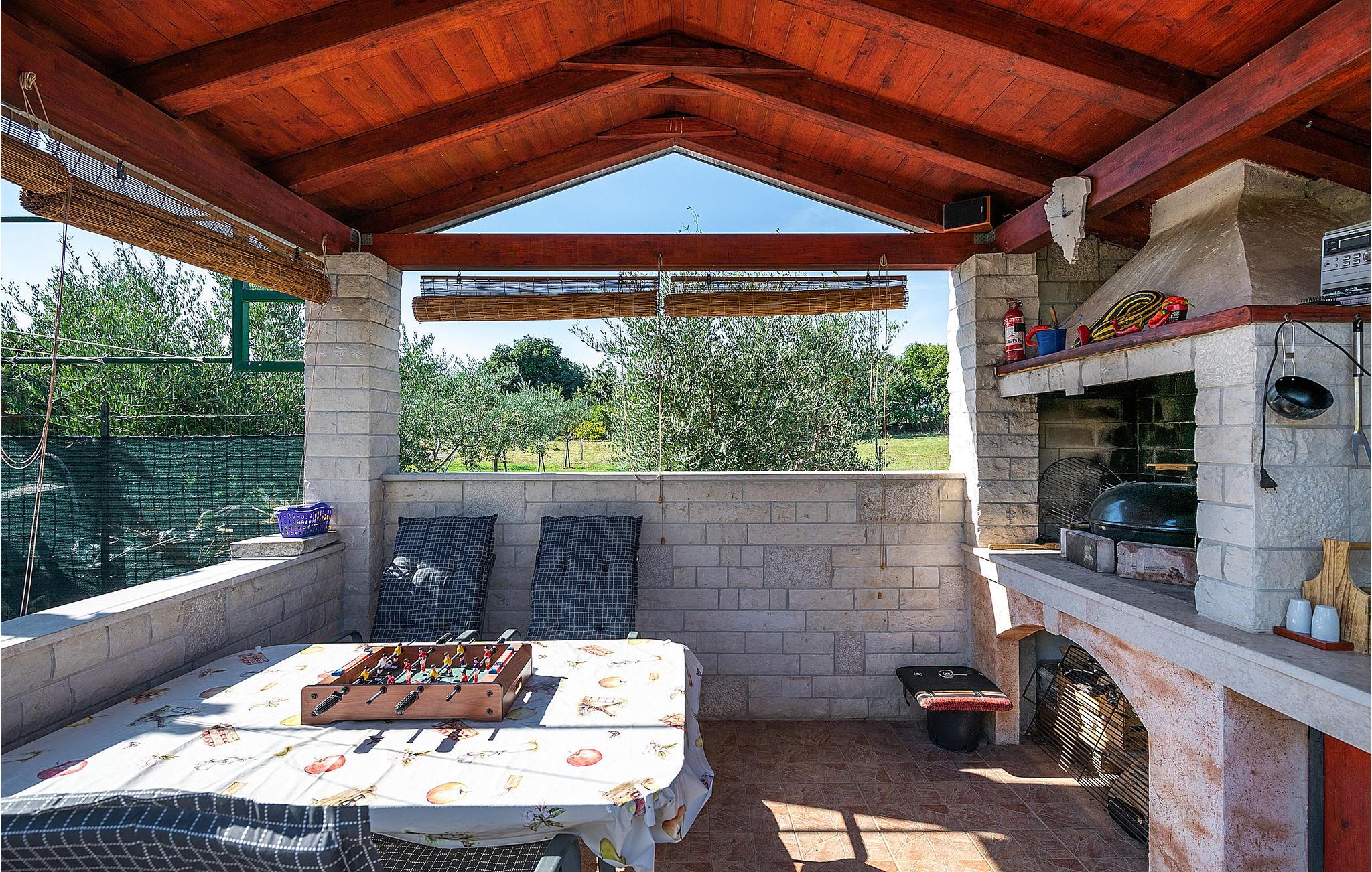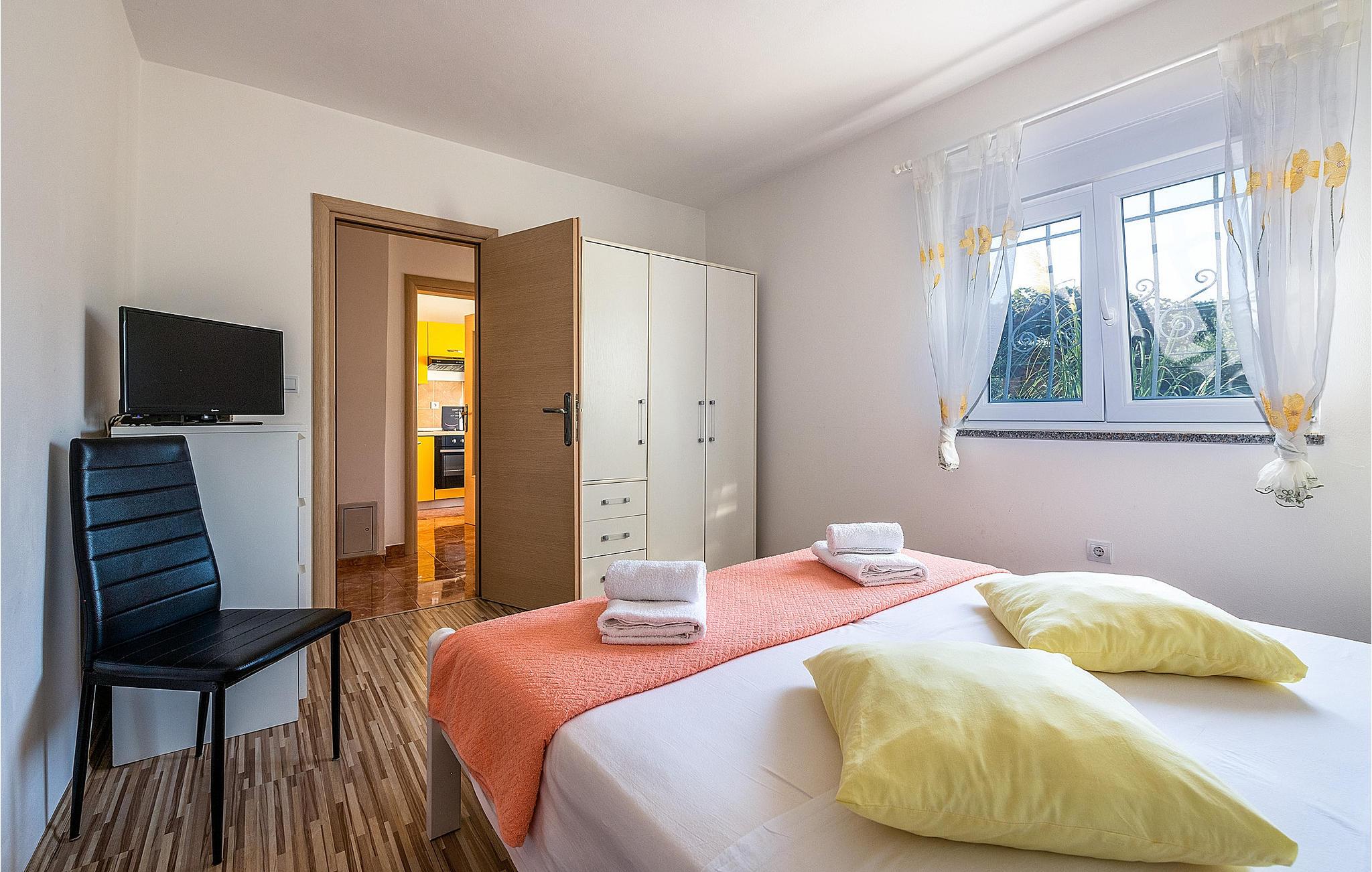 Verbringen Sie einen wunderschönen Sommerurlaub in diesem Ferienhaus. Es besitzt einen gepflegten Garten und bietet mit seiner Lage in Marcana die perfekte Wahl für alle, die dem hektischen Alltag entfliehen möchten, um in ruhiger und natürlicher Umgebung zu entspannen. Die angenehm eingerichteten Innenräume bestehen aus einem Wohnzimmer mit offener Küche und Essbereich sowie zwei Schlafzimmern mit eigenen Bädern. Die überdachte Terrasse sorgt für zusätzlichen Komfort und bietet die Möglichkeit, bequem zu grillen. Entdecken Sie die umliegenden Strände, z. B. im Ort Duga Uvala und genießen Sie das Baden im kristallklaren Meerwasser.