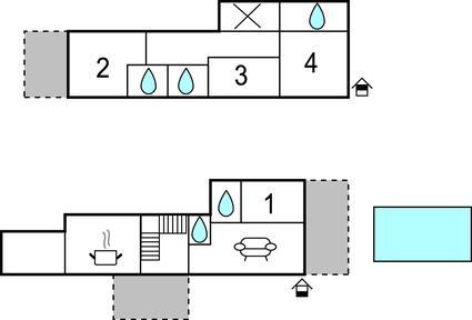 Badezimmer 7m2 (nr. 1) - WC. Warmes und kaltes Wasser. Dusche