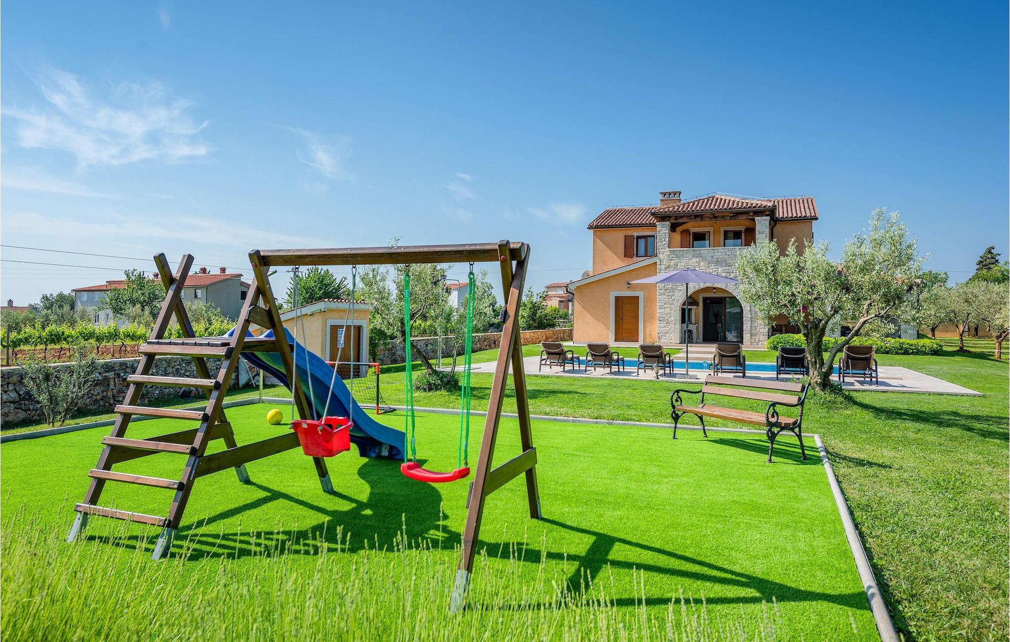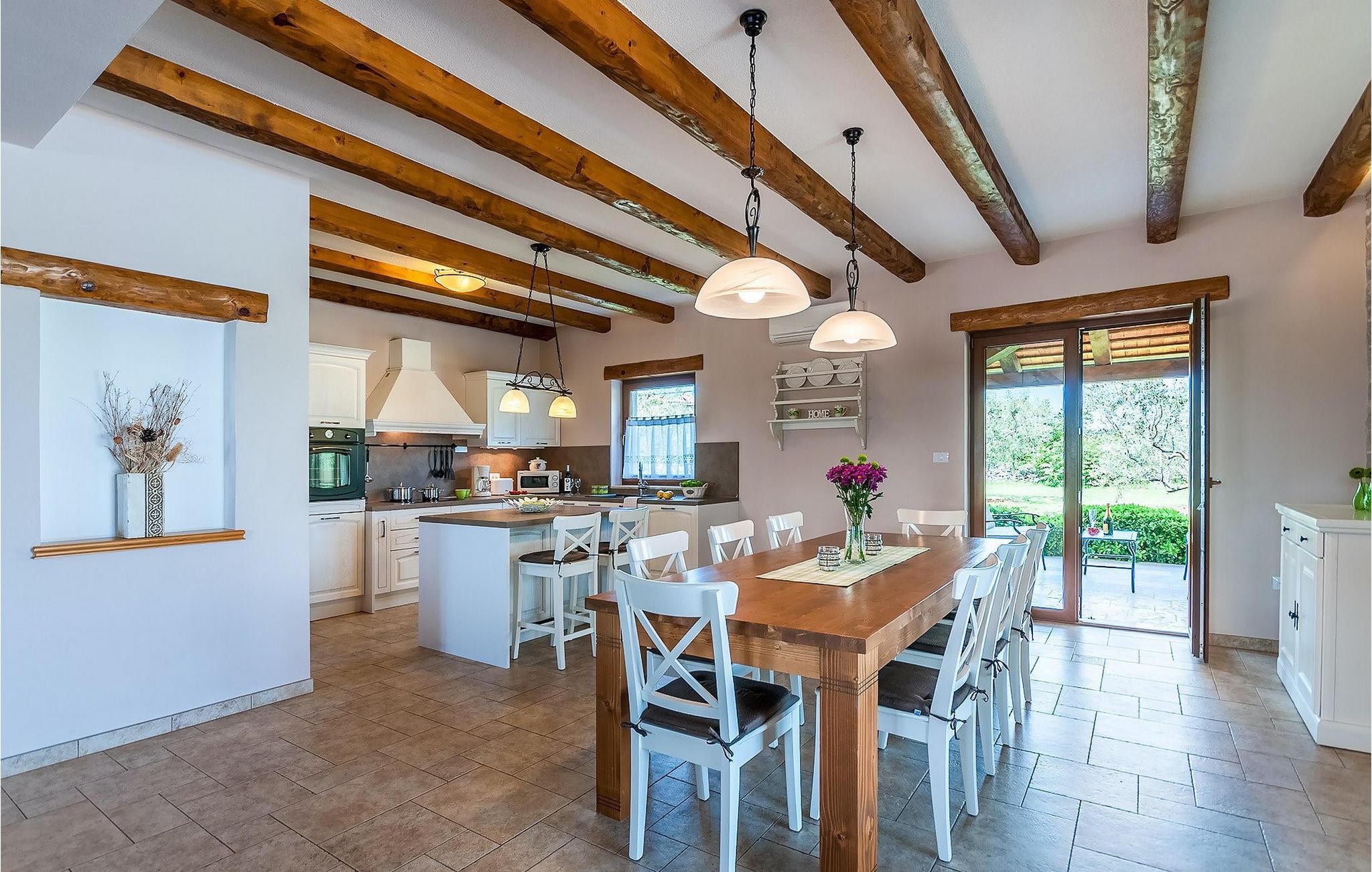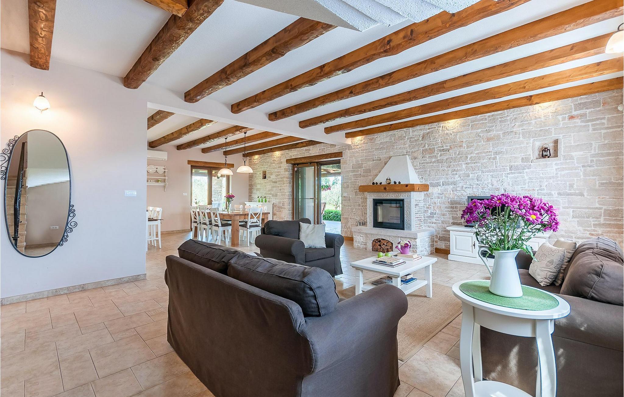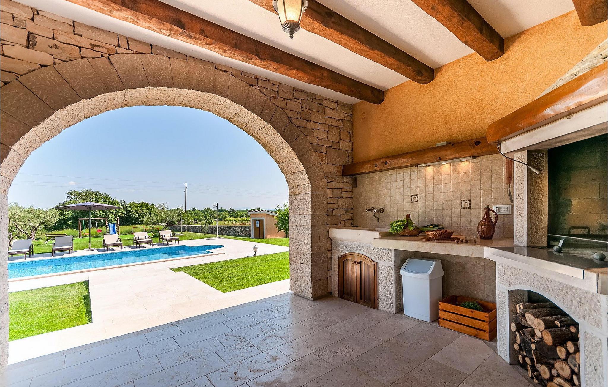 Wunderschönes Ferienhaus inmitten von Grün. Am Ende des kleinen Dorfes Filipana im Süden Istriens, einer Halbinsel am Mittelmeer. Das Ferienhaus bietet ein luxuriöses Unterkunftserlebnis mit viel Privatsphäre. Die natürlichen Baumaterialien und das Beleuchtungssystem des Haus wurden sorgsam geplant, um ein Höchstmaß an Komfort und ein angenehmes Aufenthaltserlebnis zu jeder Zeit zu bieten. Die Küche, ein WC, ein Twin-Schlafzimmer mit Badezimmer, ein Doppelschlafzimmer mit direkt zugänglichem Badezimmer, der Essbereich und das Wohnzimmer befinden sich im Erdgeschoss mit schönem Ausblick auf den Swimmingpool. In der ersten Etage befinden sich zwei Doppelschlafzimmer und zwei Badezimmer. Das Anwesen befindet sich auf einem weitläufigen Gelände mit zahlreichen Olivenbäumen, Wiesen und Wald, die für eine einzigartige Atmosphäre und vollkommene Privatsphäre für Gäste auf einem über 22 900 m2 großen Gelände sorgen. Der Bereich um den Pool herum ist mit Liegen aus natürlichen Materialien versehen. Das Ferienhaus ist ideal für Aktivitäten mit der Familie, romantische Aufenthalte und zum Entspannen.Dieses wunderschöne Ferienhaus befindet sich im kleinen Dorf Filipana im Süden der istrischen Halbinsel. Ein Urlaubsaufenthalt in diesem Ferienhaus bietet das perfekte Gleichgewicht zwischen Ruhe und privatem Genuss, abseits vom städtischen Trubel und von Touristenscharen, jedoch nicht weit von allen wichtigen Orten der Halbinsel.