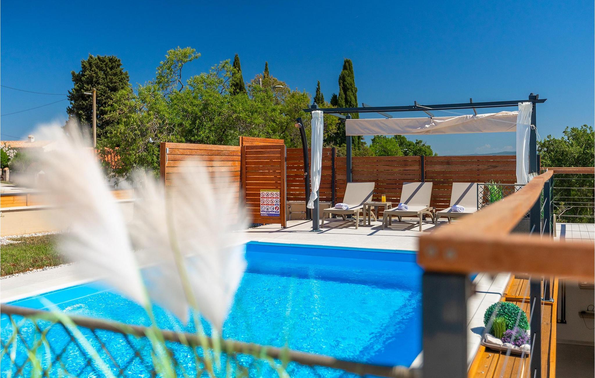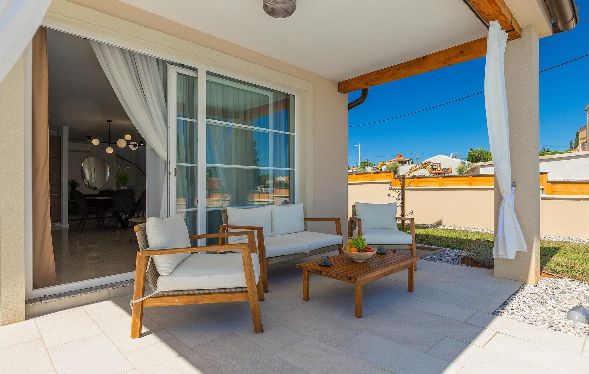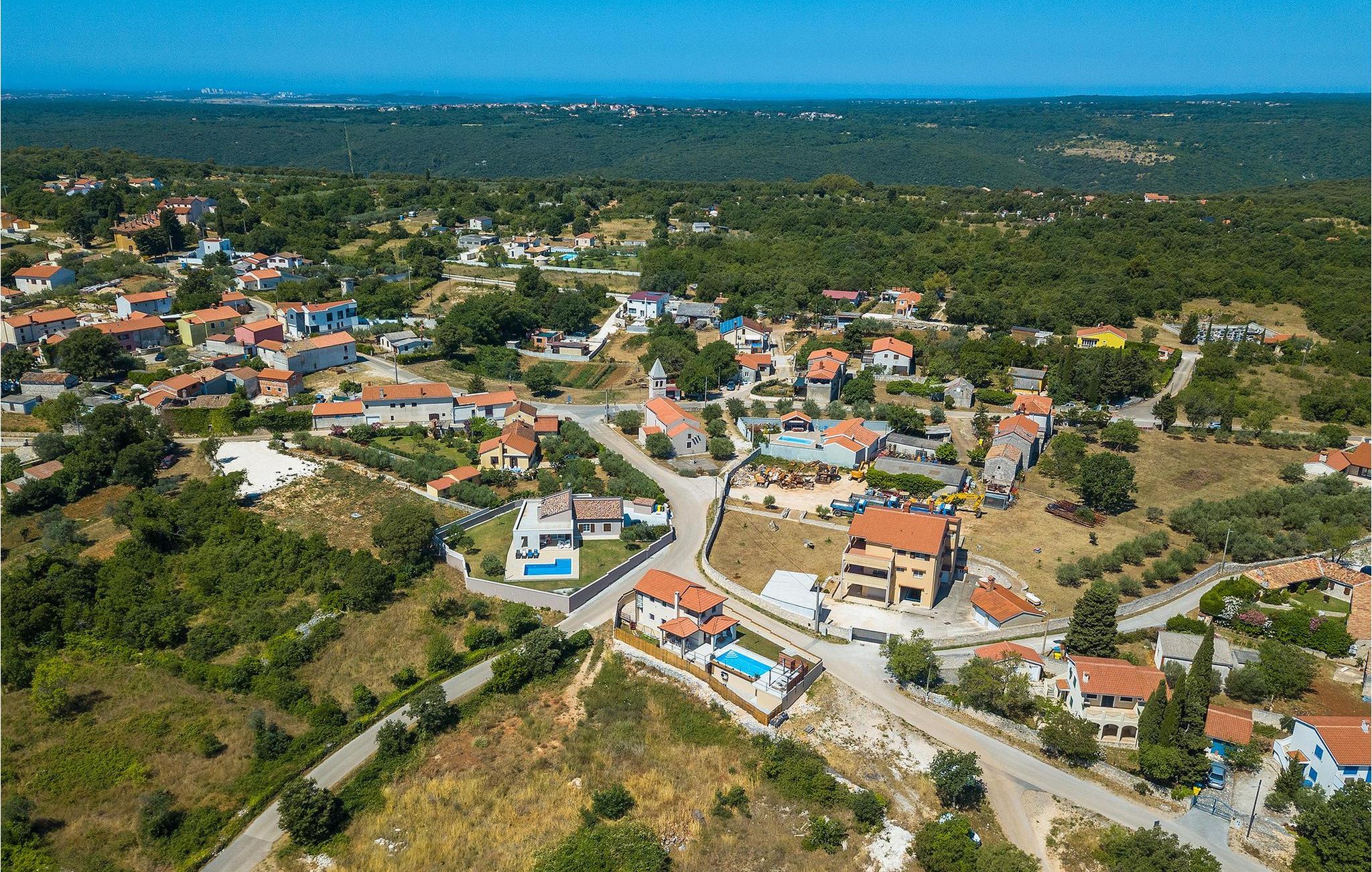 Die schöne Villa Veduta befindet sich im westlichen Teil von Istrien und ist ein ideales Haus für bis zu 6 Gäste. Die Villa besteht aus einem Innen- und einem umzäunten Außenbereich, einem privaten Pool und einer Terrasse mit herrlichem Blick auf die Küste und Natur. Genießen Sie die einzigartige Aussicht von der Terrasse aus, entfliehen Sie der Sommerhitze im privaten Pool oder genießen Sie einfach ein kühles Getränk, während Sie die Sonnenstrahlen auf den Liegestühlen fangen. Diese Villa bietet einen Grill wo sie Speisen vorbereiten können, eine Entspannungsecke im Schatten und einen Spielplatz mit Schaukel und Rutsche für Kinderspiele. Von der Terrasse aus hat man direkten Zugang zum Innenbereich, der aus einem geräumigen Wohnzimmer, einer voll ausgestatteten Küche und einem Esszimmer sowie einem Badezimmer besteht. Die Treppe führt in den ersten Stock des Hauses, wo sich 2 moderne Schlafzimmer mit Doppelbett und eigenem Badezimmer befinden, die klimatisiert sind und einen TV verfügen. Ein Freizeitraum mit Billard und Pikado sorgt für Spaß und Unterhaltung im Kreise Ihrer Liebsten. Buchen Sie die Villa Veduta und sorgen Sie für einen sorgenfreien Urlaub!Die Villa Veduta befindet sich in einer ruhigen Lage, aber in der Nähe der größeren Städten in dieser Region: Pula, Labin und Rabac. Pula ist die größte Stadt in Istrien und bietet eine große Auswahl von Bars, Restaurants und Sehenswürdigkeiten. Ein Besuch des berühmten Amphitheaters aus dem 1. Jahrhundert ist eine unvergessliche Erfahrung. Es befindet sich im Stadtzentrum und wir empfehlen eine Besichtigung, um mehr über das imposante Gebäude von großem historischen Wert zu erfahren. Hier finden zahlreiche Veranstaltungen statt, z. B. Konzerte, Filmvorführungen und Sportereignisse. Die Umgebung bietet zahlreiche Möglichkeiten zur Freizeitgestaltung: Radfahren, Reiten, Joggen, Wandern und vieles mehr. Naturliebhabern empfehlen wir einen Ausflug in den nahe gelegenen Nationalpark Brijuni oder zum Kap Kamenjak, wo Sie unberührte Naturschönheiten und natürliche Besonderheiten genießen können. Nicht weit entfernt liegen Labin und Rabac, die für ihre schönen Kieselstrände mit kristallklarem Meer bekannt sind. Machen Sie einen Spaziergang entlang der Küste und probieren Sie istrische Spezialitäten wie Nudeln mit Trüffeln oder Prosciutto, natürlich mit einem Glas des berühmten istrischen Malvasia. Diese mittelalterlichen Städte sind bekannt als die Stadt der Künstler, so dass Kunstliebhaber die Ateliers und Galerien mit Kunstwerken in den Steinstraßen besuchen können.