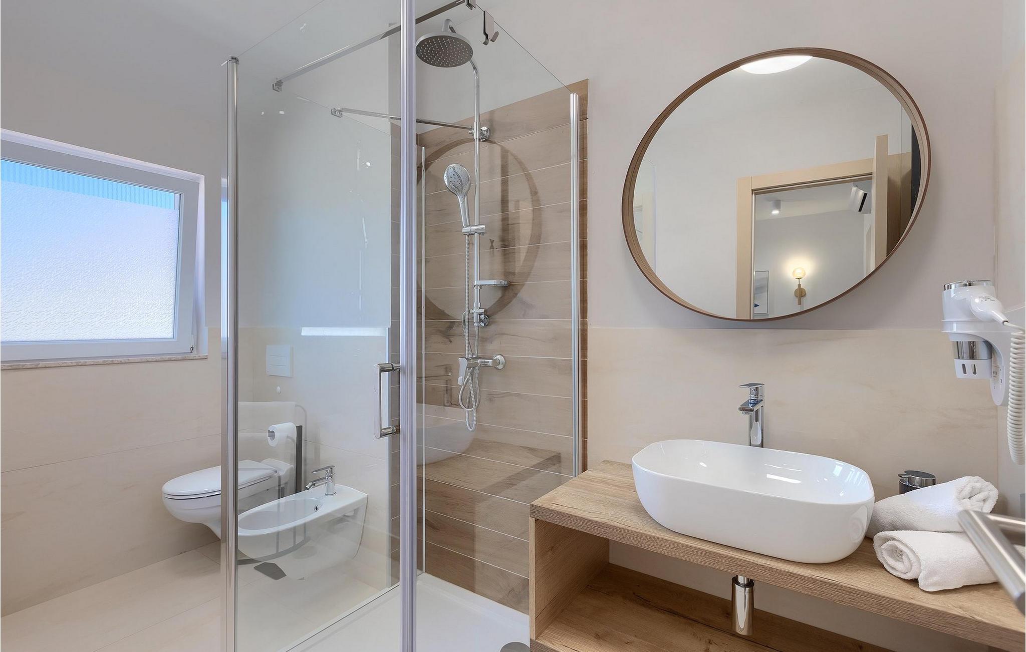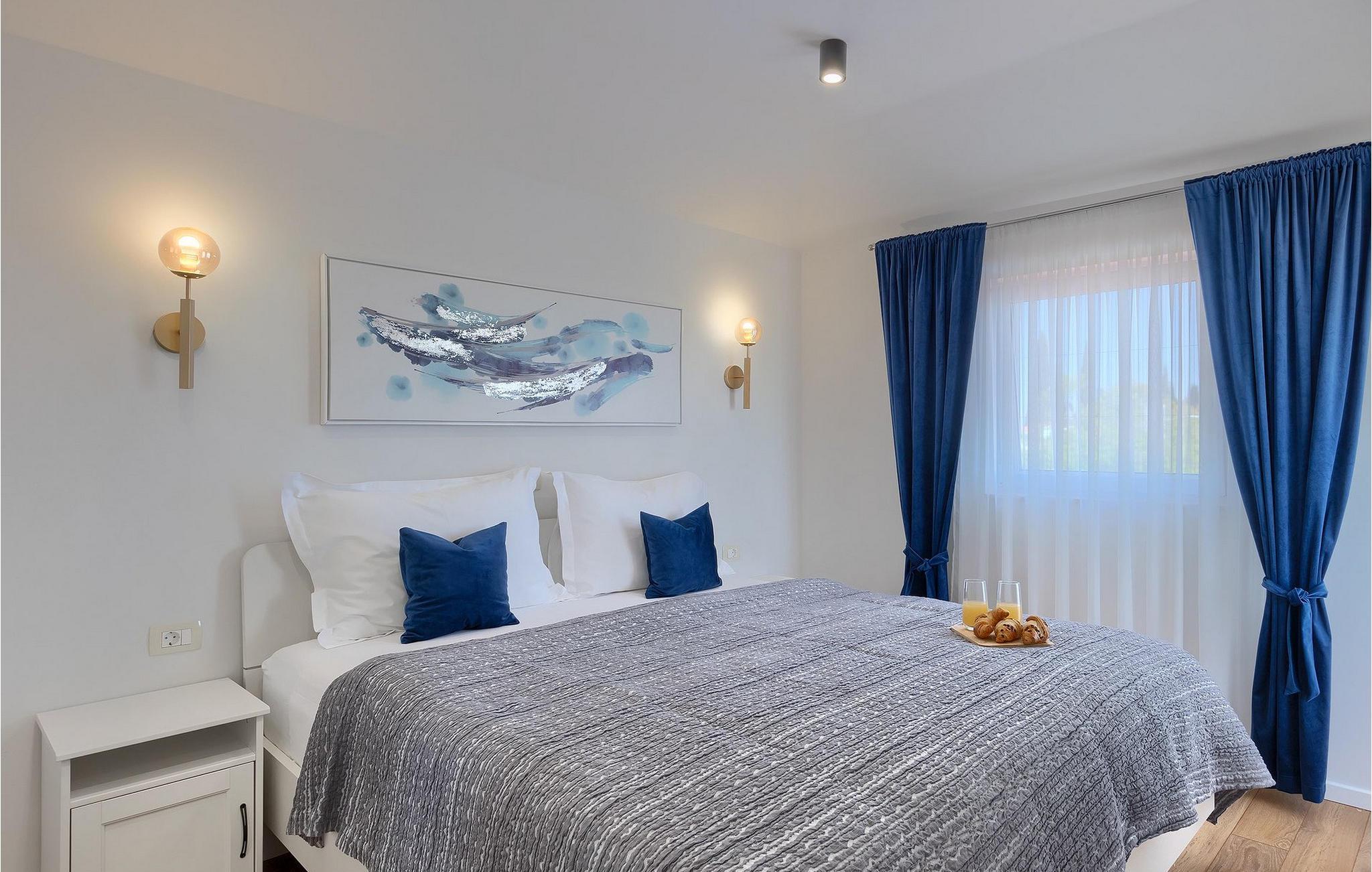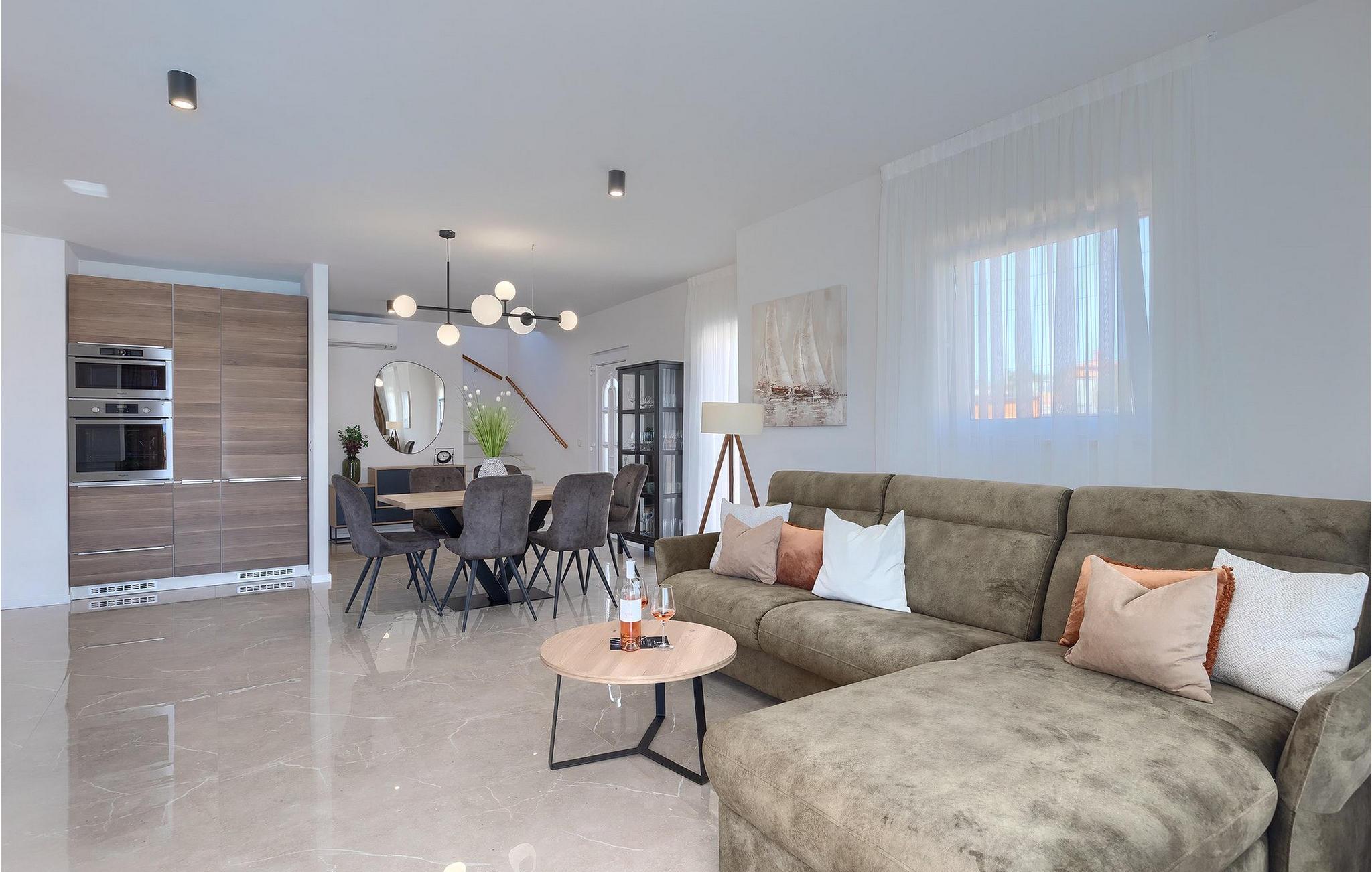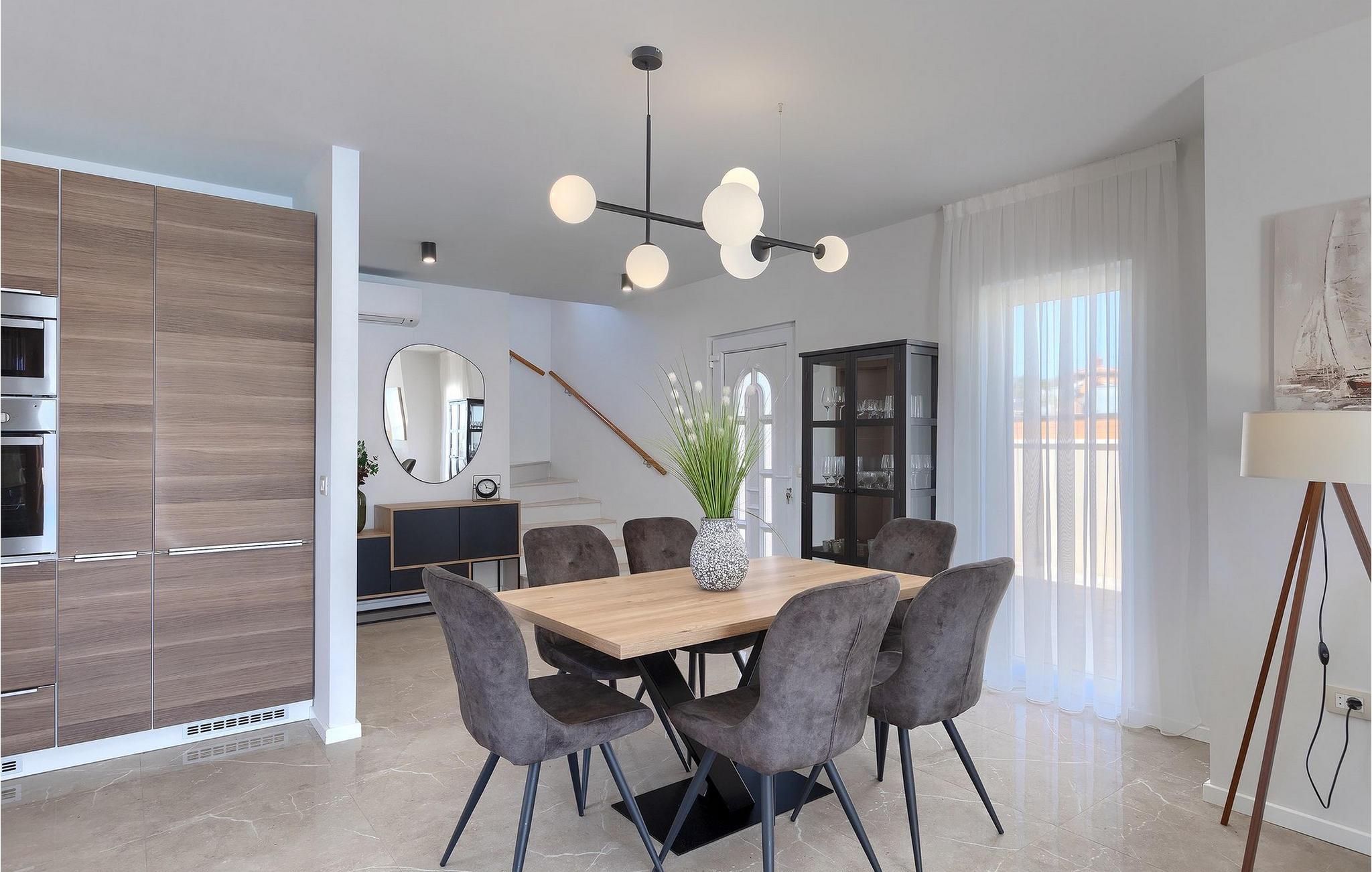 Die schöne Villa Veduta befindet sich im westlichen Teil von Istrien und ist ein ideales Haus für bis zu 6 Gäste. Die Villa besteht aus einem Innen- und einem umzäunten Außenbereich, einem privaten Pool und einer Terrasse mit herrlichem Blick auf die Küste und Natur. Genießen Sie die einzigartige Aussicht von der Terrasse aus, entfliehen Sie der Sommerhitze im privaten Pool oder genießen Sie einfach ein kühles Getränk, während Sie die Sonnenstrahlen auf den Liegestühlen fangen. Diese Villa bietet einen Grill wo sie Speisen vorbereiten können, eine Entspannungsecke im Schatten und einen Spielplatz mit Schaukel und Rutsche für Kinderspiele. Von der Terrasse aus hat man direkten Zugang zum Innenbereich, der aus einem geräumigen Wohnzimmer, einer voll ausgestatteten Küche und einem Esszimmer sowie einem Badezimmer besteht. Die Treppe führt in den ersten Stock des Hauses, wo sich 2 moderne Schlafzimmer mit Doppelbett und eigenem Badezimmer befinden, die klimatisiert sind und einen TV verfügen. Ein Freizeitraum mit Billard und Pikado sorgt für Spaß und Unterhaltung im Kreise Ihrer Liebsten. Buchen Sie die Villa Veduta und sorgen Sie für einen sorgenfreien Urlaub!Die Villa Veduta befindet sich in einer ruhigen Lage, aber in der Nähe der größeren Städten in dieser Region: Pula, Labin und Rabac. Pula ist die größte Stadt in Istrien und bietet eine große Auswahl von Bars, Restaurants und Sehenswürdigkeiten. Ein Besuch des berühmten Amphitheaters aus dem 1. Jahrhundert ist eine unvergessliche Erfahrung. Es befindet sich im Stadtzentrum und wir empfehlen eine Besichtigung, um mehr über das imposante Gebäude von großem historischen Wert zu erfahren. Hier finden zahlreiche Veranstaltungen statt, z. B. Konzerte, Filmvorführungen und Sportereignisse. Die Umgebung bietet zahlreiche Möglichkeiten zur Freizeitgestaltung: Radfahren, Reiten, Joggen, Wandern und vieles mehr. Naturliebhabern empfehlen wir einen Ausflug in den nahe gelegenen Nationalpark Brijuni oder zum Kap Kamenjak, wo Sie unberührte Naturschönheiten und natürliche Besonderheiten genießen können. Nicht weit entfernt liegen Labin und Rabac, die für ihre schönen Kieselstrände mit kristallklarem Meer bekannt sind. Machen Sie einen Spaziergang entlang der Küste und probieren Sie istrische Spezialitäten wie Nudeln mit Trüffeln oder Prosciutto, natürlich mit einem Glas des berühmten istrischen Malvasia. Diese mittelalterlichen Städte sind bekannt als die Stadt der Künstler, so dass Kunstliebhaber die Ateliers und Galerien mit Kunstwerken in den Steinstraßen besuchen können.