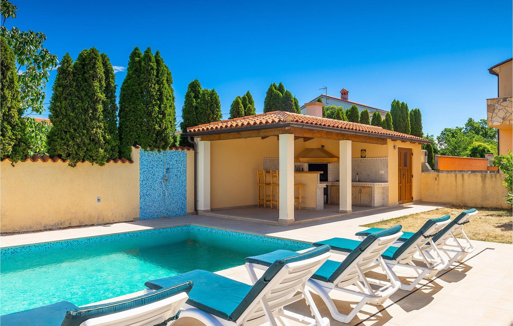 Unsere Villa Marse - an der Ostküste Istriens gelegen - ist ideal, um mit Familien und Freunden einen grandiosen Sommerurlaub zu verbringen. Die Villa besteht aus 2 separaten Einheiten und kann insgesamt bis zu 12 Gäste in 6 Schlafzimmern beherbergen, jedoch sind wir sicher, dass Sie die meiste Zeit Ihres gemeinsamen Urlaubs im schönen Außenbereich der Villa verbringen werden. Während die Einen Spass im Pool haben, entspannen die Anderen beim Sonnenbaden auf den bequemen Sonnenliegen am Pool. In der überdachten Sommerküche mit Barstühlen werden die leckersten Spezialitäten am Grill zubereitet und erfrischende Getränke genossen. Die überdachte Terrasse mit Esstisch ist perfekt, um beim Frühstück Ausflüge in die Region zu planen.