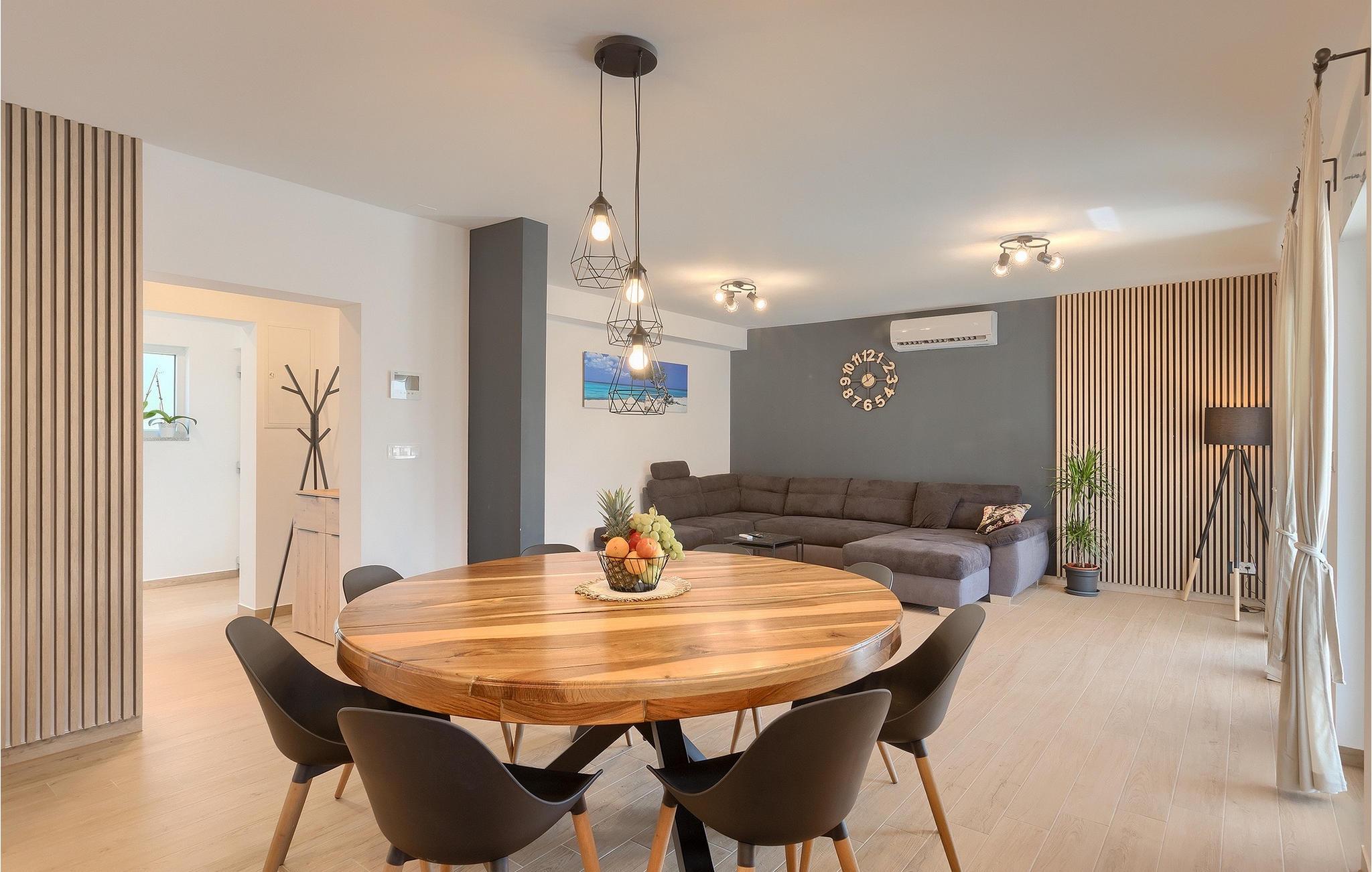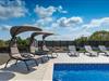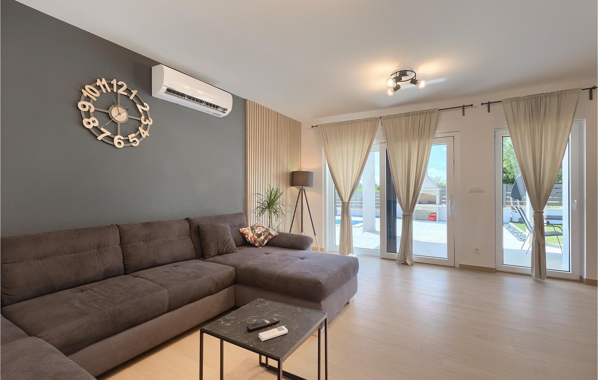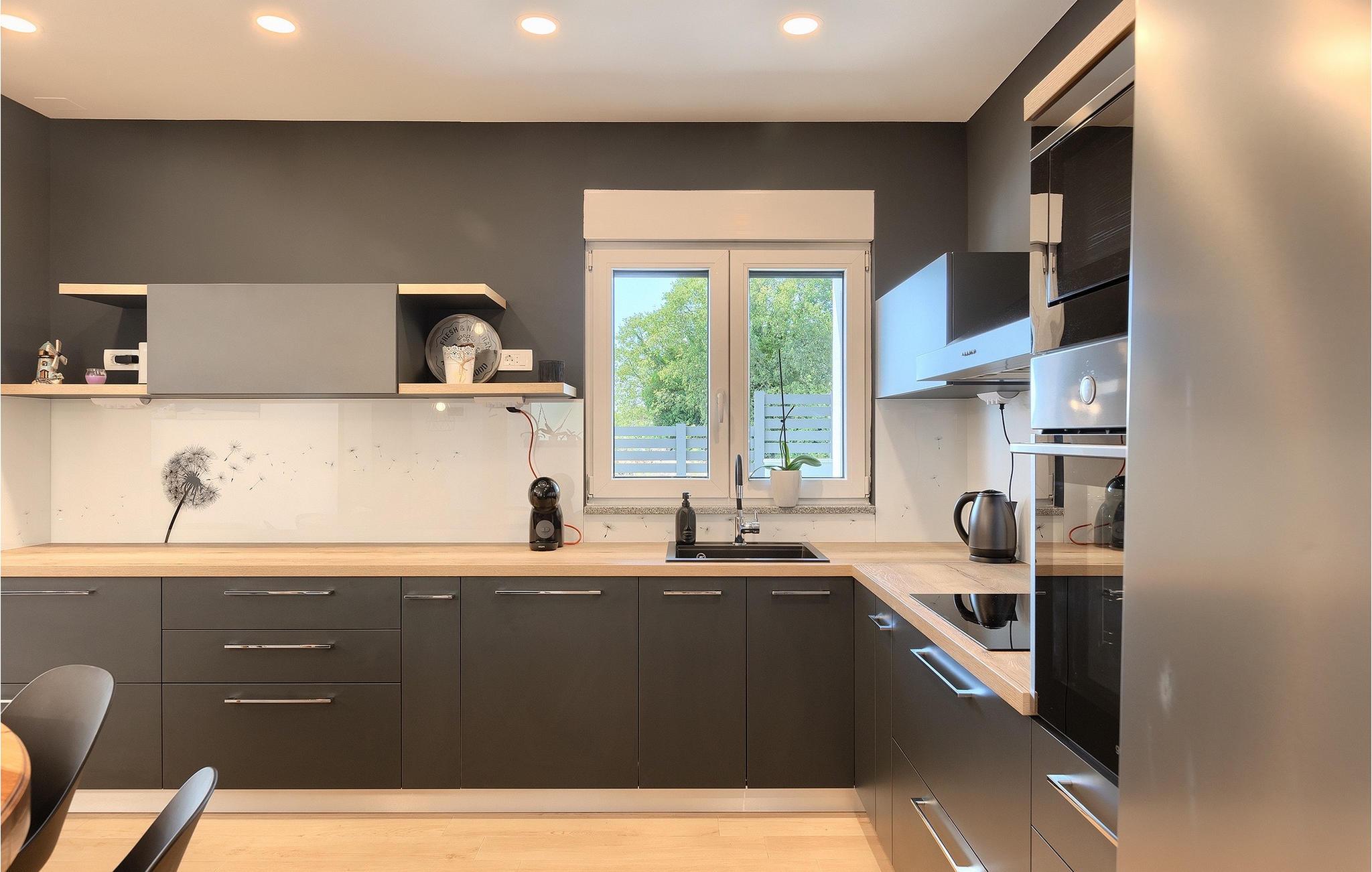 Die Villa LuMaLu lädt Sie mit ihrer modernen Einrichtung, dem schönen Garten und dem privaten Pool zu einem Traumurlaub ein. Der Außenbereich der Villa besteht aus: einem privaten Pool, in dem Sie sich von der Sommerhitze erfrischen können, Liegestühlen am Pool, einer überdachten Terrasse mit einem Außentisch, der ideal ist, um einen Morgenkaffee zu trinken, während Sie den herrlichen Blick auf den Pool und die Natur, welche die Villa umgibt, genießen. Für die Liebhaber des Kochens gibt es auch einen Kohlegrill im Außenbereich, der Sie dazu einlädt, sich an der Zubereitung traditioneller istrischer Gerichte zu versuchen. Für Spaß und Erholung bietet diese Villa eine Reihe von Möglichkeiten: Badminton, Tischtennis oder Tischfußball. Vom Außenbereich der Villa gelangen Sie über die Terrasse in das Innere des Hauses, wo sich im Erdgeschoss ein modernes Wohnzimmer, eine voll ausgestattete Küche mit Esszimmer und ein badezimmer befinden. Die Treppe führt in den 1. Stock der Villa, wo sich 4 komfortable Schlafzimmer, einige mit Zugang zu einem Balkon mit einzigartigem Blick auf die Landschaft und den Pool, und 2 Bäder befinden. Buchen Sie die Villa LuMaLu und genießen Sie einen unvergesslichen Urlaub in Istrien mit Ihren Liebsten!