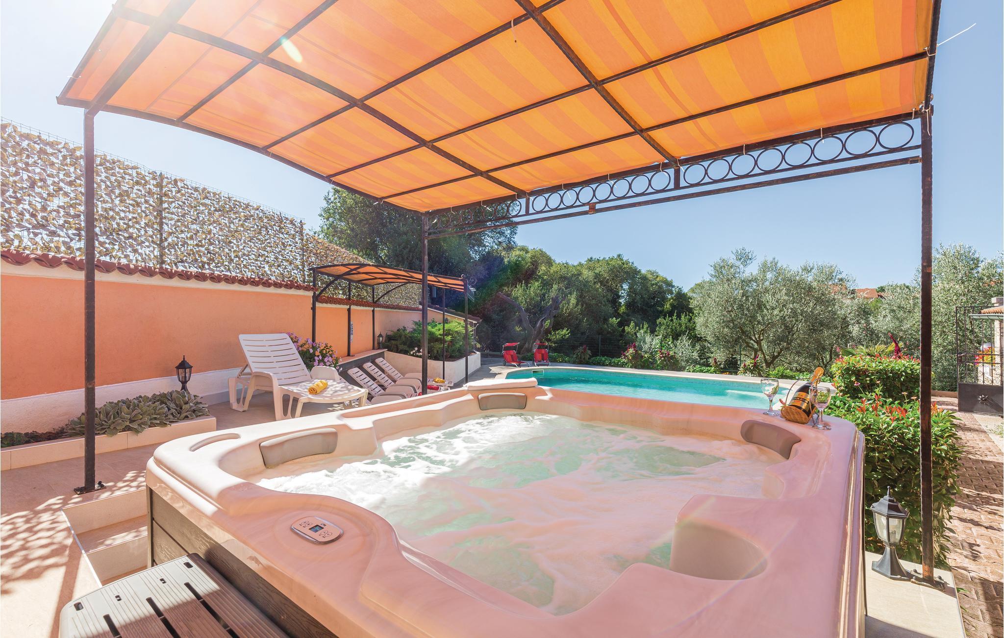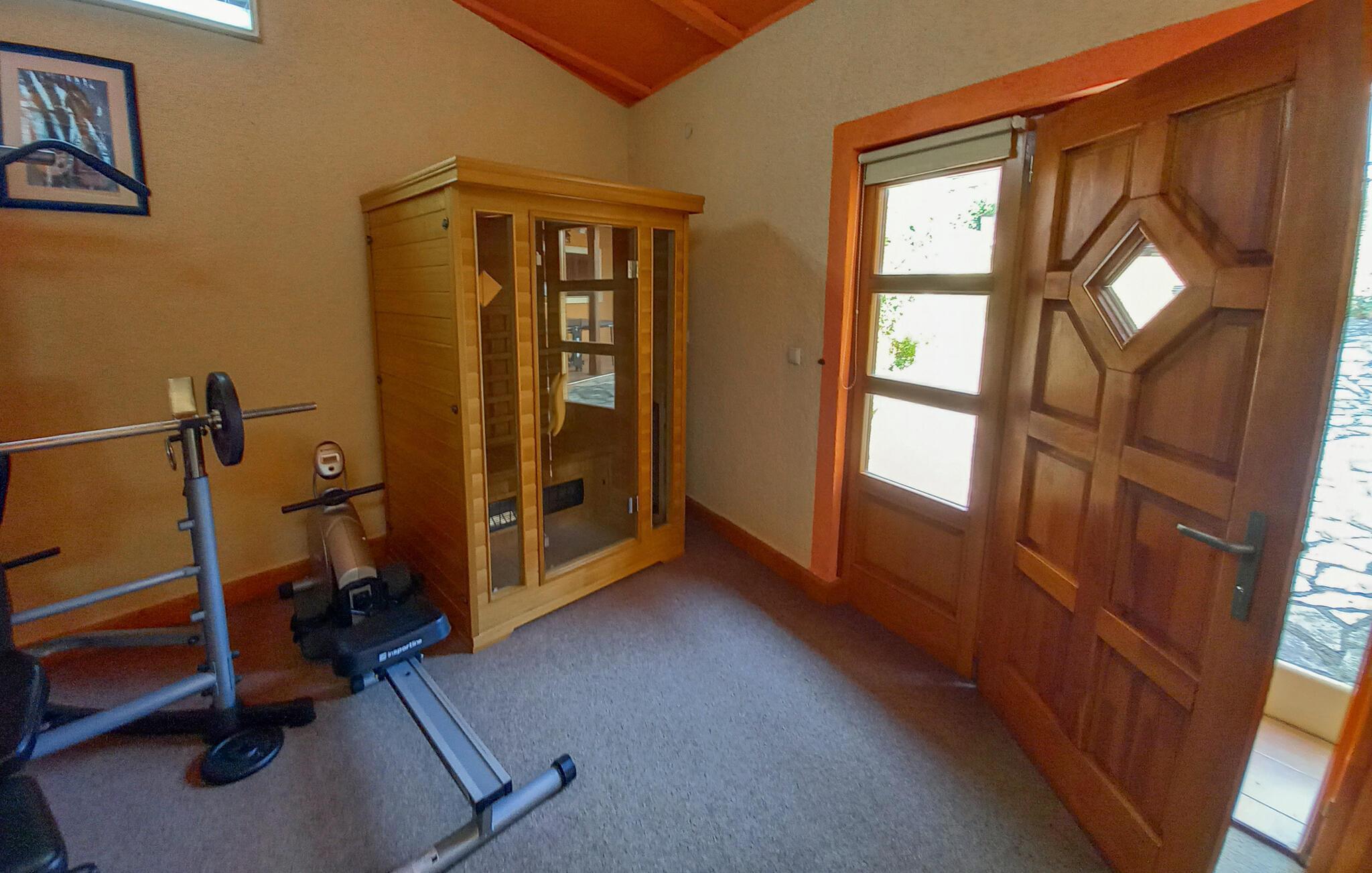 Im kleinen Anbau neben dem Haus erwartet Sie ein Fitnessraum sowie Darts. Sauna und Whirlpool sind die idealen Orte, um Körper und Geist abzuschalten.Der Eigentümer wird Sie gerne einmal mit kulinarischen Spezialitäten und einem Gläschen Wein aus seinem Keller verwöhnen. Besuchen Sie einen Folklore-Abend in Pula und erleben Sie die traditionellen Kostüme bei schöner Musik. Das kleine Dorf Muntic liegt unweit von den Überresten der ältesten Siedlung Istriens. Weitere Ausflugsmöglichkeiten bietet, besonders für Pferdeliebhaber, das nahegelegene Reitzentrum. In den umliegenden, kleinen Orten Krnica, Rakalj, Kavran finden im Sommer auch die gerne besuchten Fischerfeste statt.