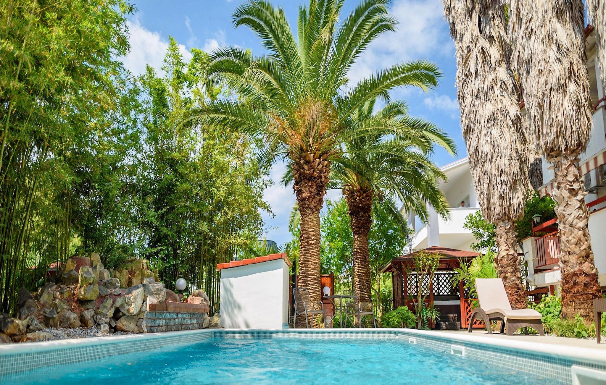 Ein beheiztes privates Schwimmbad, Fitnessbereich und Sauna sind nur einige der vielen luxuriösen Anlagen, die Sie in der Villa Botanica finden. Es gibt einen überdachten Außen-Jacuzzi mit Infrarot-Heizpilz für eine perfekte Entspannung während frischer Nächte. Die Umgebung des Pools ist mit Sonnenschirmen und Liegestühlen aus natürlichen Materialien ausgestattet. Der Garten umfasst auch einen Grillplatz mit Esstisch. Die Villa ist voll klimatisiert, hat Breitband-WiFi-Internetzugang und Parkplatz. Zu Ihrer Verfügung gibt es auch einen professionellen Billardtisch mit Simonis Billardtuch, Play Station 3, Gesellschaftsspiele und Bücher.Villa Botanica liegt nur 300 m vom Strand entfernt, in der Nähe von Pjescana Uvala Pula. Einen kurzen Spaziergang entfernt, gibt es eine große Auswahl an ausgezeichneten Bars und Restaurants. Es gibt auch öffentliche Verkehrsmittel zum Zentrum von Pula. Medulin ist ebenso charmant und leicht zu erreichen. Medulin gilt als eines der besten Badeorte in Istrien. Sie werden eine Vielzahl von Bars und Restaurants in Medulin und in der benachbarten Premantura finden, die alle berühmt für ihre Fisch-Menüs sind. Pula ist auch reich an tollen Restaurants, einige von ihnen finden Sie beim Spazieren in der Altstadt, die reich an römischen Überresten ist. Das berühmteste von allen römischen Monumenten in Pula, ist Ausgangs-und Endpunkt jeder Sightseeing-Tour das Amphitheater, im Volksmund als die Arena von Pula bekannt. Es wurde im 1. Jahrhundert n. Chr. während der Regierungszeit von Kaiser Vespasian erbaut. Heute ist der Ort für Sommer Aufführungen - das Filmfestival, Opernfestspiele, Equestrian Festival, Konzerte und Theateraufführungen bekannt.
