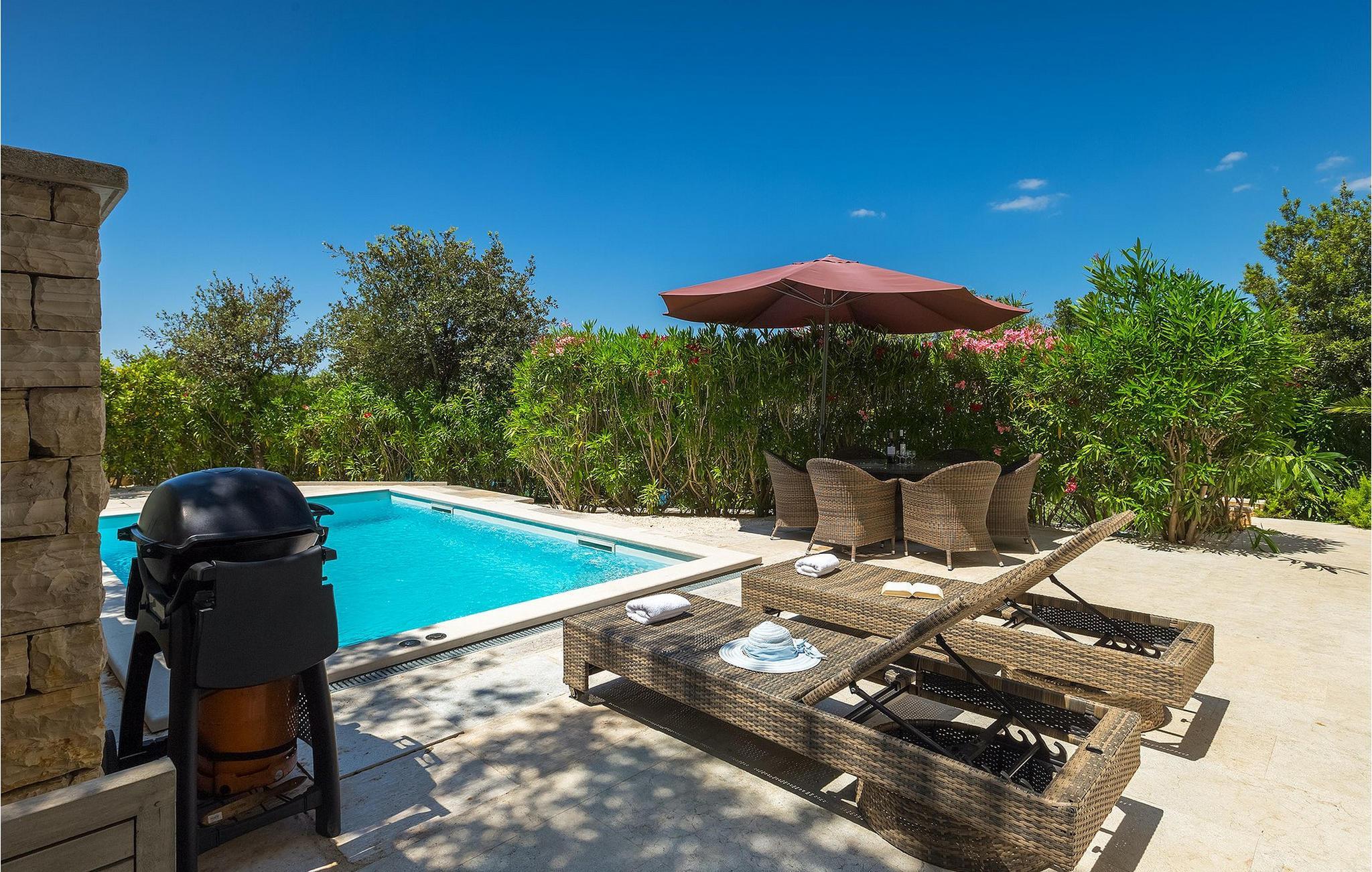 Diese schöne beach front Villa ist ideal für größere Gruppen oder Familien, die zusammen reisen. Die Villa verfügt über einen eigenen Strand, wo Sie Sonne und Meer auf die bestmögliche Weise genießen können. Es bietet sich bequem Platz für bis zu 12 Personen in 6 Schlafzimmern. Die Zimmer sind gut ausgestattet mit antikem und modernem Mobiliar. Die Immobilie bietet insgesamt 4 Bäder in Marmor. Jede Etage verfügt über 3 Schlafzimmer und 2 Bäder. Im Erdgeschoss und im ersten Stock gibt es ein geräumiges Wohnzimmer und Essbereich sowie eine gut ausgestattete Küche. Im ersten Stock ist eine schöne, große Terrasse, die einen atemberaubenden Blick auf das Meer bietet. In unserem gepflegten Garten können Sie im Lounge-Bereich entspannen, oder machen Sie ein paar Schritte und genießen Sie den Strand. Kinderspielplatz - die Villa verfügt über einen bedeckten Außen-Essbereich mit Kinderecke für unsere kleinen Gäste. Villa Del Mar ist mit Villeroy Boch Porzellan und De Longhi Kaffeemaschine ausgestattet. Zur Verfügung stehen Ihnen ein Kinderbett und ein Hochstuhl - auf Anfrage. Wassersport, Schnorcheln, Tauchen, Surfen oder Kanooing kann man direkt am Strand ausprobieren, der nur 20 m vom Haus entfernt ist.Diese wunderschöne Strand-Villa verfügt über einen privaten Strand. Sie befindet sich in einer kleinen Küstenstadt namens Pješcana Uvala (Sandbucht), wo mehrere tolle Restaurants in Gehweite zu finden sind und in der Nähe ist ein Bootshafen.