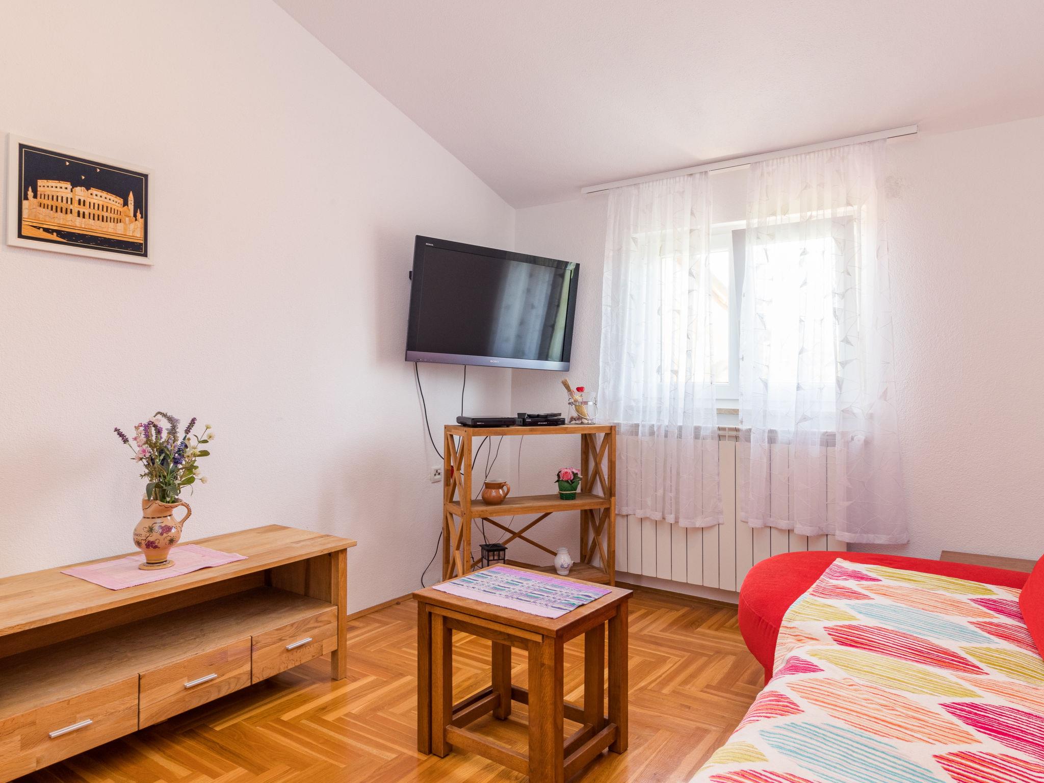 "Villa Sandra", 2-Zimmer-Wohnung 42 m2 auf 2 Stockwerken im 1. Stock. Wohnzimmer mit 1 Diwanbett und Sat-TV. 1 Zimmer mit 1 Bett, 1 Doppelbett und Sat-TV. Offene Küche (1 Kochplatte, Backofen, 3 Flammen, Toaster, Wasserkocher, Mikrowelle, Tiefkühler, elektrische Kaffeemaschine) mit Esstisch. Dusche/WC. Terrasse 9 m2, überdacht. Terrassenmöbel. Zur Verfügung: Waschmaschine. Internet (Wireless LAN, gratis). Bitte beachten: Nichtraucher-Haus. Maximal 2 Haustiere/Hunde erlaubt. Eigener Eingang.