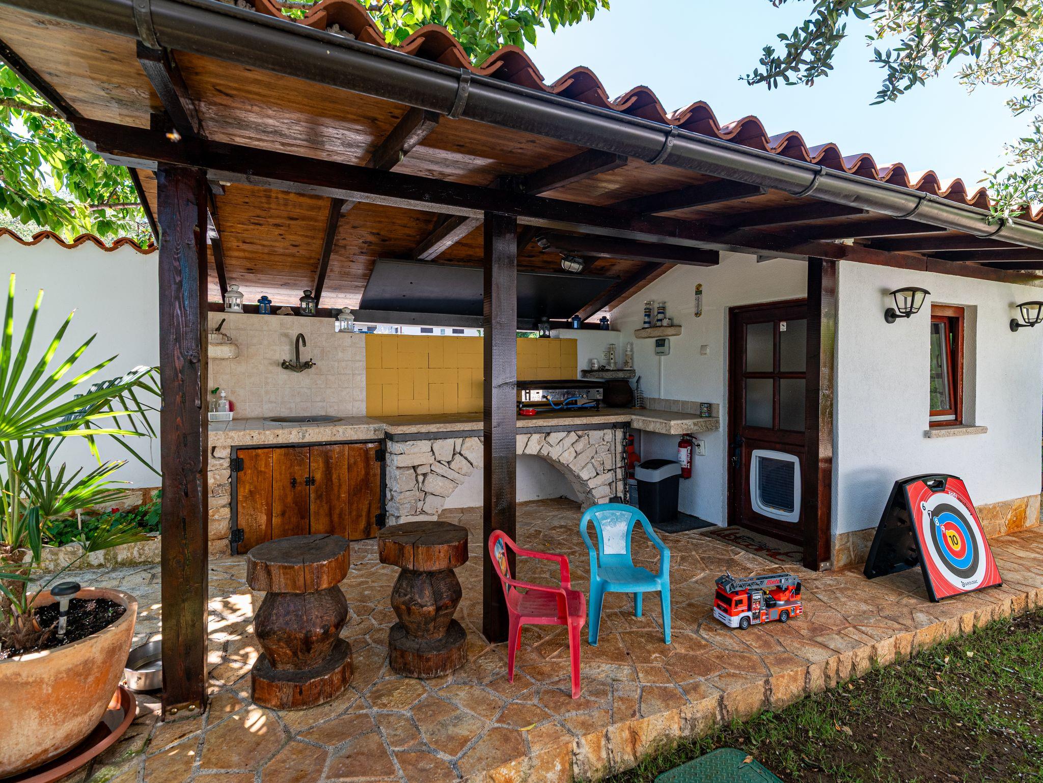 Umgebung des Objekts (Eingerichtet), Hof (200m2, Kinderbereich, Sitzbereich), Parkplatz (Anzahl der Parkplätze: 3, Entfernung vom Objekt: im Hof), Grill: gemeinsam, WiFi Internet, Föhn, Bügeleisen, Bügelbrett, Kinderbett