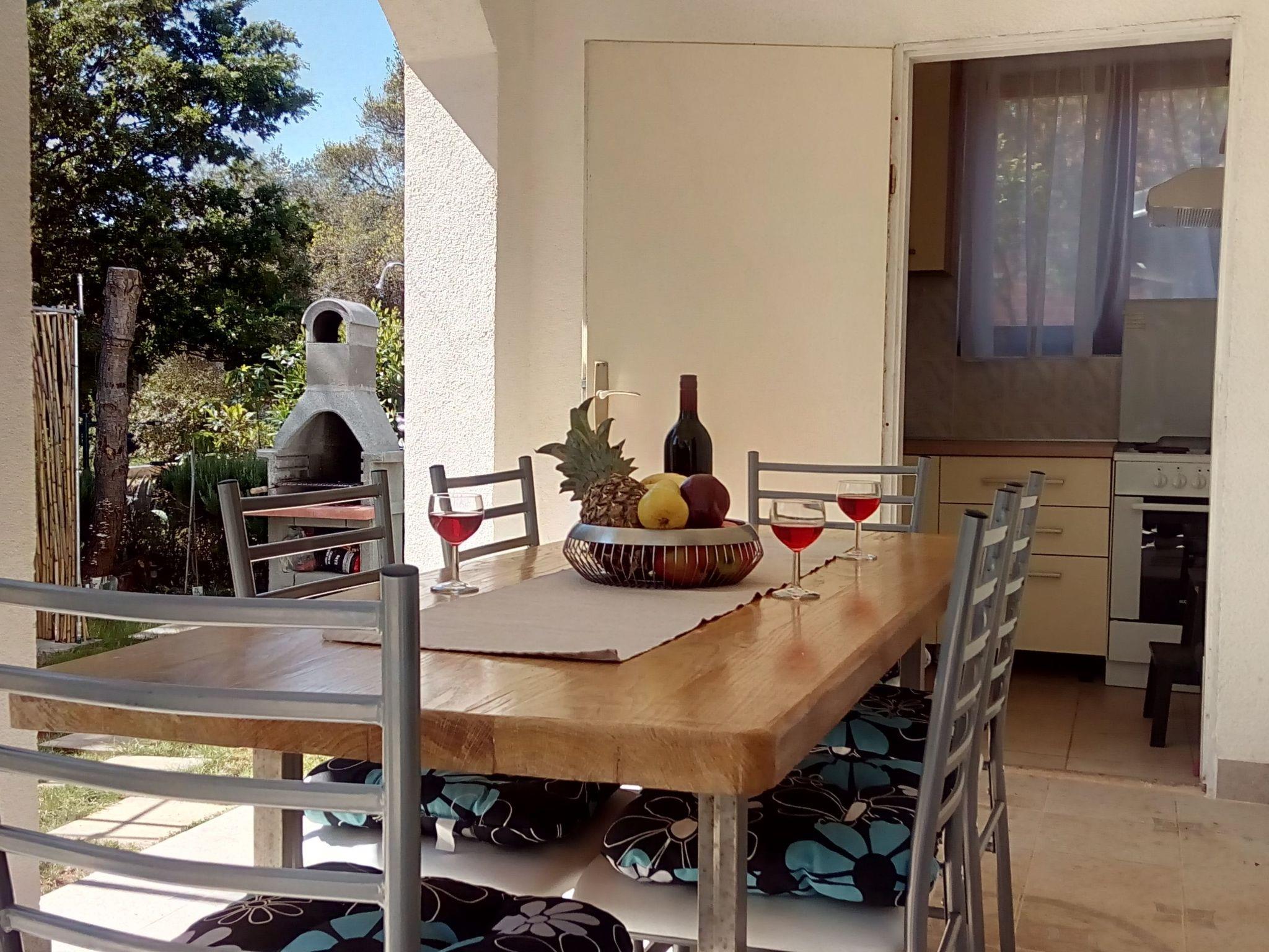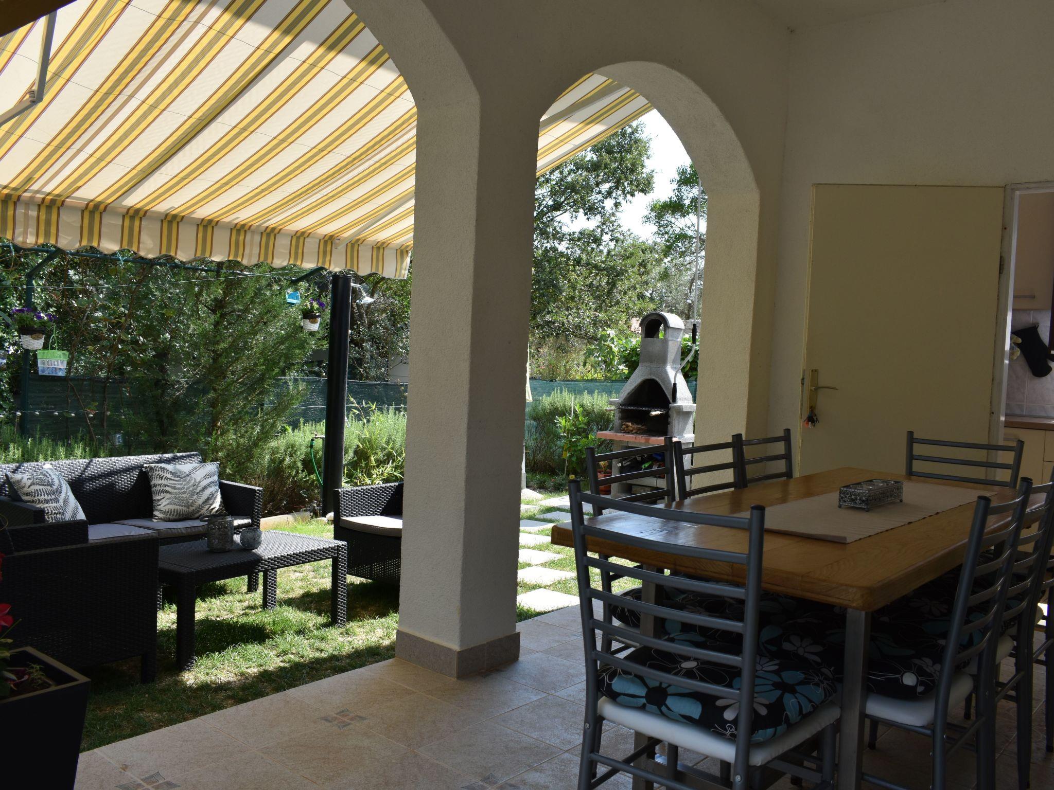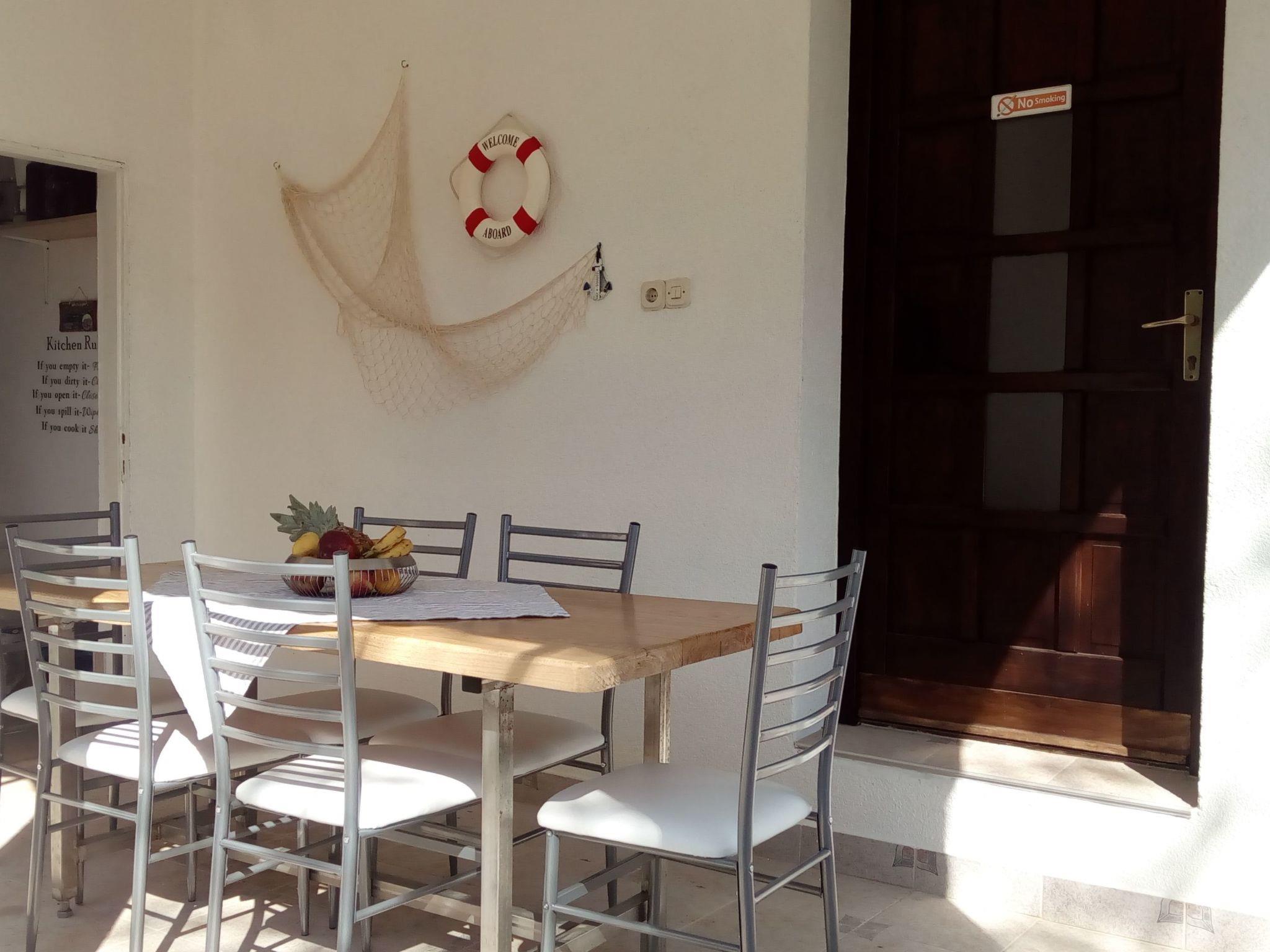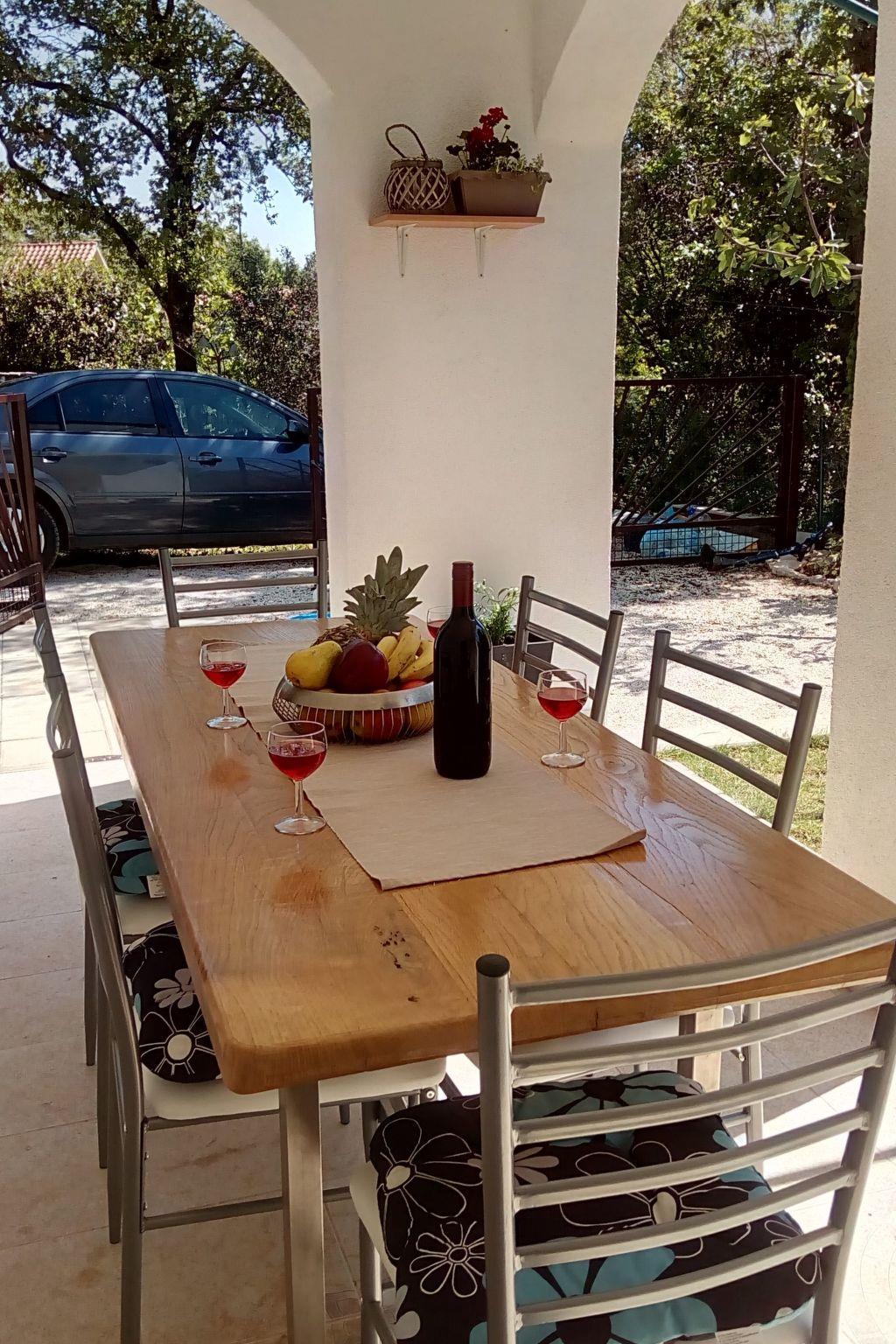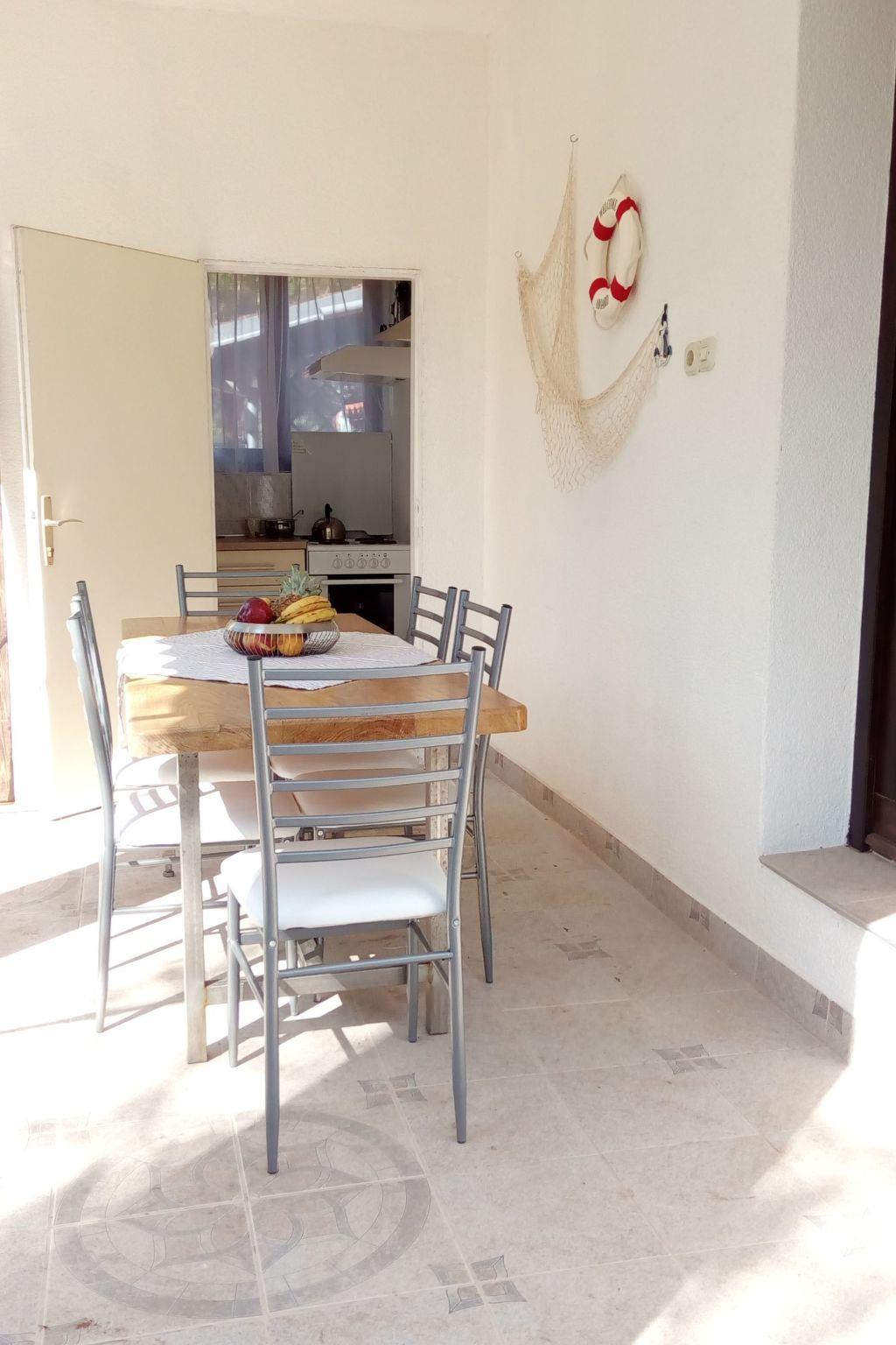 Im Außenbereich besitzt das Haus eine geräumige Terrasse mit Gartenmöbeln und Liegestühlen, eine Solardusche, einen eigenen Hof, einen Grillplatz, einen kleinen mediterranen Kräutergarten und einen privaten Parkplatz. Bäume, die das Haus umgeben, bieten genug Schatten und eine frische Brise sorgt an heißen Sommertagen für Abkühlung und angenehmen Schlaf in den Sommernächten. Das Grundstück ist eingezäunt und für Kinder geeignet.