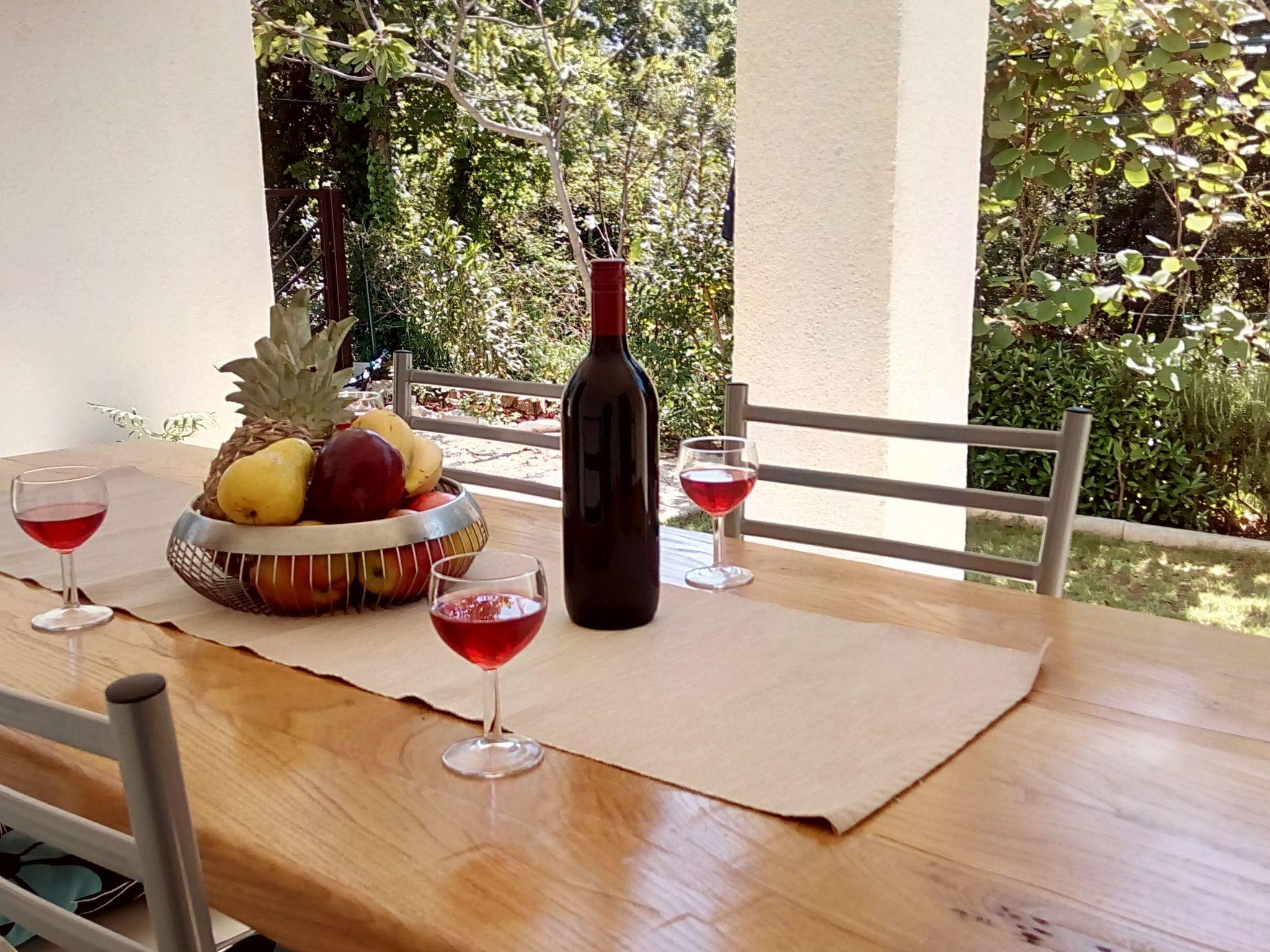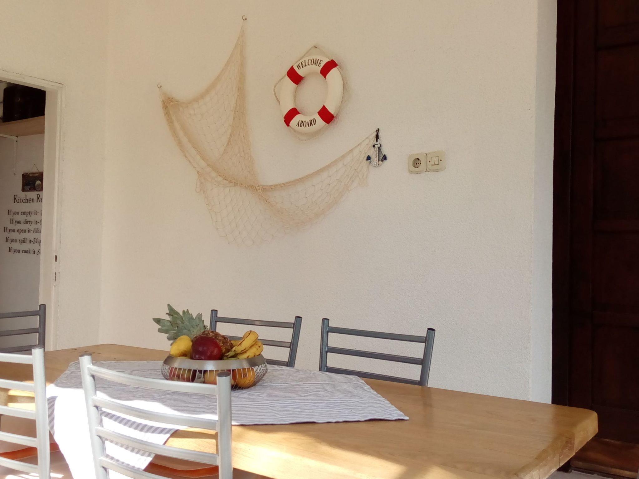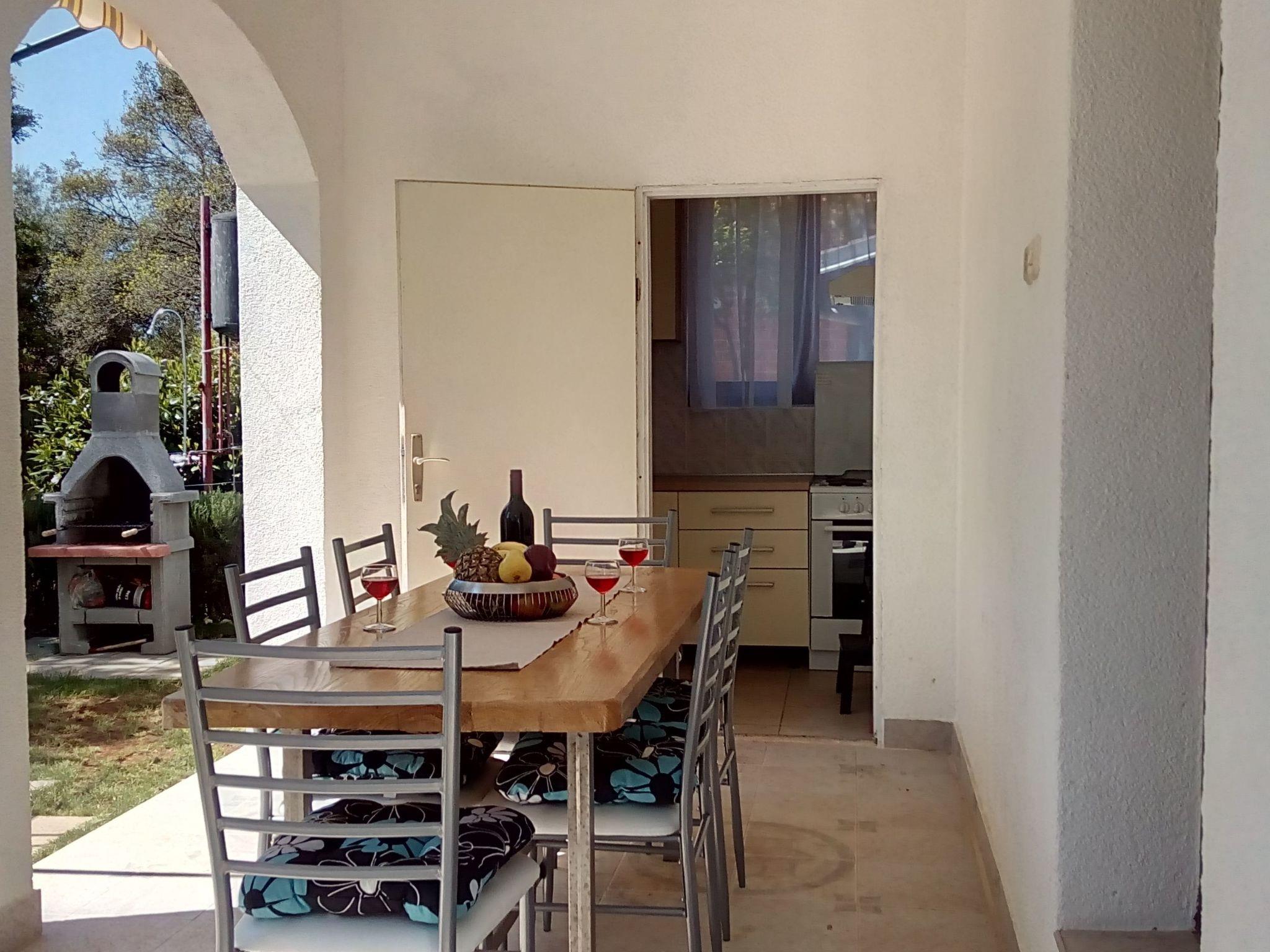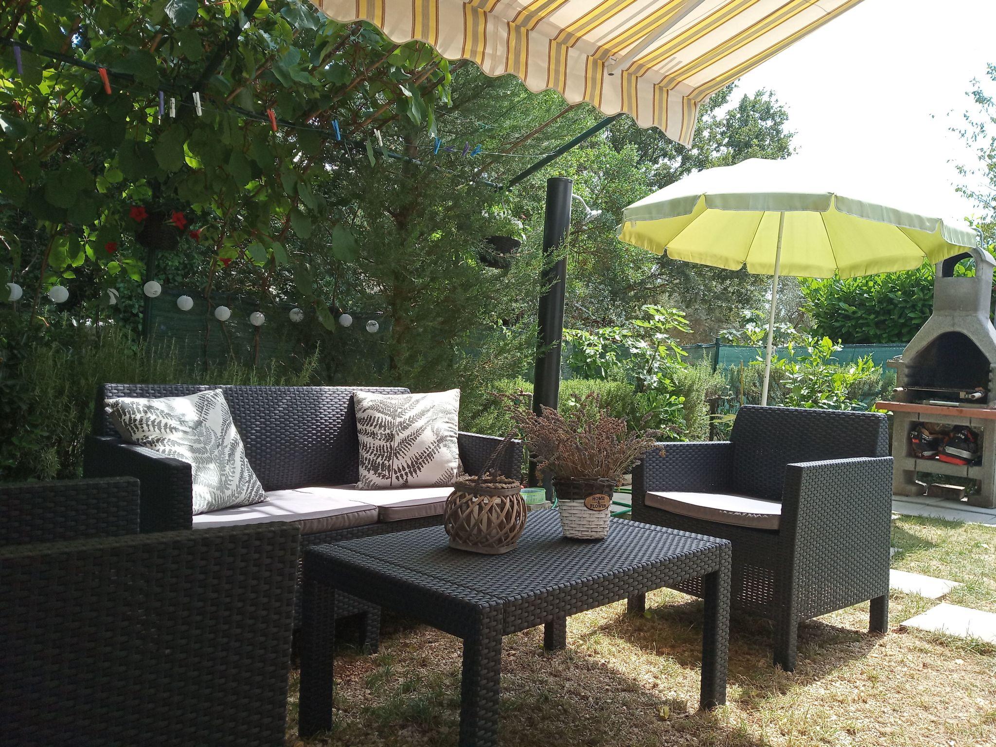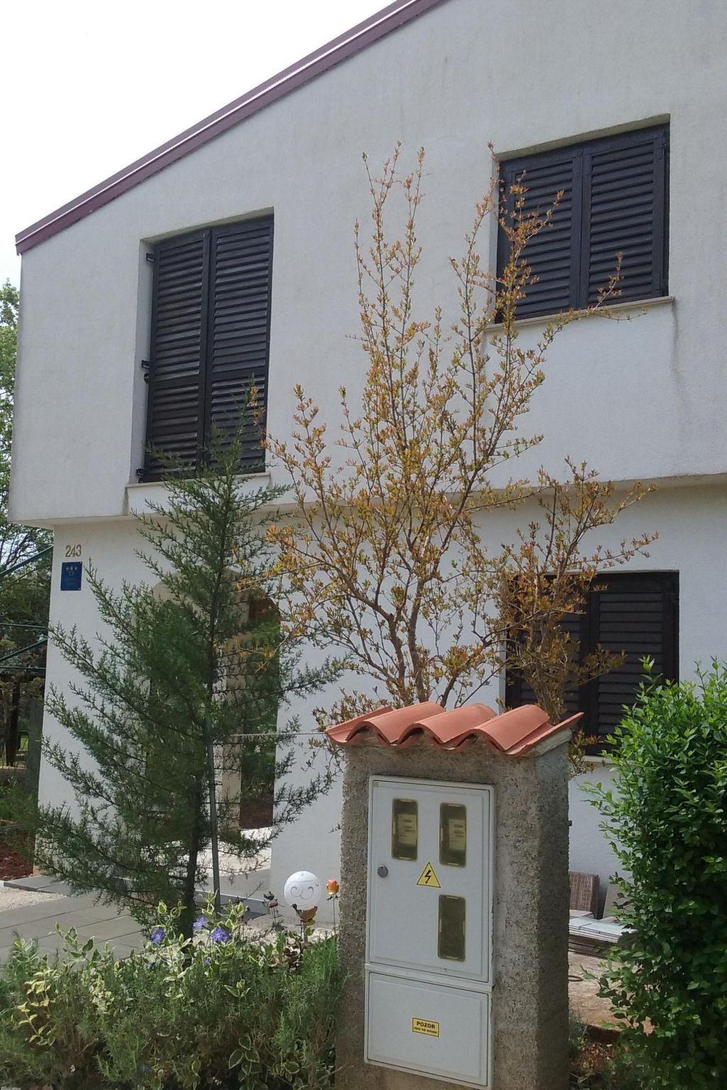 Im Außenbereich besitzt das Haus eine geräumige Terrasse mit Gartenmöbeln und Liegestühlen, eine Solardusche, einen eigenen Hof, einen Grillplatz, einen kleinen mediterranen Kräutergarten und einen privaten Parkplatz. Bäume, die das Haus umgeben, bieten genug Schatten und eine frische Brise sorgt an heißen Sommertagen für Abkühlung und angenehmen Schlaf in den Sommernächten. Das Grundstück ist eingezäunt und für Kinder geeignet.