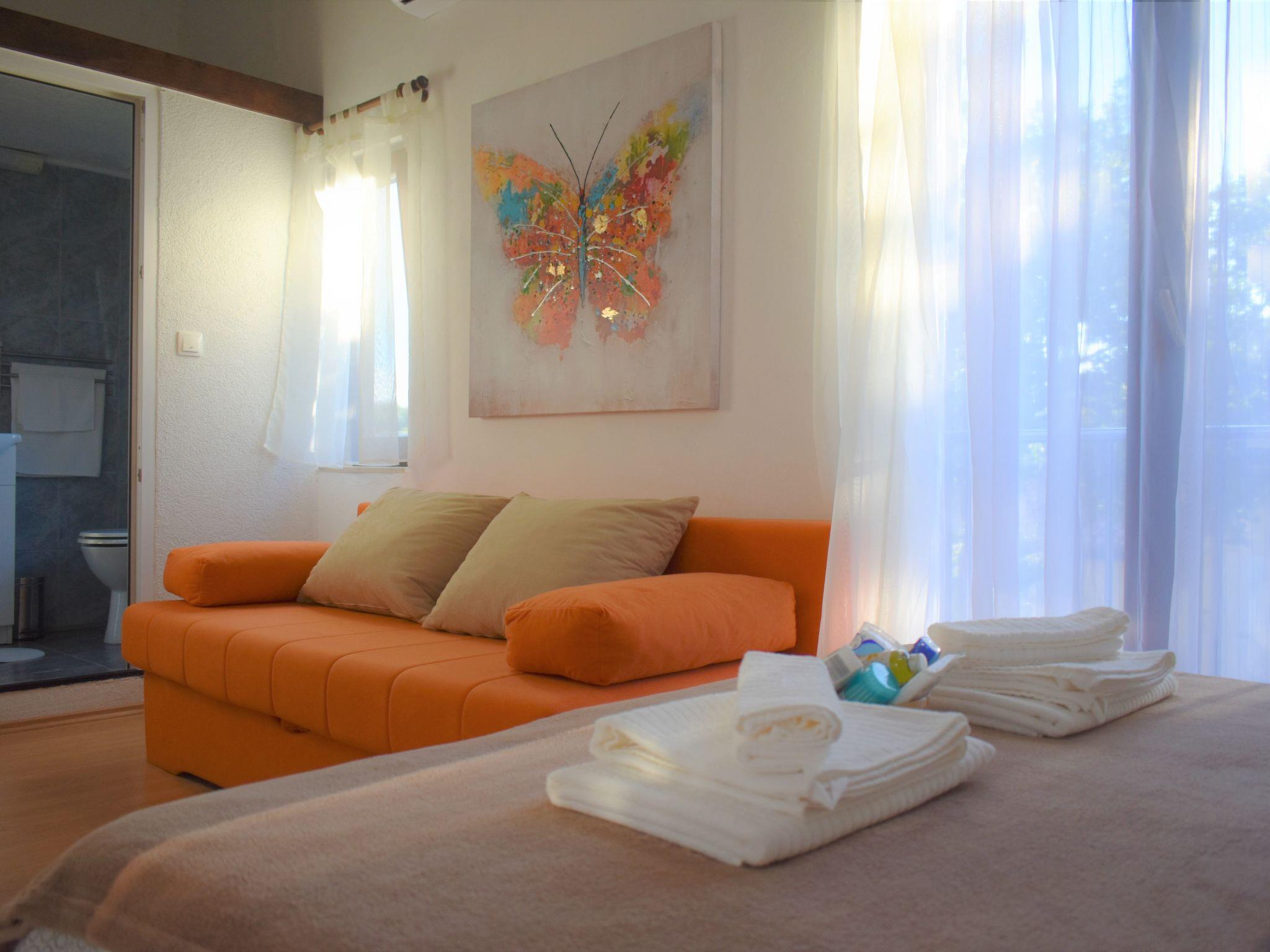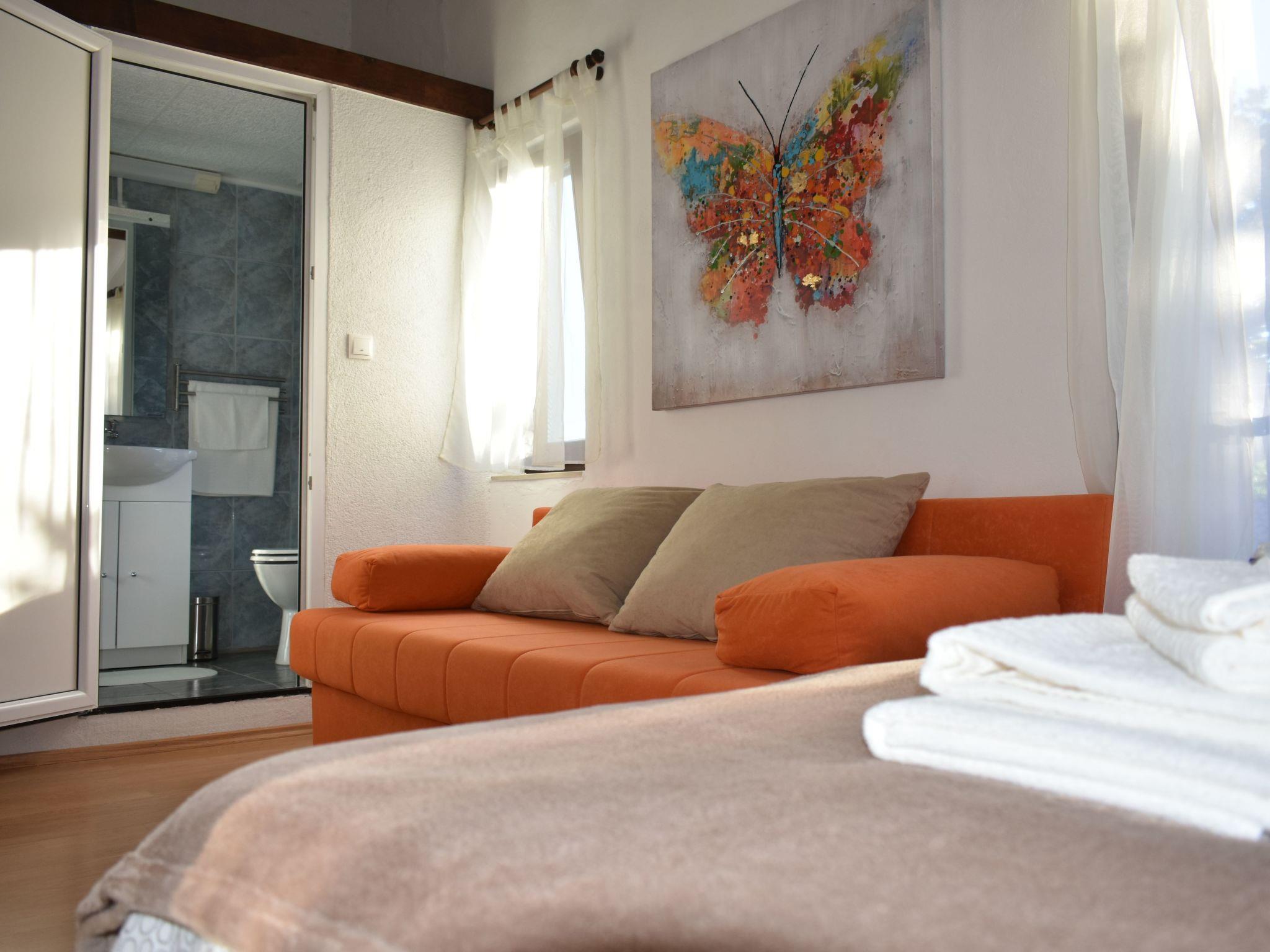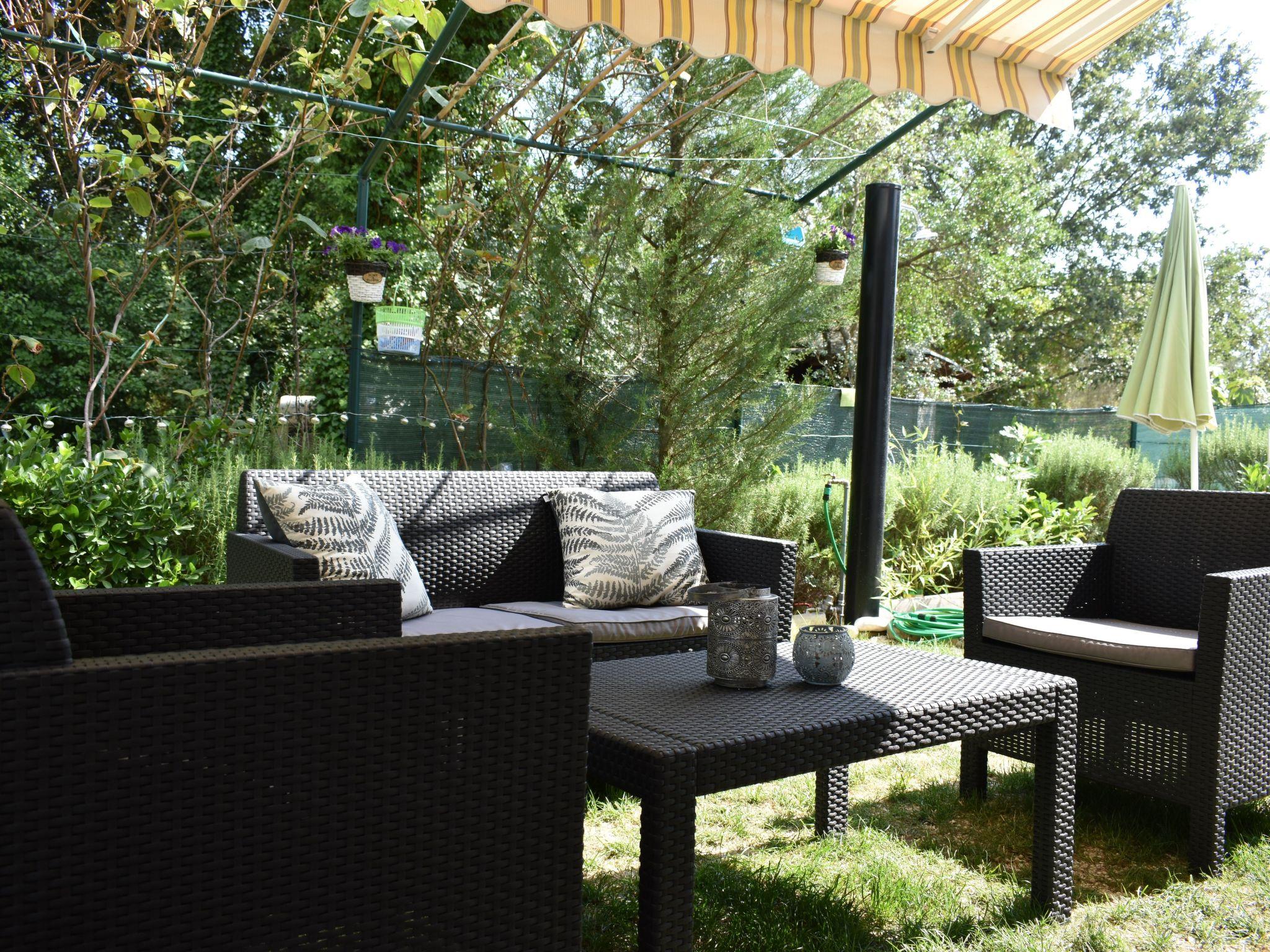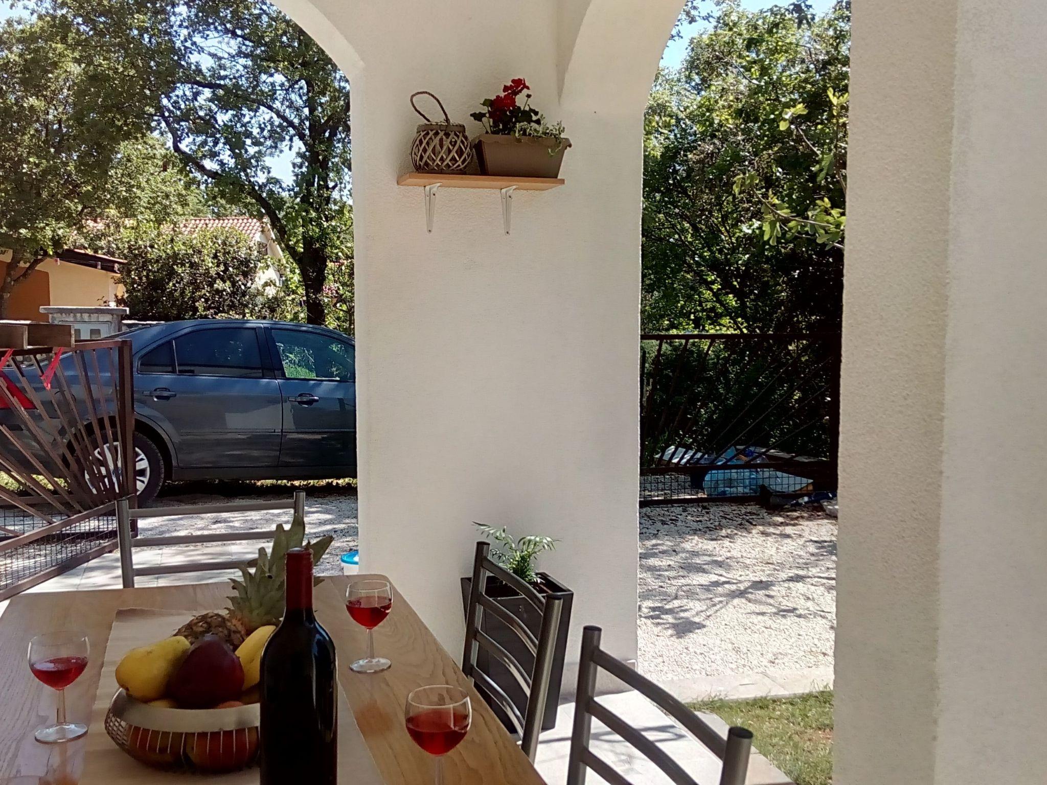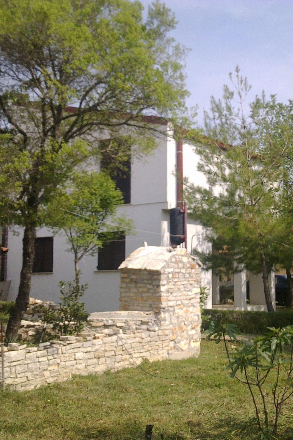 Im Außenbereich besitzt das Haus eine geräumige Terrasse mit Gartenmöbeln und Liegestühlen, eine Solardusche, einen eigenen Hof, einen Grillplatz, einen kleinen mediterranen Kräutergarten und einen privaten Parkplatz. Bäume, die das Haus umgeben, bieten genug Schatten und eine frische Brise sorgt an heißen Sommertagen für Abkühlung und angenehmen Schlaf in den Sommernächten. Das Grundstück ist eingezäunt und für Kinder geeignet.