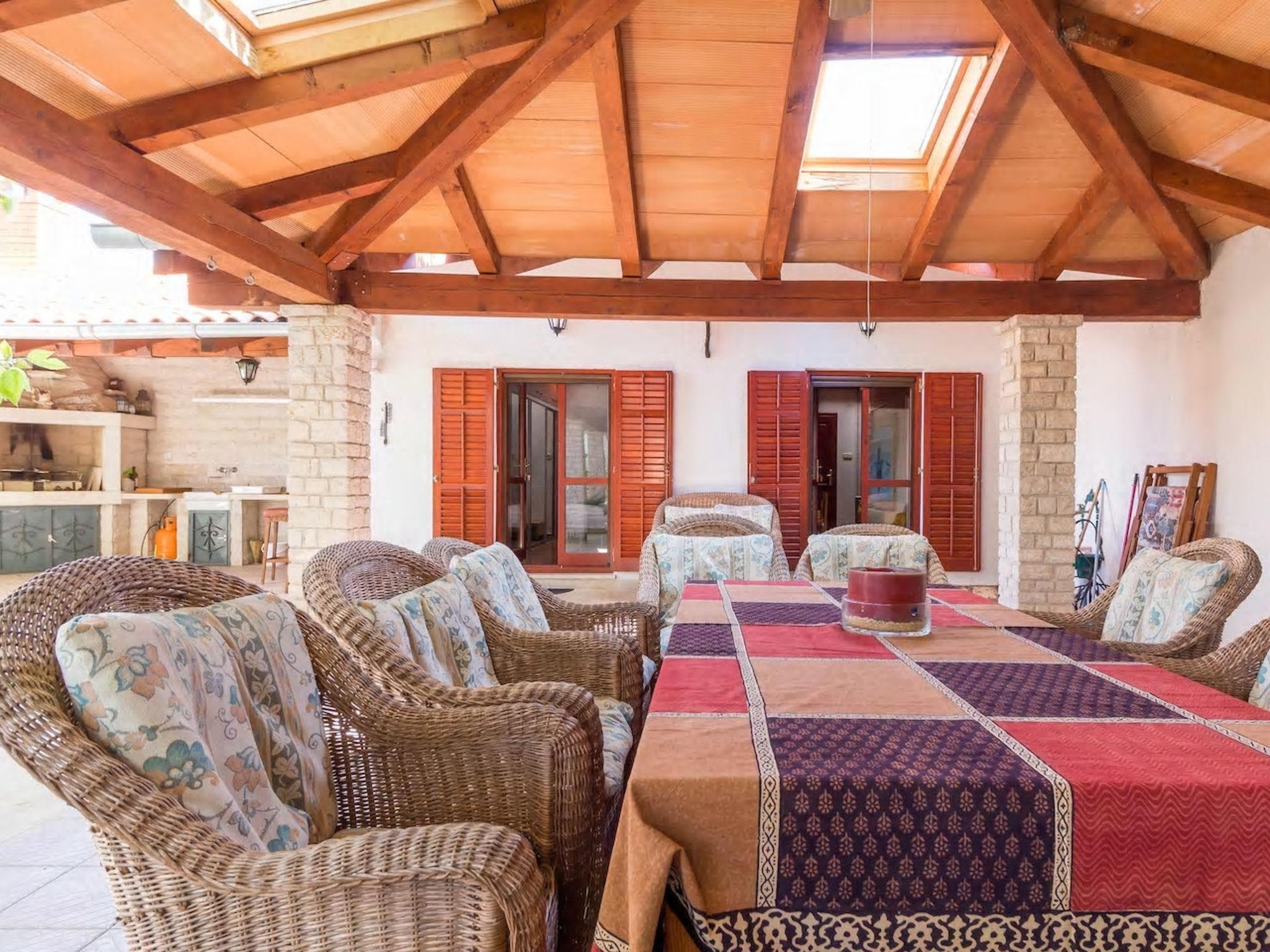 Premantura 10 km von Pula: Einfamilienhaus "Atri giardino". 300 m vom Zentrum von Premantura, 300 m vom Meer, 500 m vom Strand. Zur Alleinbenutzung: Grundstück 300 m2 (eingezäunt) mit Blumen und Bäumen. Aussendusche, Grill. Im Hause: Internetzugang, Waschmaschine. Parkplatz (überdacht) beim Haus auf dem Grundstück. Einkaufsgeschäft, Restaurant, Bushaltestelle 300 m, Kieselstrand, Felsstrand 500 m. Radweg 50 m. Nahe gelegene Sehenswürdigkeiten: Park prirode Rt Kamenjak 500 m, Pula Arena 10 km. Bitte beachten: geeignet für Familien. Der Besitzer akzeptiert keine Jugendgruppen.