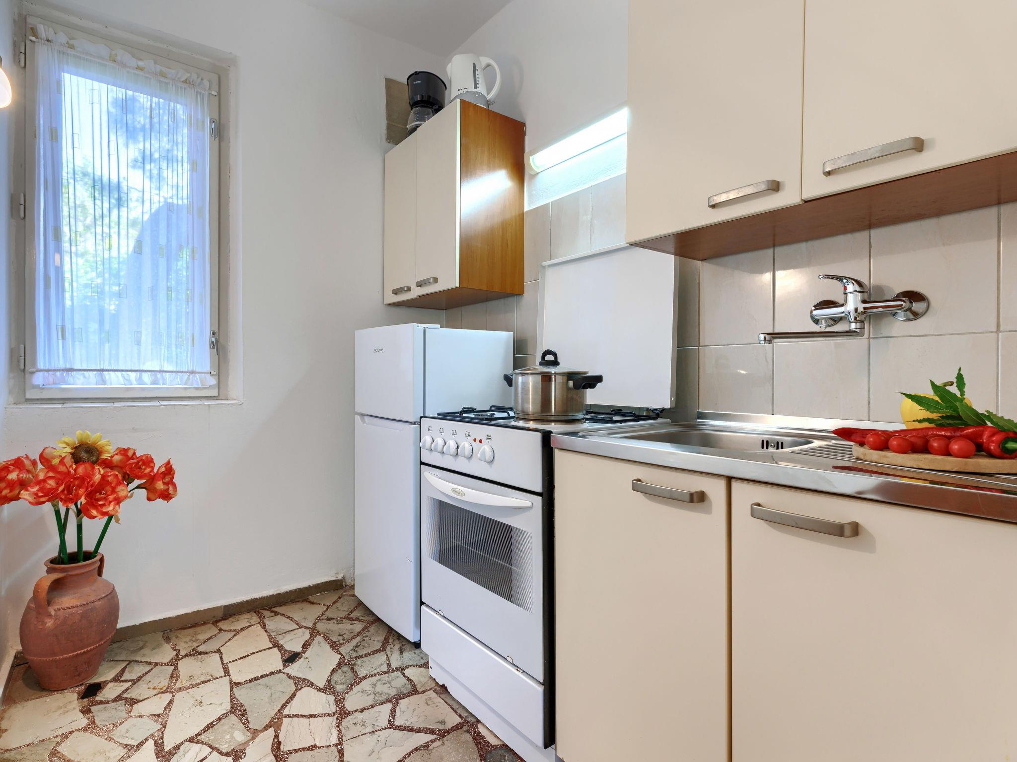 Einfamilienhaus "Margit". 600 m vom Zentrum von Premantura, am Ortsrand, 12 km vom Zentrum von Pula, 300 m vom Meer, 400 m vom Strand. Zur Alleinbenutzung: Grundstück 400 m2 (eingezäunt), Rasen und Bäumen. Aussendusche, Grill. Im Hause: Internetzugang, Waschmaschine. Zufahrt bis zum Haus (30 m Naturweg). Parkplatz (überdacht) auf dem Grundstück. Einkaufsgeschäft 600 m, Bushaltestelle 280 m, Kieselstrand 1 km, Felsstrand 400 m. Zugang zum Felsenstrand über einen Fußweg.