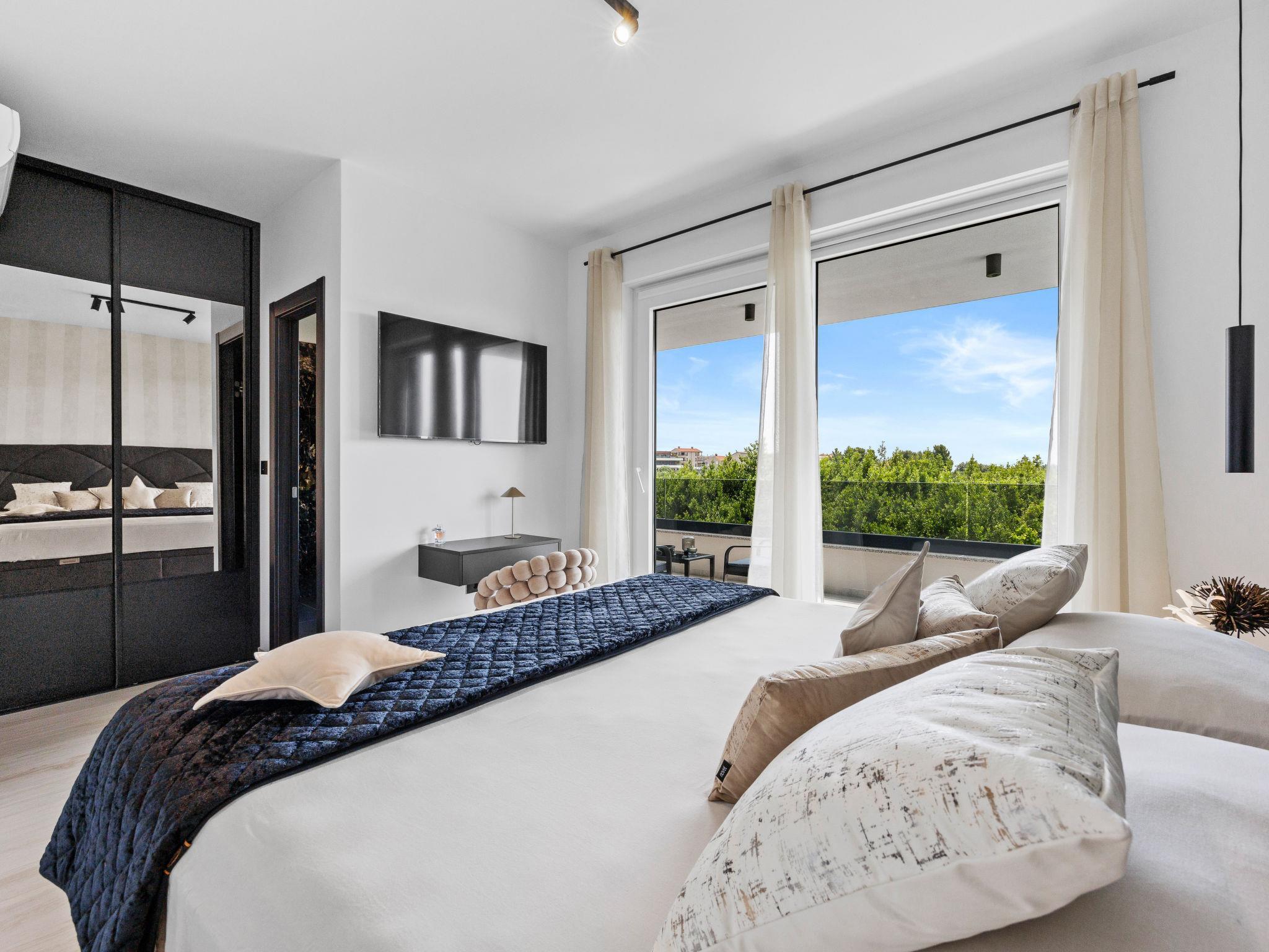 5-Zimmer-Villa 180 m2 auf 2 Stockwerken. Modern eingerichtet: Wohn-/Esszimmer mit Sat-TV (Flachbildschirm), Klimaanlage. Ausgang zur Terrasse, zum Schwimmbad. 1 Zimmer mit 1 franz. Bett (180 cm, Länge 200 cm), Dusche/WC und Sat-TV (Flachbildschirm), Klimaanlage. Ausgang zum Garten. Offene Küche (Backofen, Geschirrspüler, 4 Glaskeramikplatten, Mikrowelle, Tiefkühler, elektrische Kaffeemaschine). Sep. WC. Obergeschoss: 1 Zimmer mit 1 franz. Bett (180 cm, Länge 200 cm), Dusche/WC und Sat-TV (Flachbildschirm), Klimaanlage. Ausgang zur Terrasse. 1 Zimmer mit 2 Betten (90 cm, Länge 200 cm), Dusche/WC und Sat-TV (Flachbildschirm), Klimaanlage. Ausgang zur Terrasse. 1 Zimmer mit 1 franz. Bett (180 cm, Länge 200 cm), Dusche/WC und Sat-TV (Flachbildschirm), Klimaanlage. Terrasse 15 m2, Terrasse 8 m2. Terrassenmöbel, Gartengrill (mobil), Liegestühle. Schöne Sicht auf das Meer. Zur Verfügung: Kinderhochstuhl, Babybett, Haartrockner. Internet (WLAN, gratis).