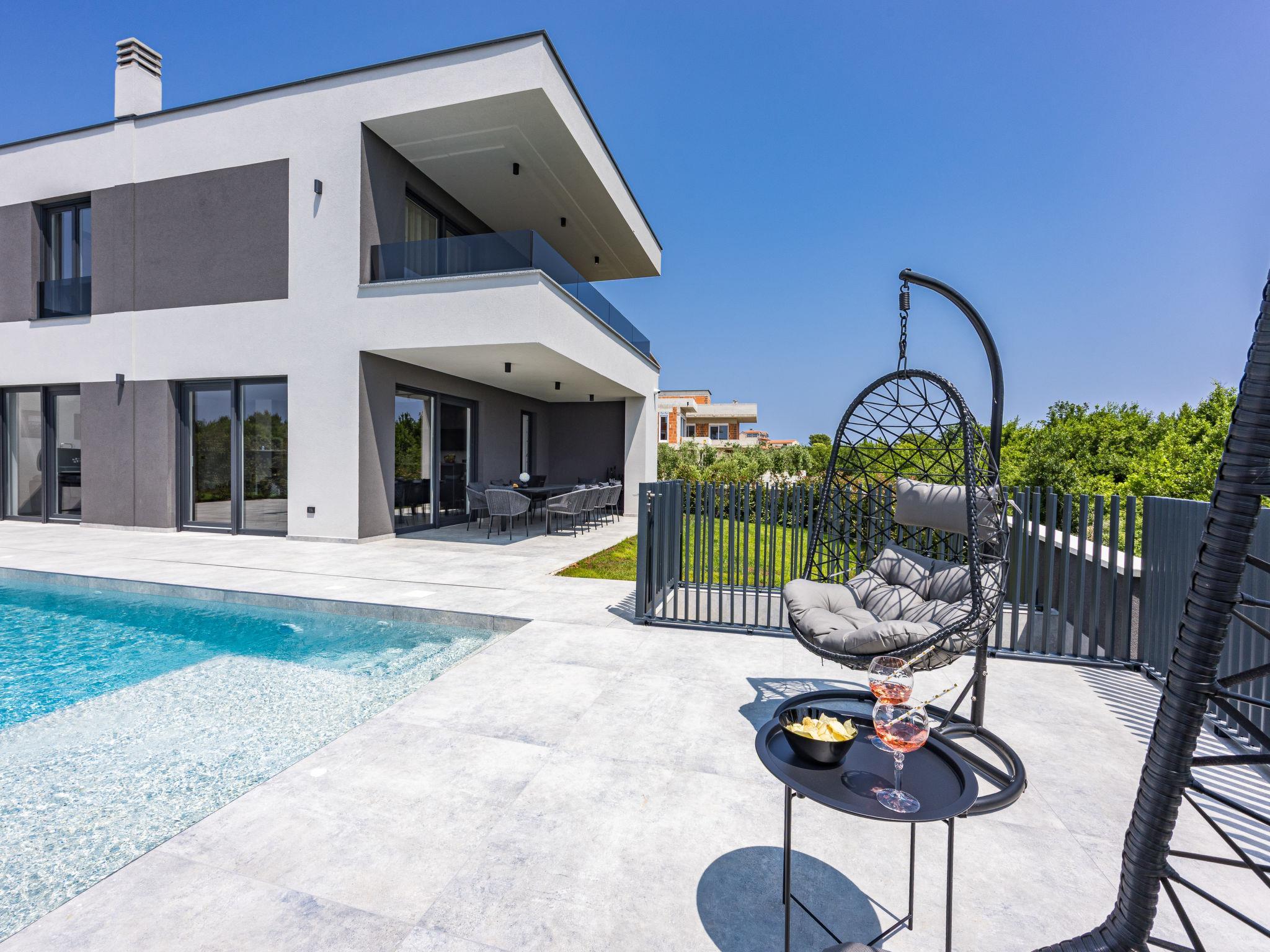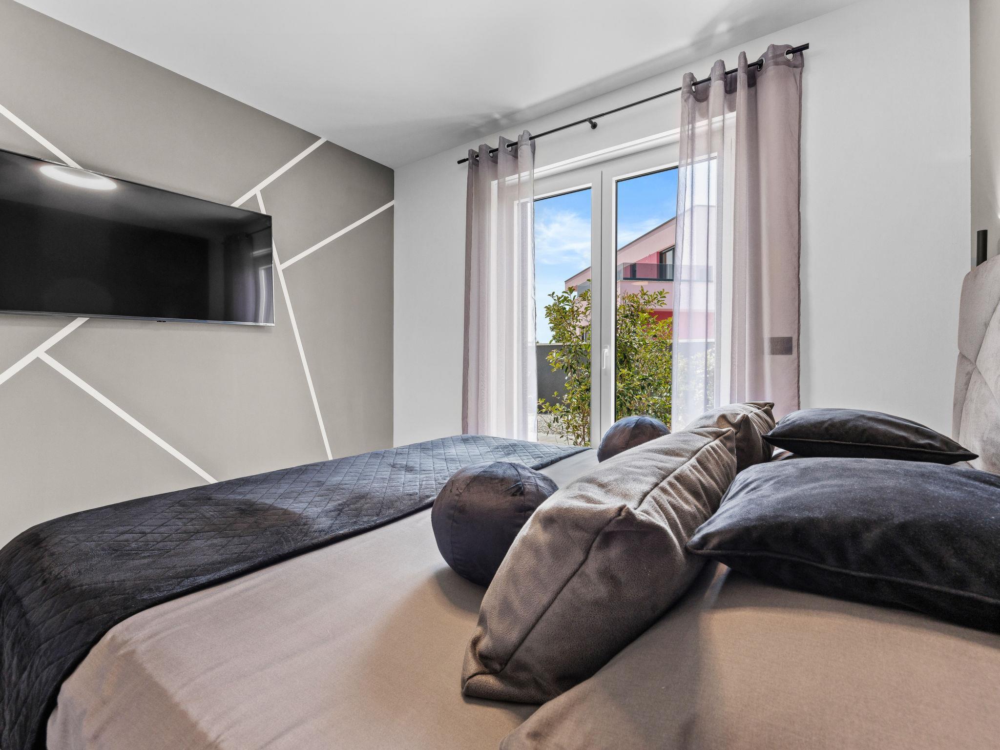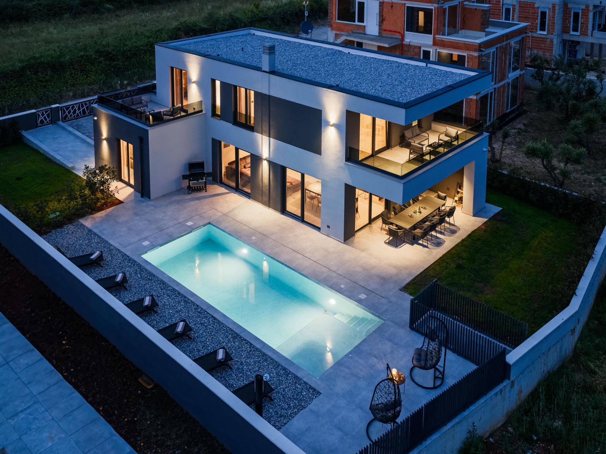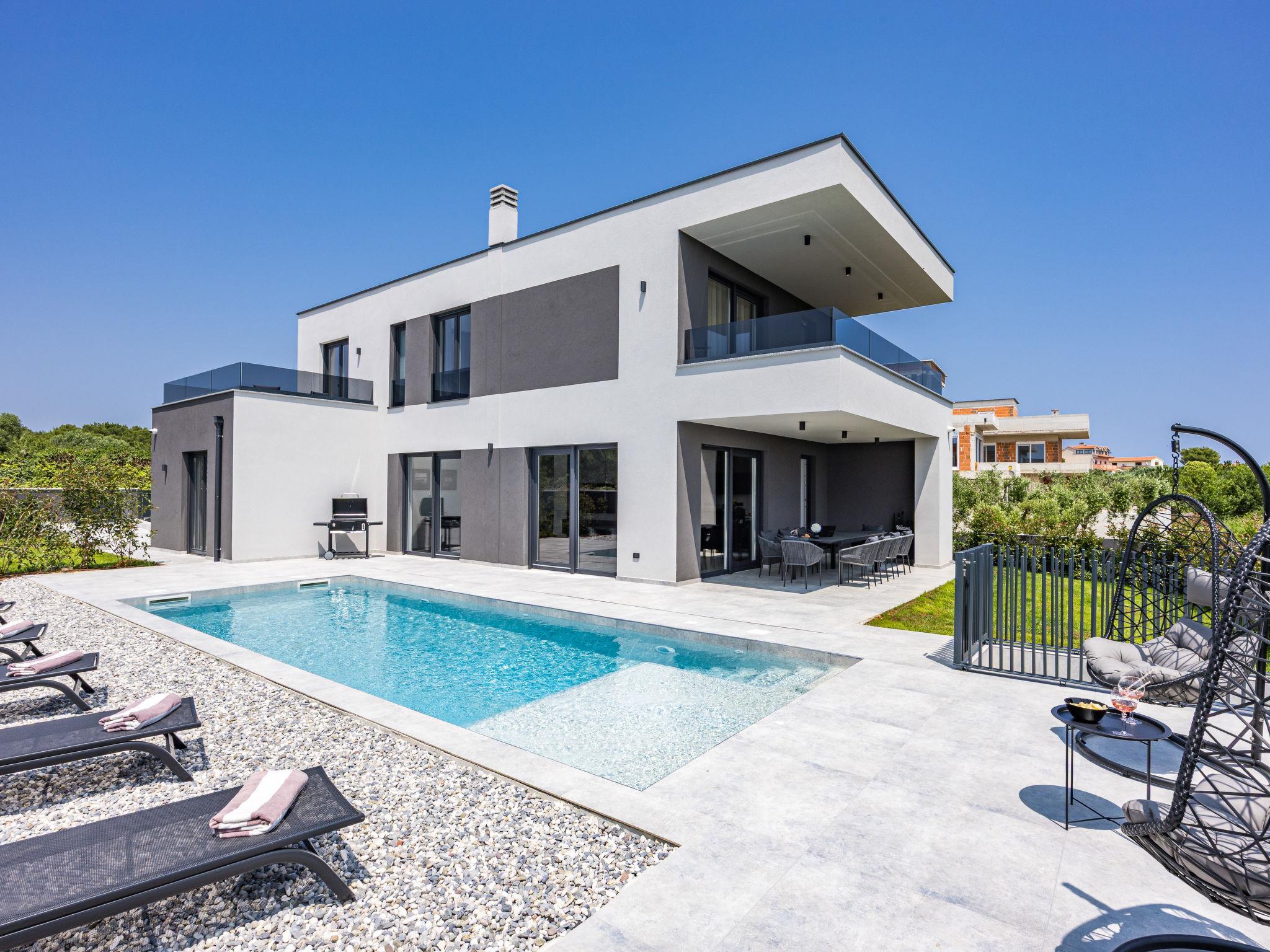 Premantura 11 km von Pula: Schöne Villa "Delecto", auf 2 Stockwerken, Baujahr 2025. 250 m vom Zentrum von Premantura, sonnige Lage, 500 m vom Meer, 500 m vom Strand. Zur Alleinbenutzung: Grundstück 600 m2 (eingezäunt), Garten mit Pflanzen, Schwimmbad eckig (8 x 4 m, 140 cm tief, saisonale Verfügbarkeit: 04.Apr. - 10.Okt.) mit Innentreppe. Aussendusche, Terrasse (15 m2), Grill, Poolpflege durch den Besitzer/Gärtner. Im Hause: Internetzugang, Waschmaschine. Parkplatz (für 3 Autos) beim Haus auf dem Grundstück. Einkaufsgeschäft 250 m, Supermarkt 4.5 km, Restaurant 50 m, Bushaltestelle 220 m, Kieselstrand 2.5 km, Felsstrand 500 m. Surfschule 2.5 km, Tennis 750 m, Reitstall 10 km, Wanderwege ab Haus 100 m, Radweg 150 m. Nahe gelegene Sehenswürdigkeiten: Nature park Kamenjak 650 m. Jugendgruppen nur auf Anfrage. Die Nachbarschaft ist sehr lärmempfindlich. Ruhe und gutes Benehmen wird erwartet. Schwimmbad mit Hydromassage.