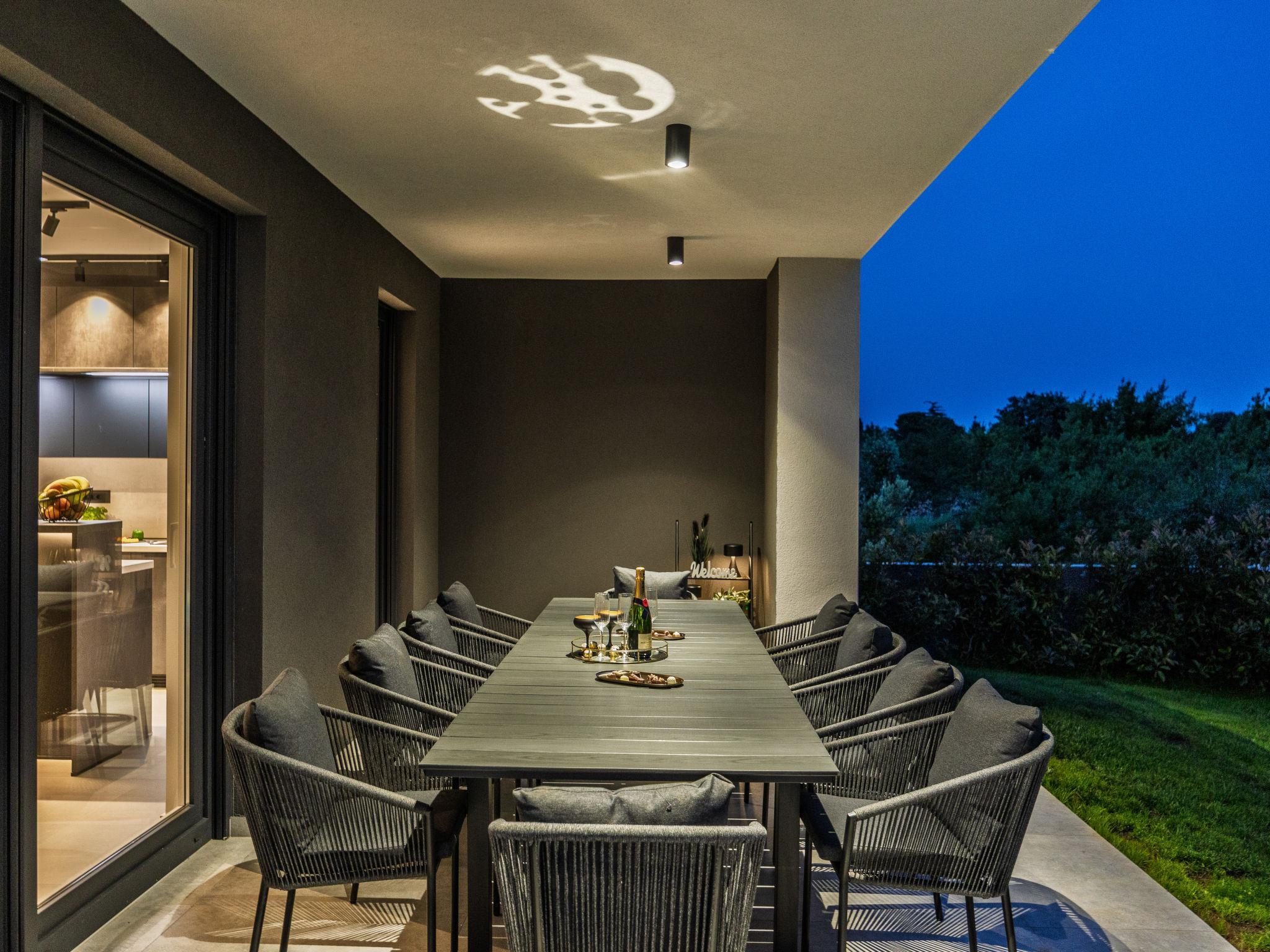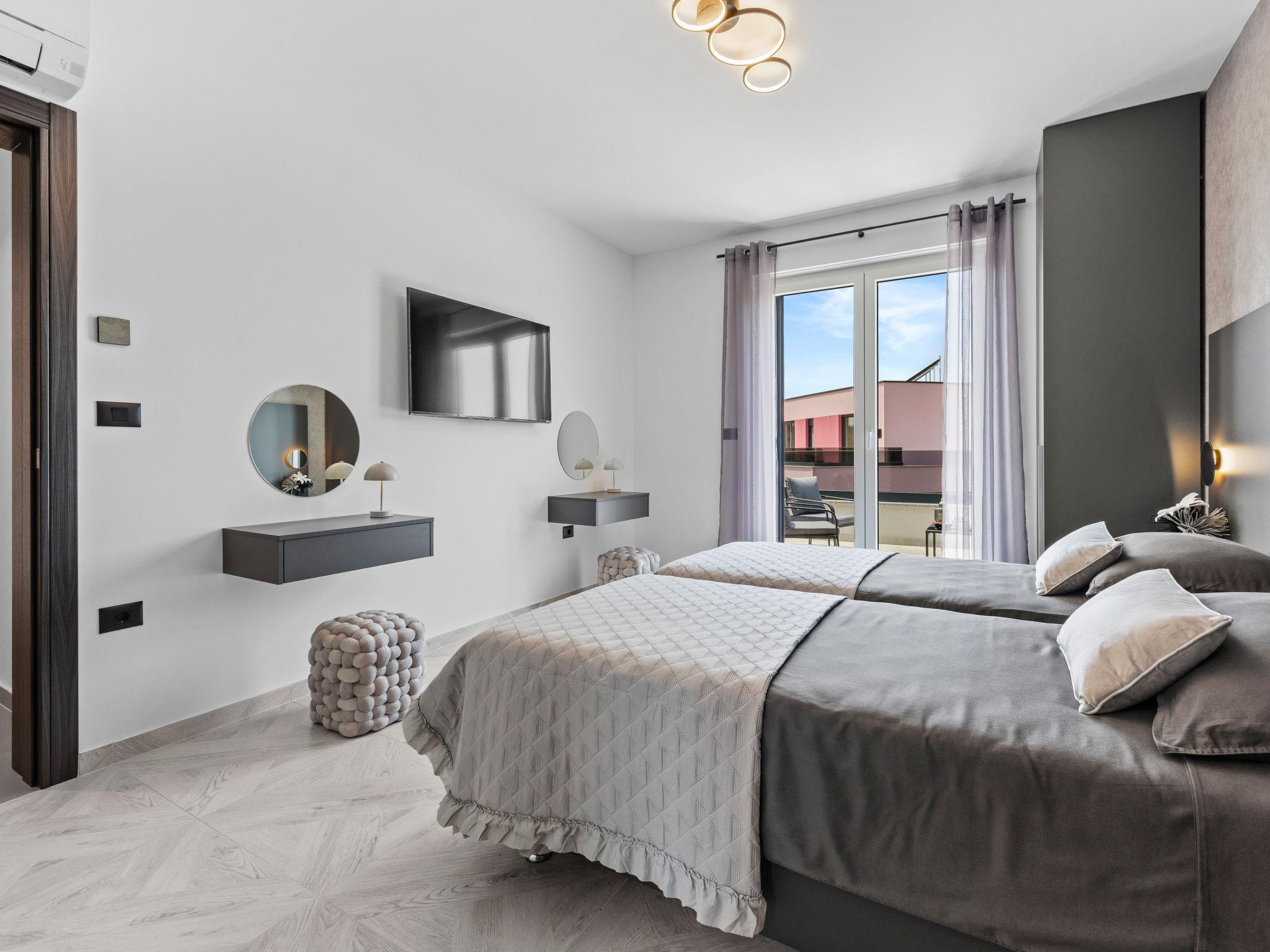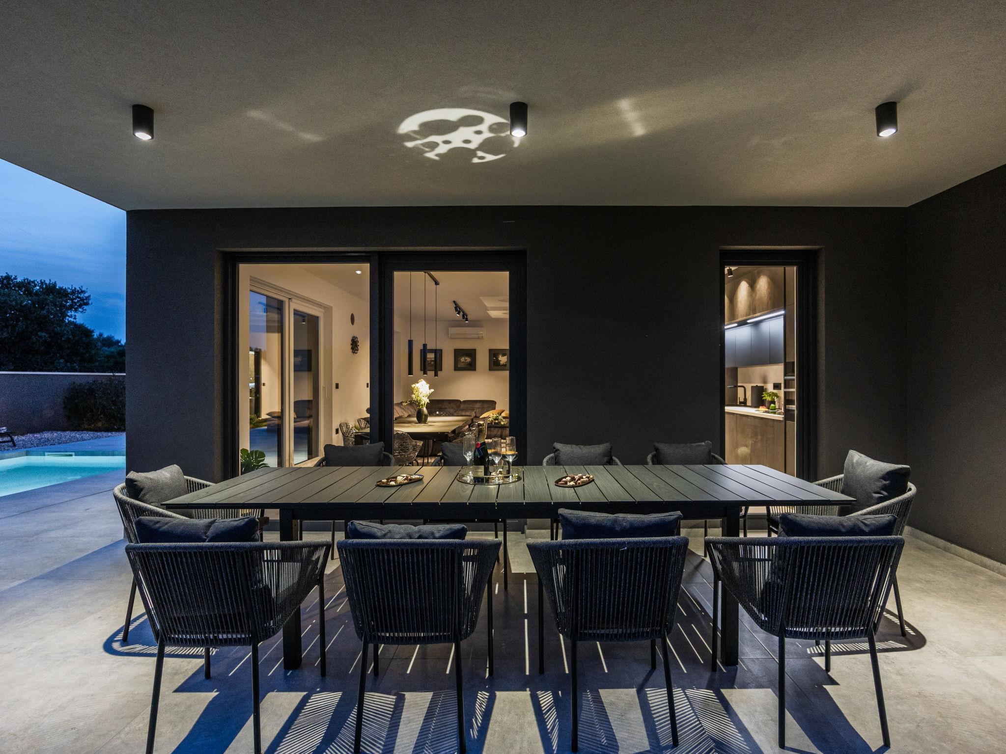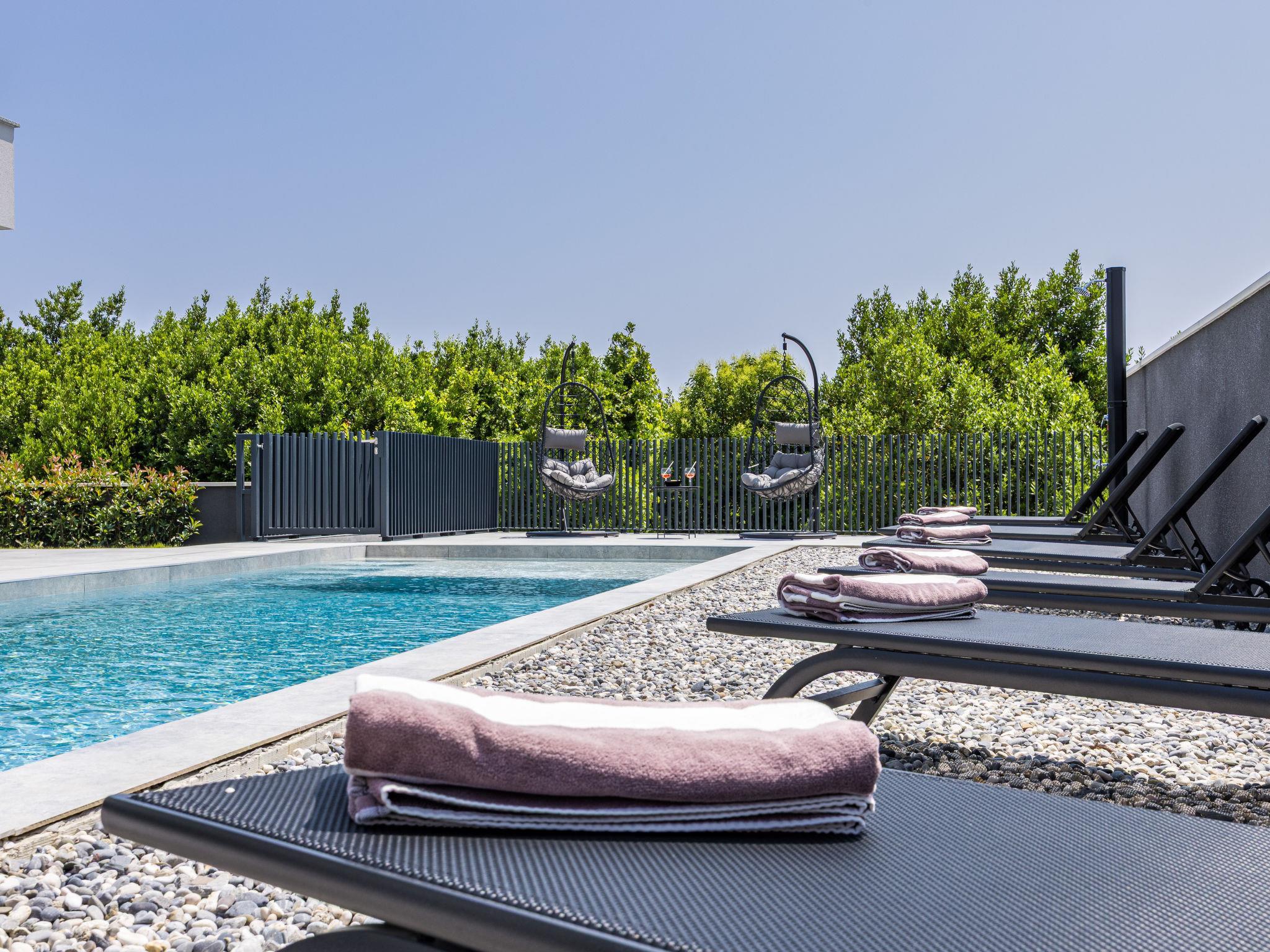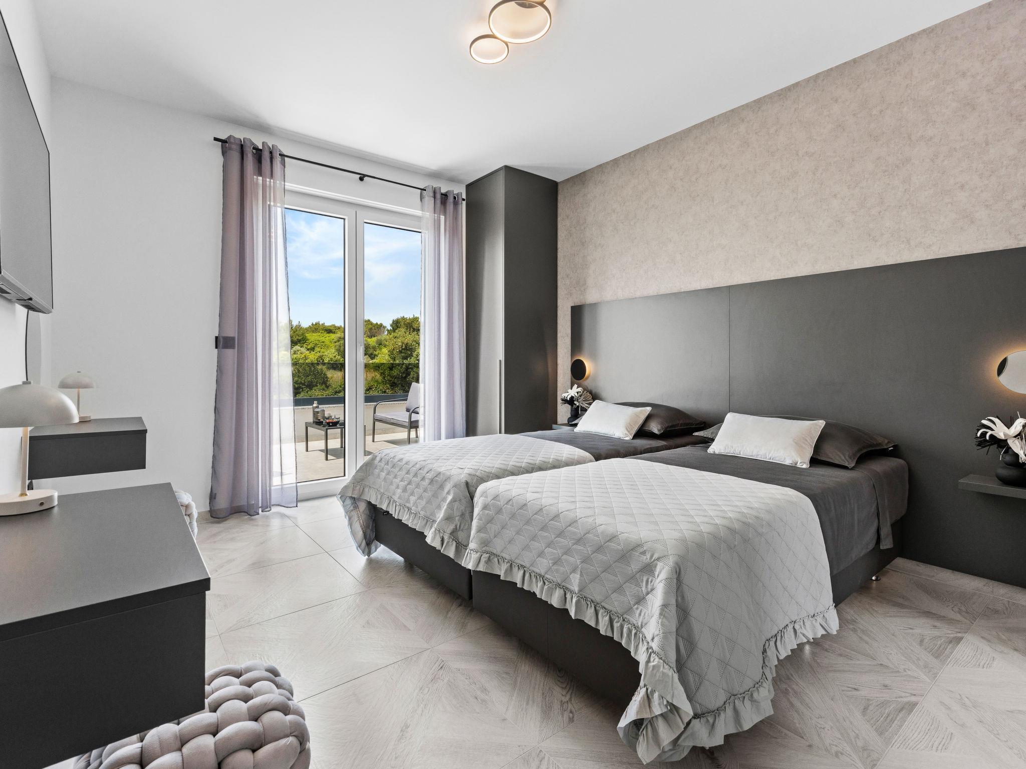 Premantura 11 km von Pula: Schöne Villa "Delecto", auf 2 Stockwerken, Baujahr 2025. 250 m vom Zentrum von Premantura, sonnige Lage, 500 m vom Meer, 500 m vom Strand. Zur Alleinbenutzung: Grundstück 600 m2 (eingezäunt), Garten mit Pflanzen, Schwimmbad eckig (8 x 4 m, 140 cm tief, saisonale Verfügbarkeit: 04.Apr. - 10.Okt.) mit Innentreppe. Aussendusche, Terrasse (15 m2), Grill, Poolpflege durch den Besitzer/Gärtner. Im Hause: Internetzugang, Waschmaschine. Parkplatz (für 3 Autos) beim Haus auf dem Grundstück. Einkaufsgeschäft 250 m, Supermarkt 4.5 km, Restaurant 50 m, Bushaltestelle 220 m, Kieselstrand 2.5 km, Felsstrand 500 m. Surfschule 2.5 km, Tennis 750 m, Reitstall 10 km, Wanderwege ab Haus 100 m, Radweg 150 m. Nahe gelegene Sehenswürdigkeiten: Nature park Kamenjak 650 m. Jugendgruppen nur auf Anfrage. Die Nachbarschaft ist sehr lärmempfindlich. Ruhe und gutes Benehmen wird erwartet. Schwimmbad mit Hydromassage.