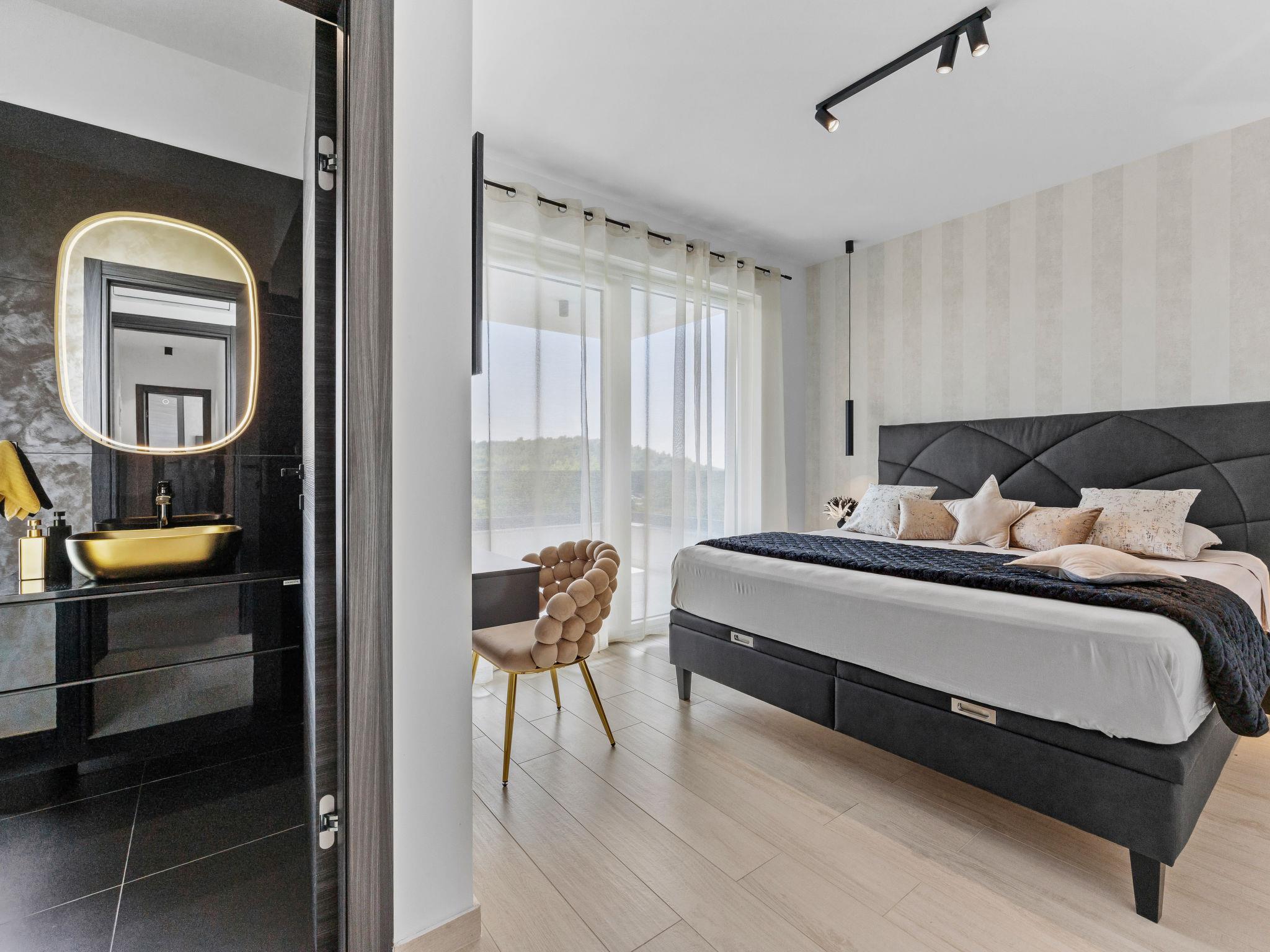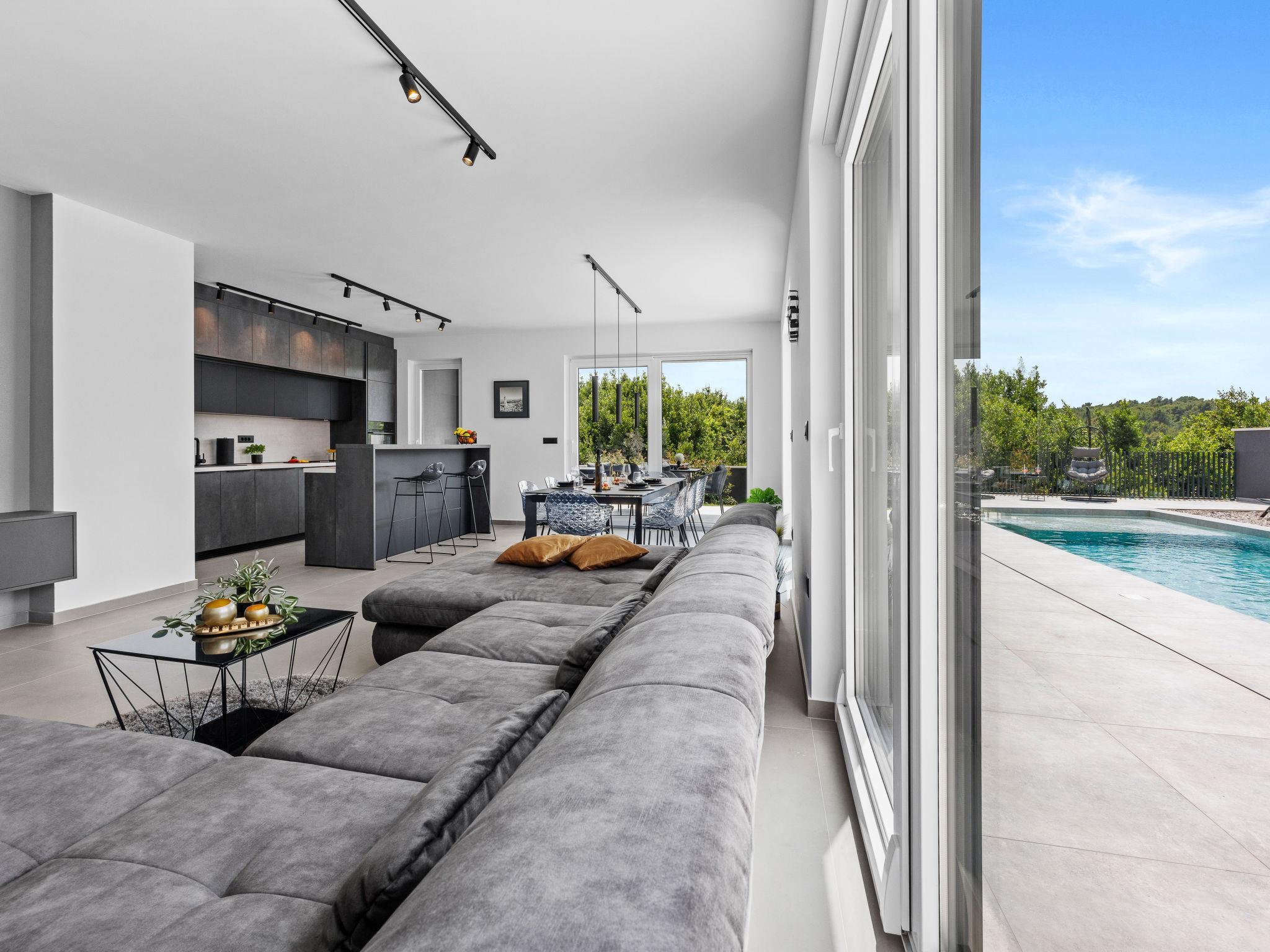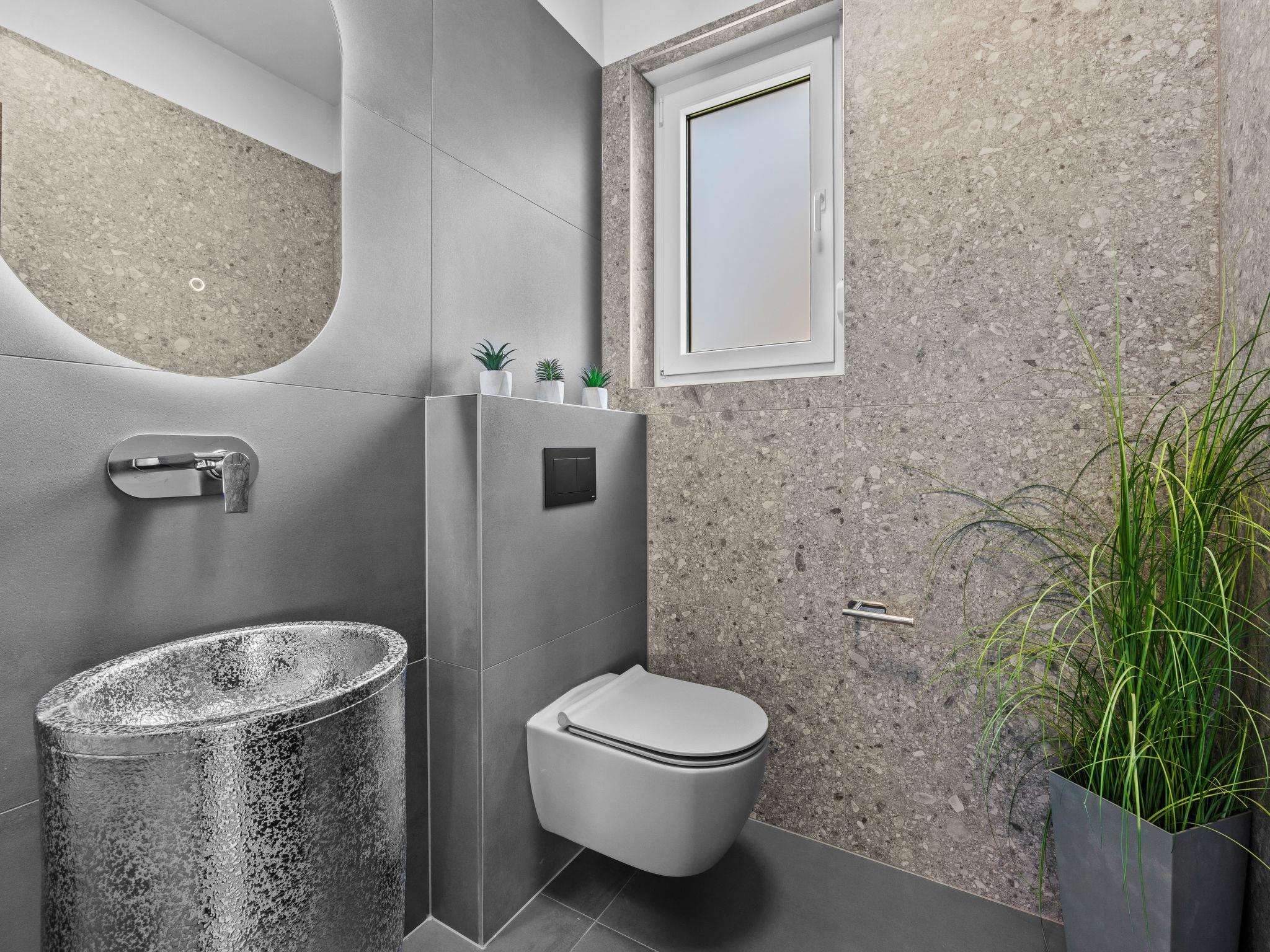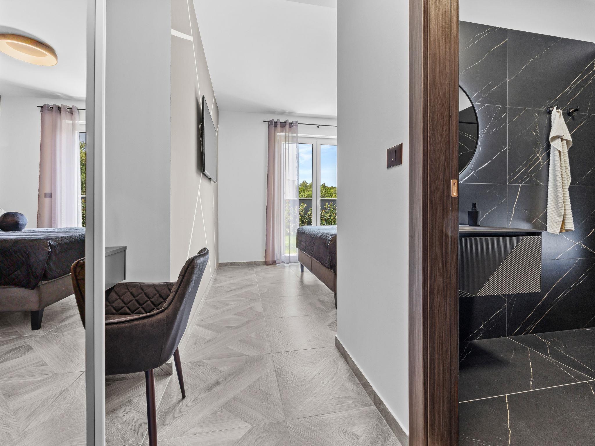 Premantura 11 km von Pula: Schöne Villa "Delecto", auf 2 Stockwerken, Baujahr 2025. 250 m vom Zentrum von Premantura, sonnige Lage, 500 m vom Meer, 500 m vom Strand. Zur Alleinbenutzung: Grundstück 600 m2 (eingezäunt), Garten mit Pflanzen, Schwimmbad eckig (8 x 4 m, 140 cm tief, saisonale Verfügbarkeit: 04.Apr. - 10.Okt.) mit Innentreppe. Aussendusche, Terrasse (15 m2), Grill, Poolpflege durch den Besitzer/Gärtner. Im Hause: Internetzugang, Waschmaschine. Parkplatz (für 3 Autos) beim Haus auf dem Grundstück. Einkaufsgeschäft 250 m, Supermarkt 4.5 km, Restaurant 50 m, Bushaltestelle 220 m, Kieselstrand 2.5 km, Felsstrand 500 m. Surfschule 2.5 km, Tennis 750 m, Reitstall 10 km, Wanderwege ab Haus 100 m, Radweg 150 m. Nahe gelegene Sehenswürdigkeiten: Nature park Kamenjak 650 m. Jugendgruppen nur auf Anfrage. Die Nachbarschaft ist sehr lärmempfindlich. Ruhe und gutes Benehmen wird erwartet. Schwimmbad mit Hydromassage.
