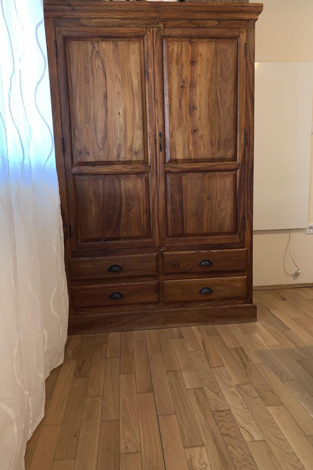 Die Wohnung befindet sich in der 3 Etage des Mehrfamilienhauses mit einem unterbauten herrlichen Blick auf die Adria und die vorgelagerten Inseln. Die neu adaptierte Dachgeschosswohnung verfügt über ein Schlafzimmer (Bett 160x200) mit hohen Decken welches mit indischen Holzmöbeln eingerichtet ist. Alle Fenster in der Wohnung verfügen über Mückennetze.