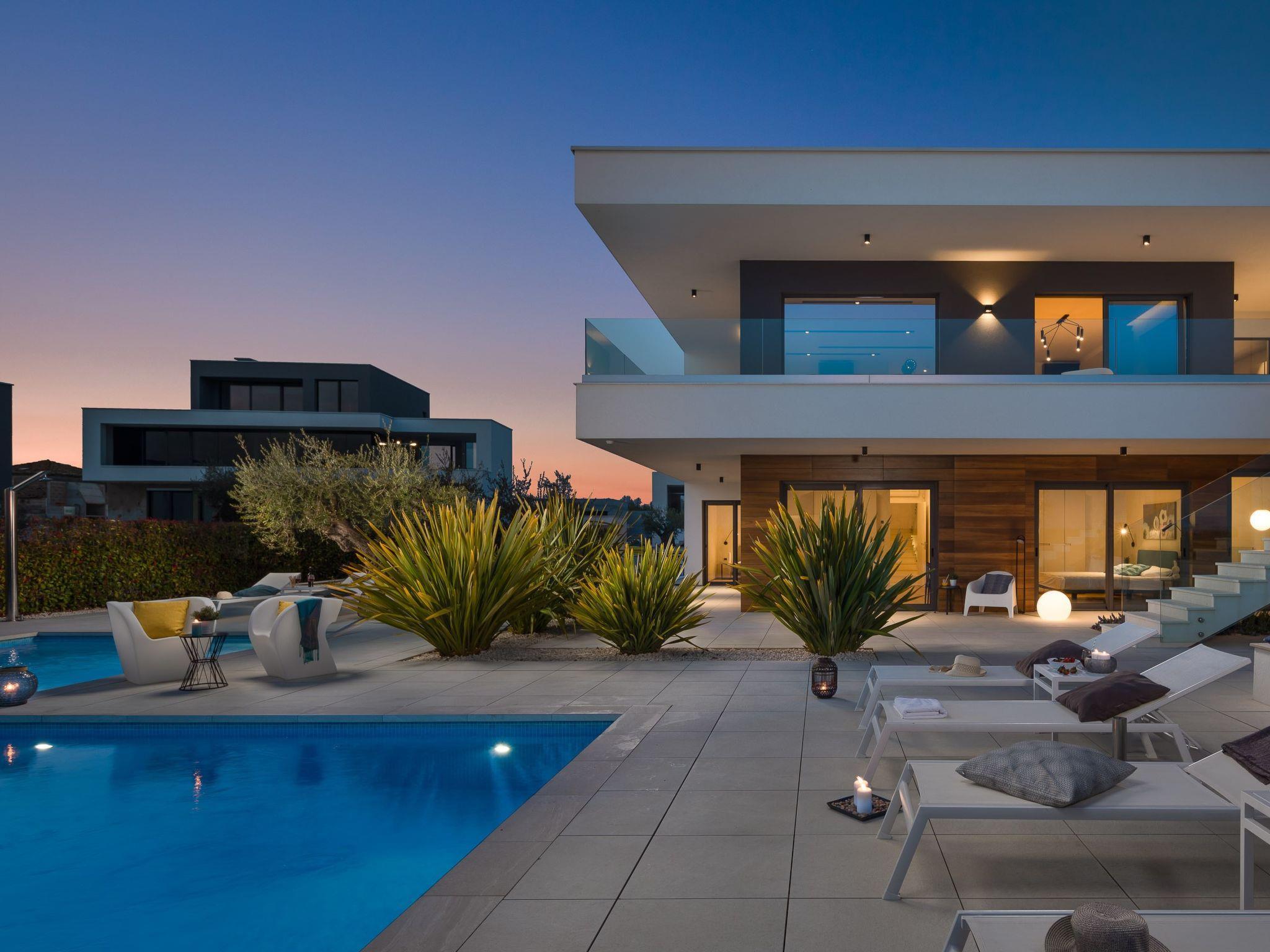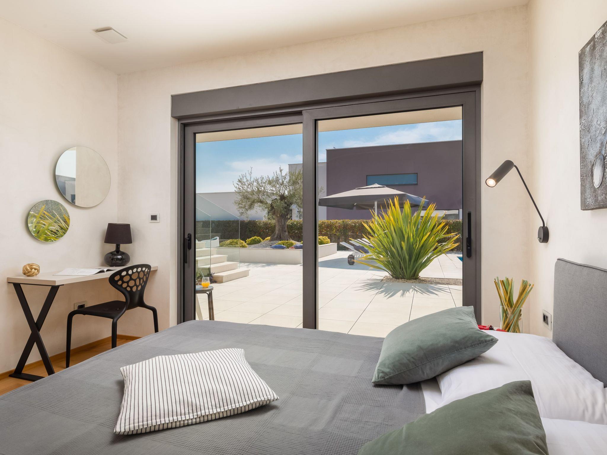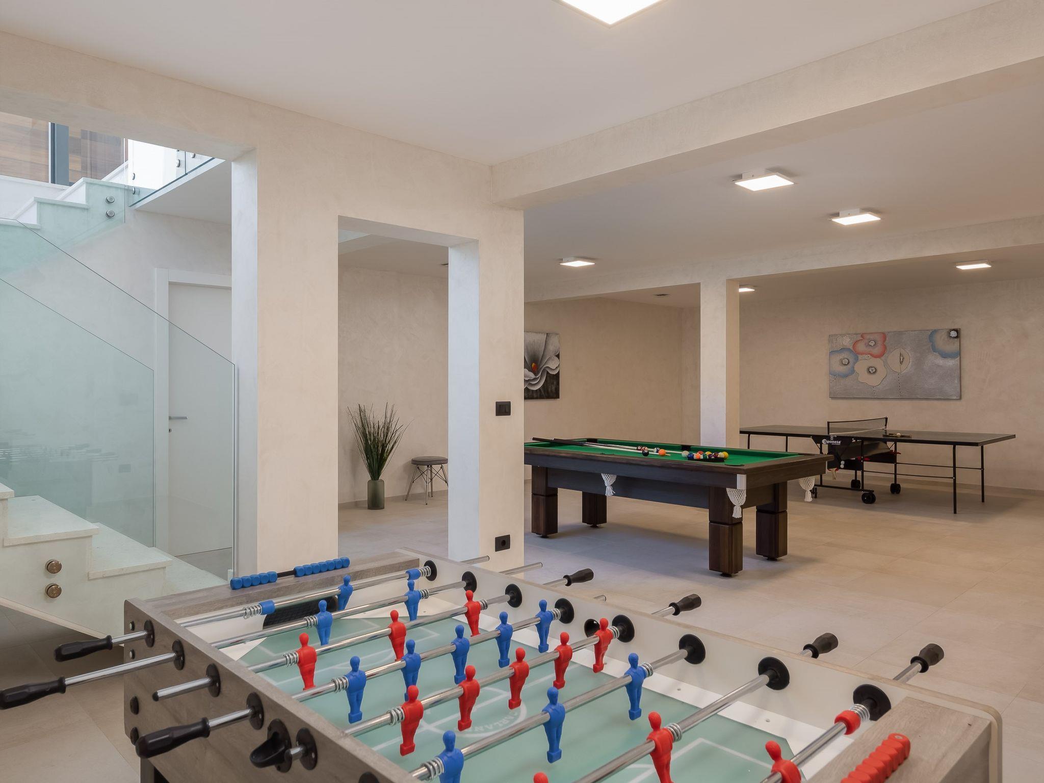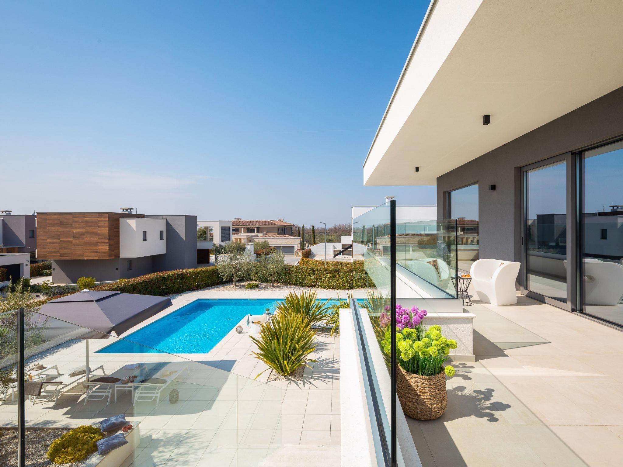 Vodnjan: Moderne Villa "Old Olive VII", auf 3 Stockwerken. Im Weiler Salvela, 1 km vom Zentrum von Vodnjan, 7 km vom Zentrum von Fažana, 10 km vom Zentrum von Pula, sonnige Lage, 7 km vom Meer. Zur Alleinbenutzung: Grundstück 1'069 m2 (eingezäunt), Garten mit Pflanzen und Bäumen, Schwimmbad (65 m2, 30 - 140 cm tief, saisonale Verfügbarkeit: 01.Mar. - 01.Nov.) mit Innentreppe. Ungleichmässige Schwimmbadform, Aussendusche, Grill. Im Hause: Internetzugang, Sauna, Tischtennis, Billard, Tischfussball, Trampolin, Waschmaschine, Wäschetrockner. Parkplatz (für 3 Autos) beim Haus auf dem Grundstück. Einkaufsgeschäft 1 km, Supermarkt 1 km, Restaurant 1.5 km, Bushaltestelle 1.4 km, Kieselstrand 7 km, Strandbad 7 km. Golfplatz 7 km, Tennis 2 km. Nahe gelegene Sehenswürdigkeiten: NP Brijuni 7 km, Amphitheater 11 km. Jugendgruppen nur auf Anfrage.