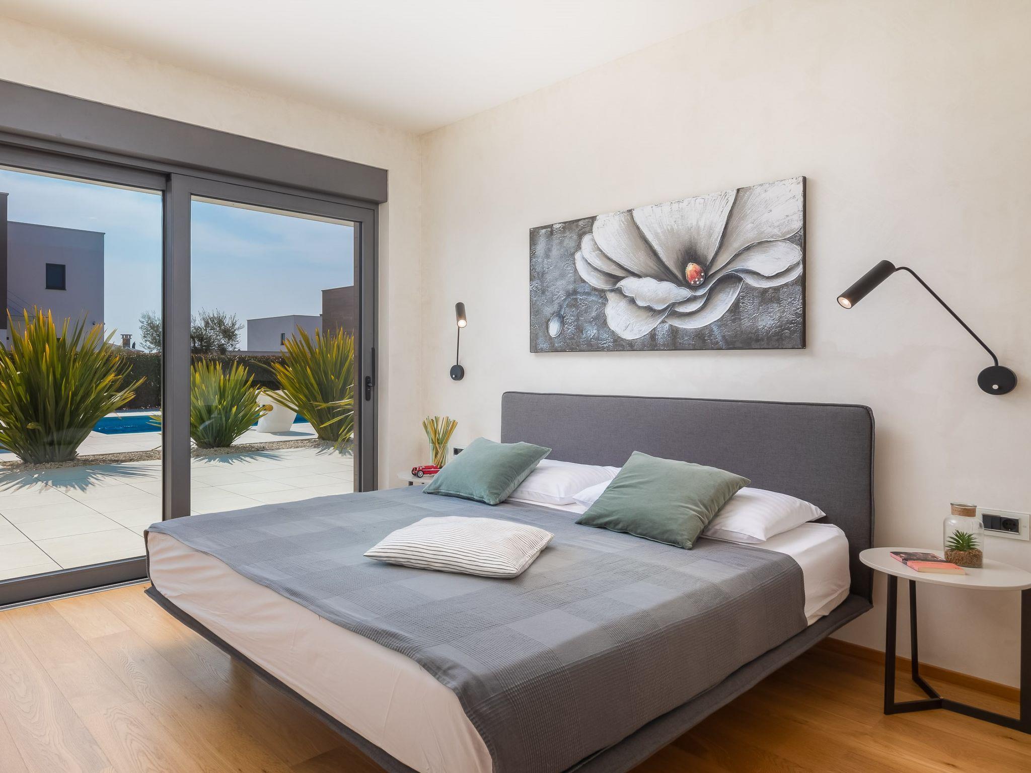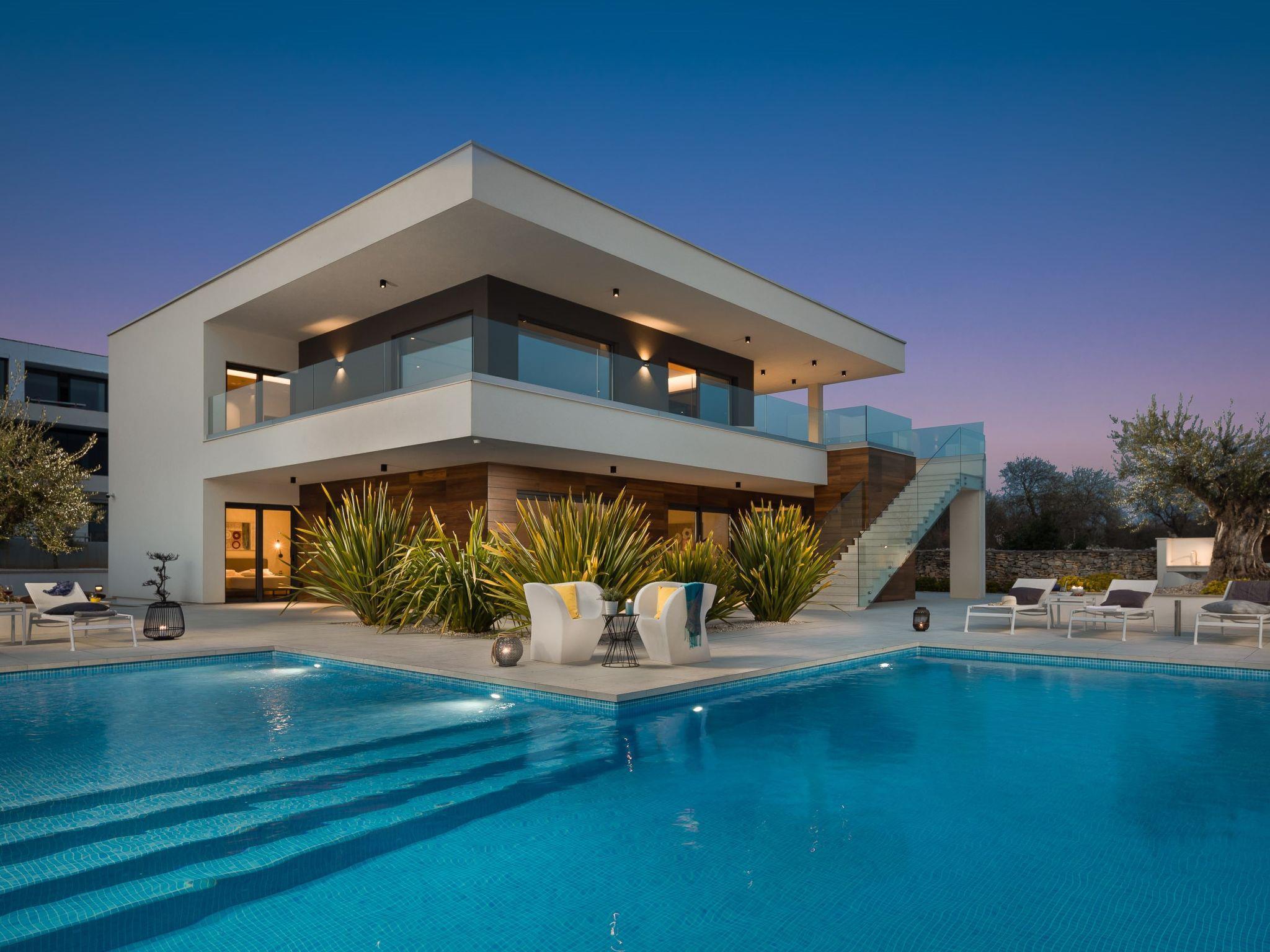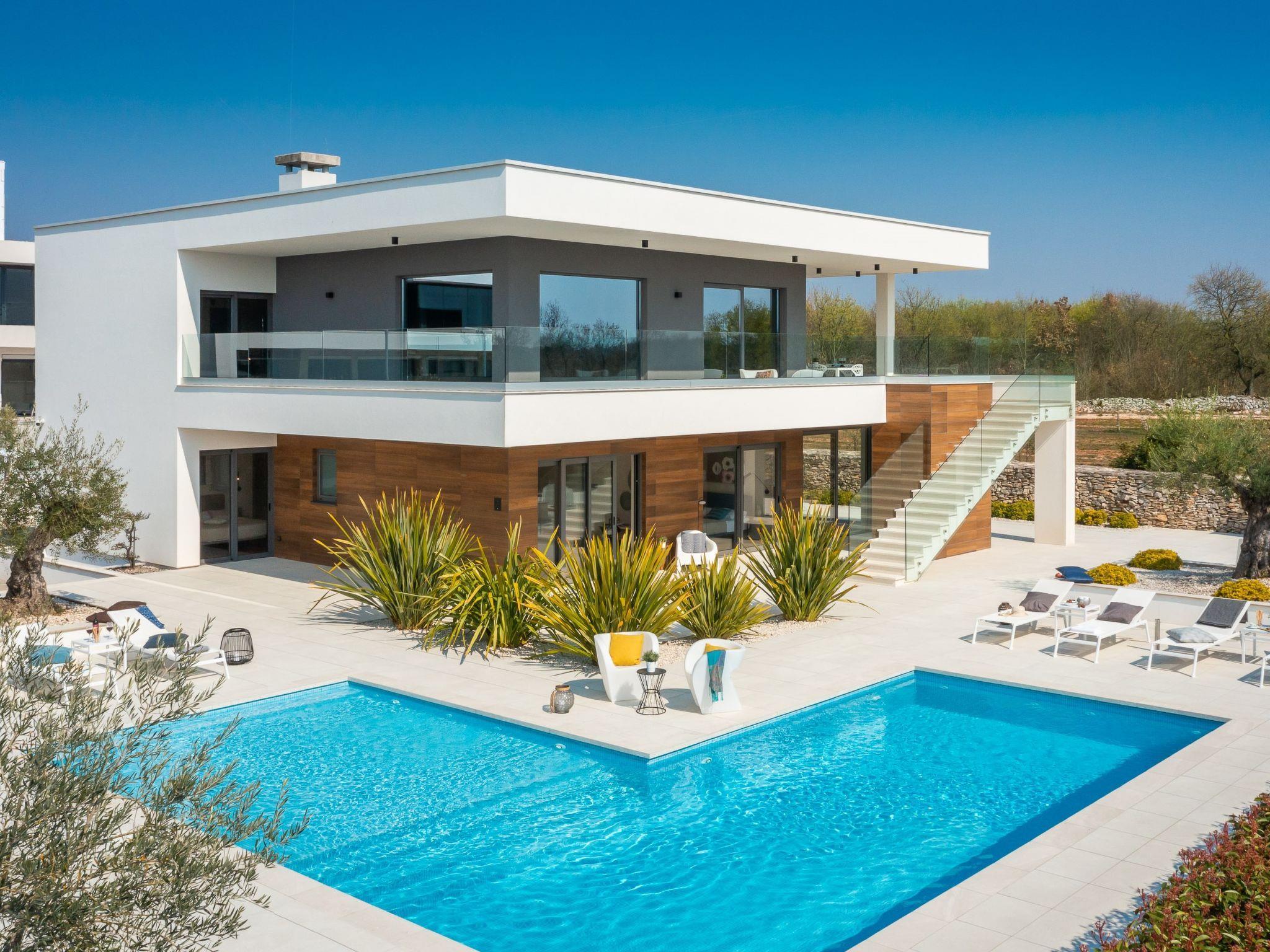 Vodnjan: Moderne Villa "Old Olive VII", auf 3 Stockwerken. Im Weiler Salvela, 1 km vom Zentrum von Vodnjan, 7 km vom Zentrum von Fažana, 10 km vom Zentrum von Pula, sonnige Lage, 7 km vom Meer. Zur Alleinbenutzung: Grundstück 1'069 m2 (eingezäunt), Garten mit Pflanzen und Bäumen, Schwimmbad (65 m2, 30 - 140 cm tief, saisonale Verfügbarkeit: 01.Mar. - 01.Nov.) mit Innentreppe. Ungleichmässige Schwimmbadform, Aussendusche, Grill. Im Hause: Internetzugang, Sauna, Tischtennis, Billard, Tischfussball, Trampolin, Waschmaschine, Wäschetrockner. Parkplatz (für 3 Autos) beim Haus auf dem Grundstück. Einkaufsgeschäft 1 km, Supermarkt 1 km, Restaurant 1.5 km, Bushaltestelle 1.4 km, Kieselstrand 7 km, Strandbad 7 km. Golfplatz 7 km, Tennis 2 km. Nahe gelegene Sehenswürdigkeiten: NP Brijuni 7 km, Amphitheater 11 km. Jugendgruppen nur auf Anfrage.