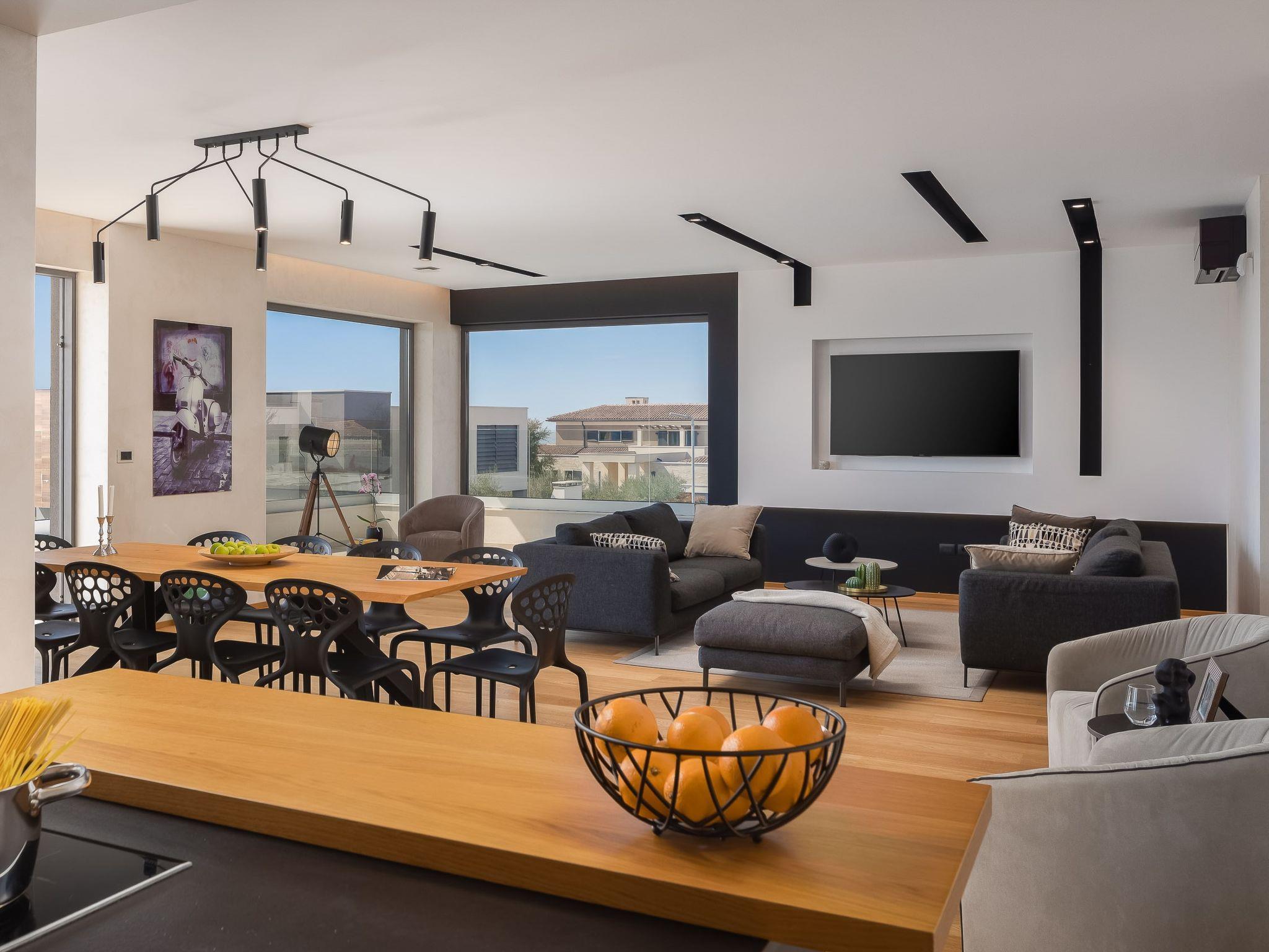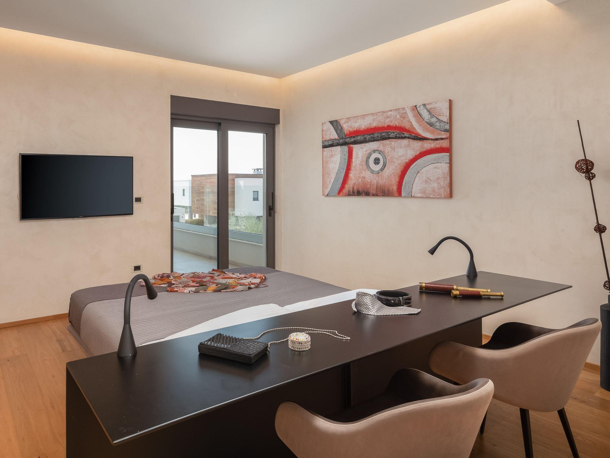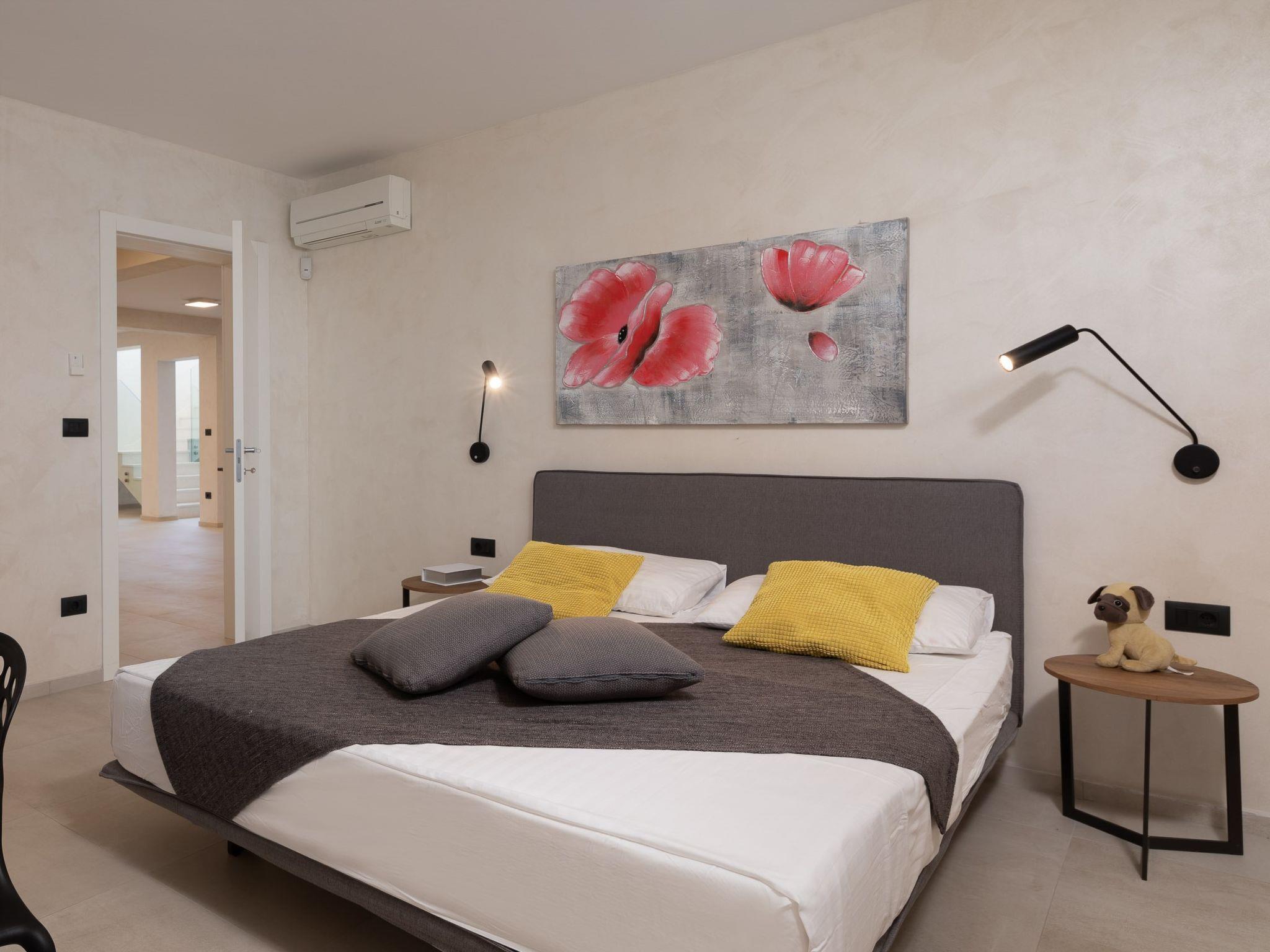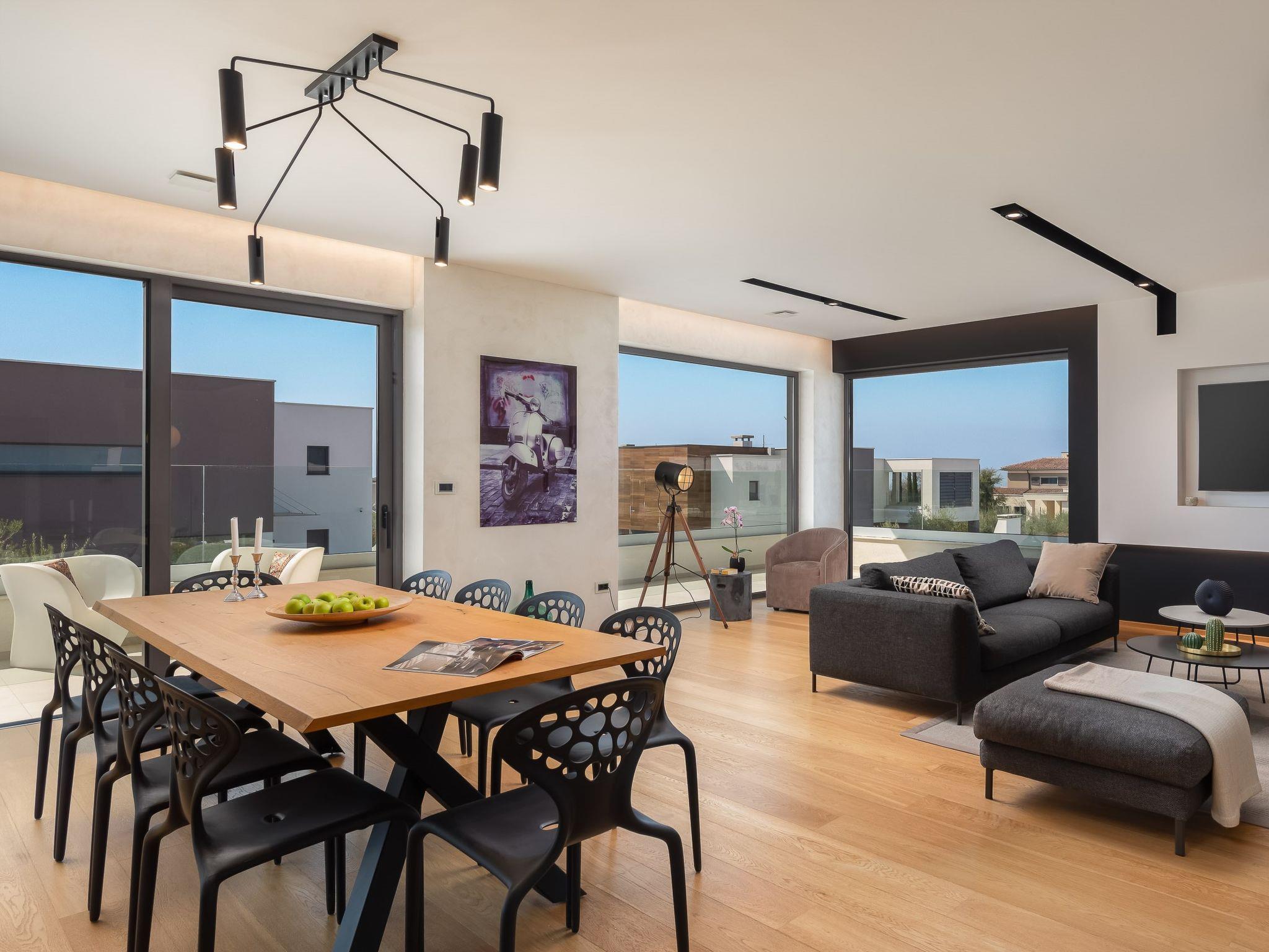Vodnjan: Moderne Villa "Old Olive VII", auf 3 Stockwerken. Im Weiler Salvela, 1 km vom Zentrum von Vodnjan, 7 km vom Zentrum von Fažana, 10 km vom Zentrum von Pula, sonnige Lage, 7 km vom Meer. Zur Alleinbenutzung: Grundstück 1'069 m2 (eingezäunt), Garten mit Pflanzen und Bäumen, Schwimmbad (65 m2, 30 - 140 cm tief, saisonale Verfügbarkeit: 01.Mar. - 01.Nov.) mit Innentreppe. Ungleichmässige Schwimmbadform, Aussendusche, Grill. Im Hause: Internetzugang, Sauna, Tischtennis, Billard, Tischfussball, Trampolin, Waschmaschine, Wäschetrockner. Parkplatz (für 3 Autos) beim Haus auf dem Grundstück. Einkaufsgeschäft 1 km, Supermarkt 1 km, Restaurant 1.5 km, Bushaltestelle 1.4 km, Kieselstrand 7 km, Strandbad 7 km. Golfplatz 7 km, Tennis 2 km. Nahe gelegene Sehenswürdigkeiten: NP Brijuni 7 km, Amphitheater 11 km. Jugendgruppen nur auf Anfrage.