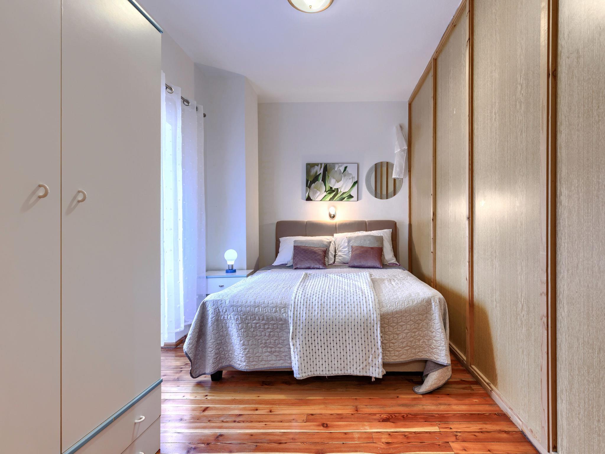 5-Zimmer-Doppelhaushälfte 140 m2 auf 3 Stockwerken. Wohn-/Esszimmer mit offenem Kamin (nur Deko), Sat-TV (Flachbildschirm). Ausgang zum Garten, zur Terrasse. Offene Küche (Backofen, Geschirrspüler, 4 Flammen, Toaster, Wasserkocher, Mikrowelle, Tiefkühler, elektrische Kaffeemaschine). Dusche/WC. Obergeschoss: (Aussentreppe) Eingang mit Klimaanlage. 2 Zimmer, jedes Zimmer mit 1 franz. Bett (160 cm, Länge 200 cm). Bad/Bidet/WC. 2. Obergeschoss: (Wendeltreppe) Eingang mit Klimaanlage. 2 Zimmer, jedes Zimmer mit 1 franz. Bett (160 cm, Länge 200 cm). Dusche/WC. Keine Heizmöglichkeit. Terrasse 15 m2, überdacht. Terrassenmöbel, Liegestühle. Zur Verfügung: Internet (WLAN, gratis). Bitte beachten: 2 Haustiere/Hunde erlaubt. Feuerlöscher.