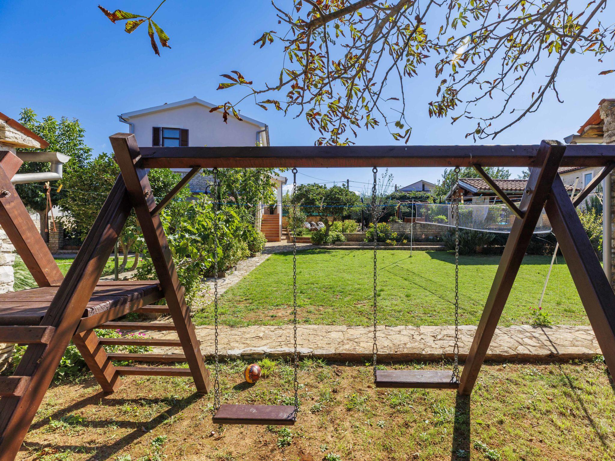 Doppelhaus "Mauro", auf 3 Stockwerken. Im Weiler Kacana, 3 km vom Zentrum von Vodnjan, 10 km vom Zentrum von Pula, 8.5 km vom Meer. Zur Alleinbenutzung: Grundstück 1'500 m2 (eingezäunt), Garten mit Pflanzen und Bäumen, Schwimmbad (32 m2, 140 cm tief, saisonale Verfügbarkeit: 01.Mai. - 15.Okt.). Aussendusche, Tischtennis, Badminton, Terrasse (20 m2), Gartenmöbel, Grillhaus (Schaukel), Poolpflege durch den Besitzer/Gärtner. Im Hause: Internetzugang, Billard, Tischfussball, Waschmaschine. Parkplatz (für 3 Autos) beim Haus auf dem Grundstück. Einkaufsgeschäft 3 km, Einkaufszentrum 4 km, Restaurant 3 km, Café 3 km, Bushaltestelle 2.5 km, Kieselstrand 8.5 km.