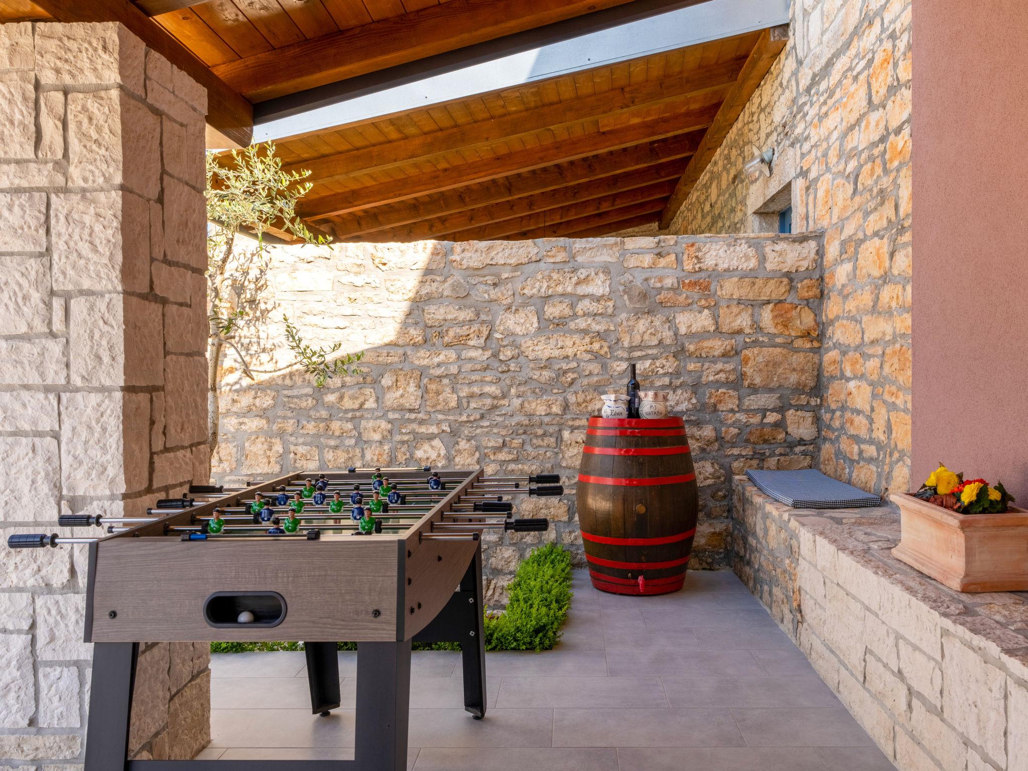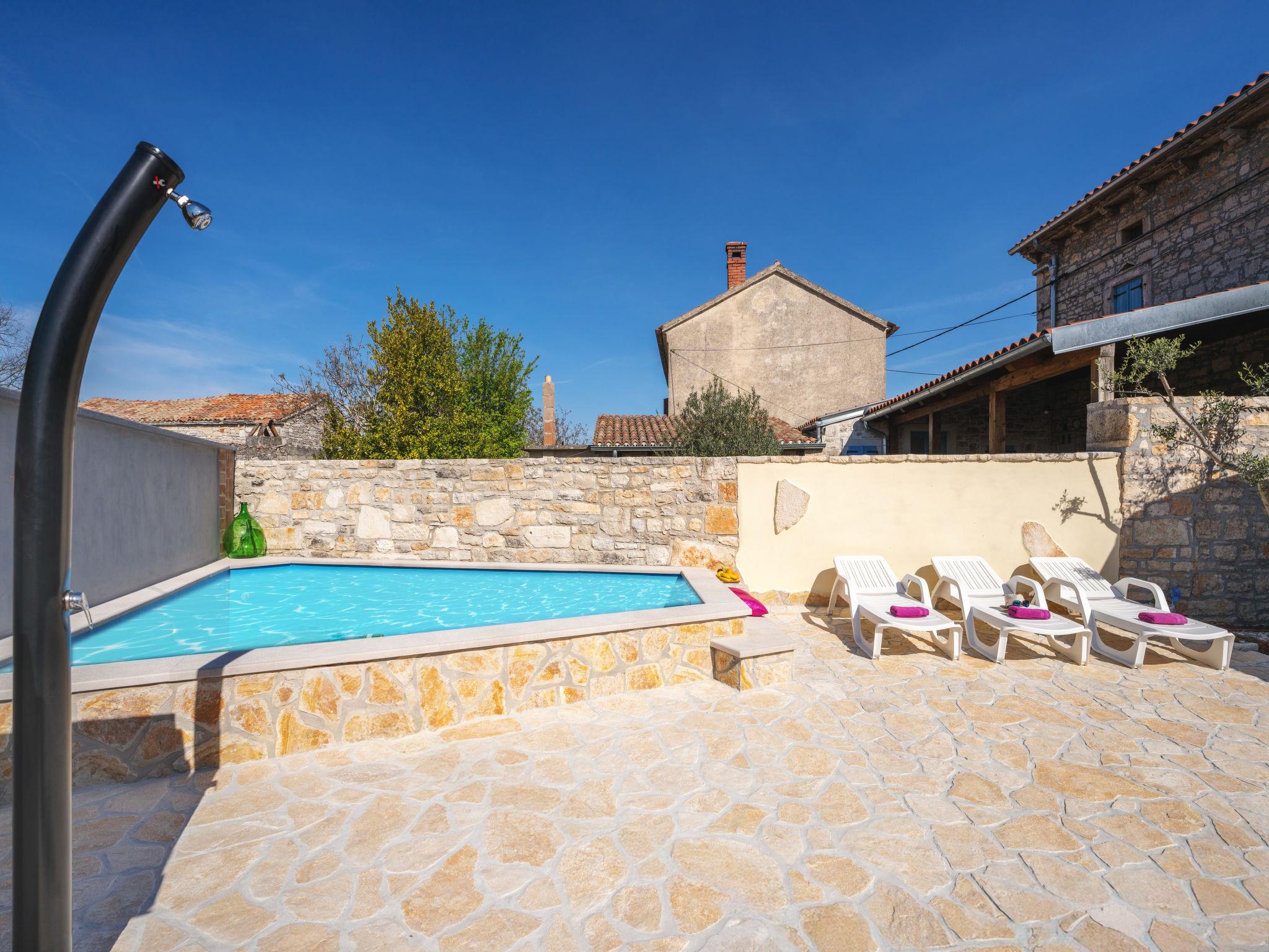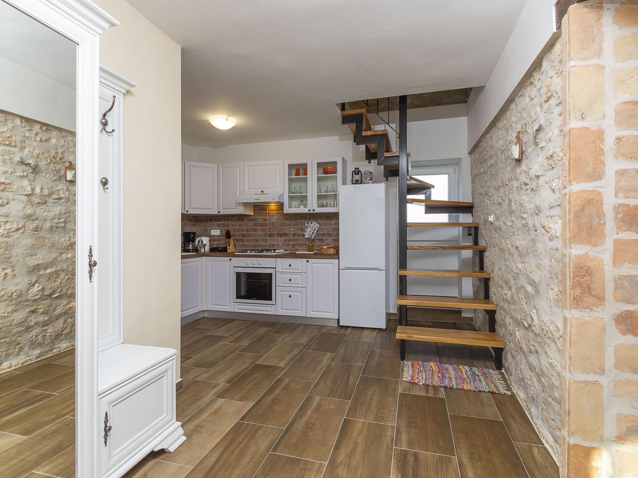Butkovici 9 km von Vodnjan: Reihenhaus "Butkovic", auf 2 Stockwerken. 15 km vom Meer. Zur Alleinbenutzung: Grundstück 120 m2 (eingezäunt), Schwimmbad (18 m2, 140 cm tief, saisonale Verfügbarkeit: 01.Mai. - 30.Sep.) mit Innentreppe. Ungleichmässige Schwimmbadform, Aussendusche, Gartenmöbel, Grill. Im Hause: Internetzugang, Tischfussball, Waschmaschine. Parkplatz beim Haus auf dem Grundstück. Einkaufsgeschäft 9 km, Supermarkt 9 km, Restaurant 3 km, Bushaltestelle 3 km, Kieselstrand 15 km, Felsstrand 15 km. Wanderwege ab Haus, Radweg 100 m.