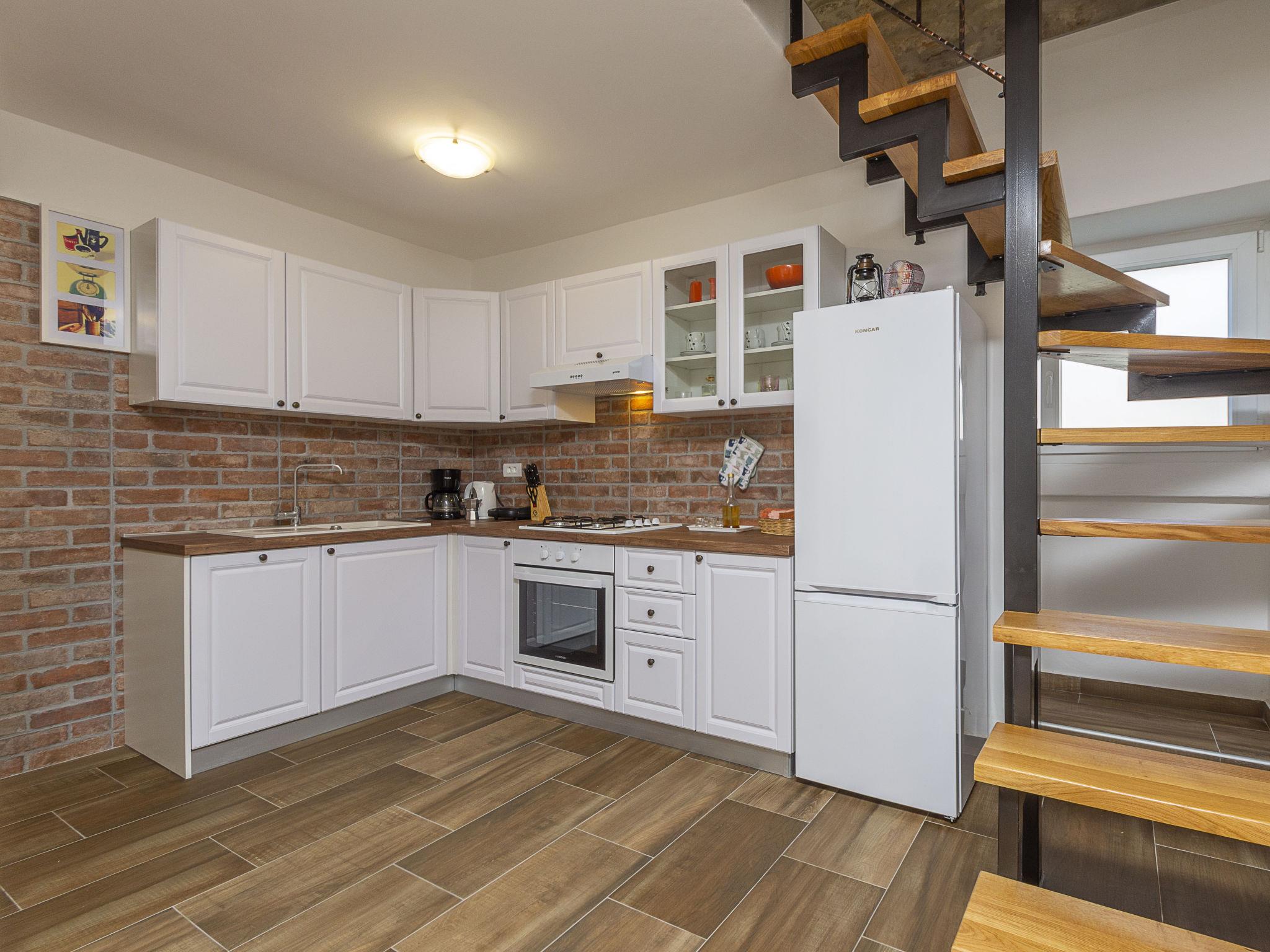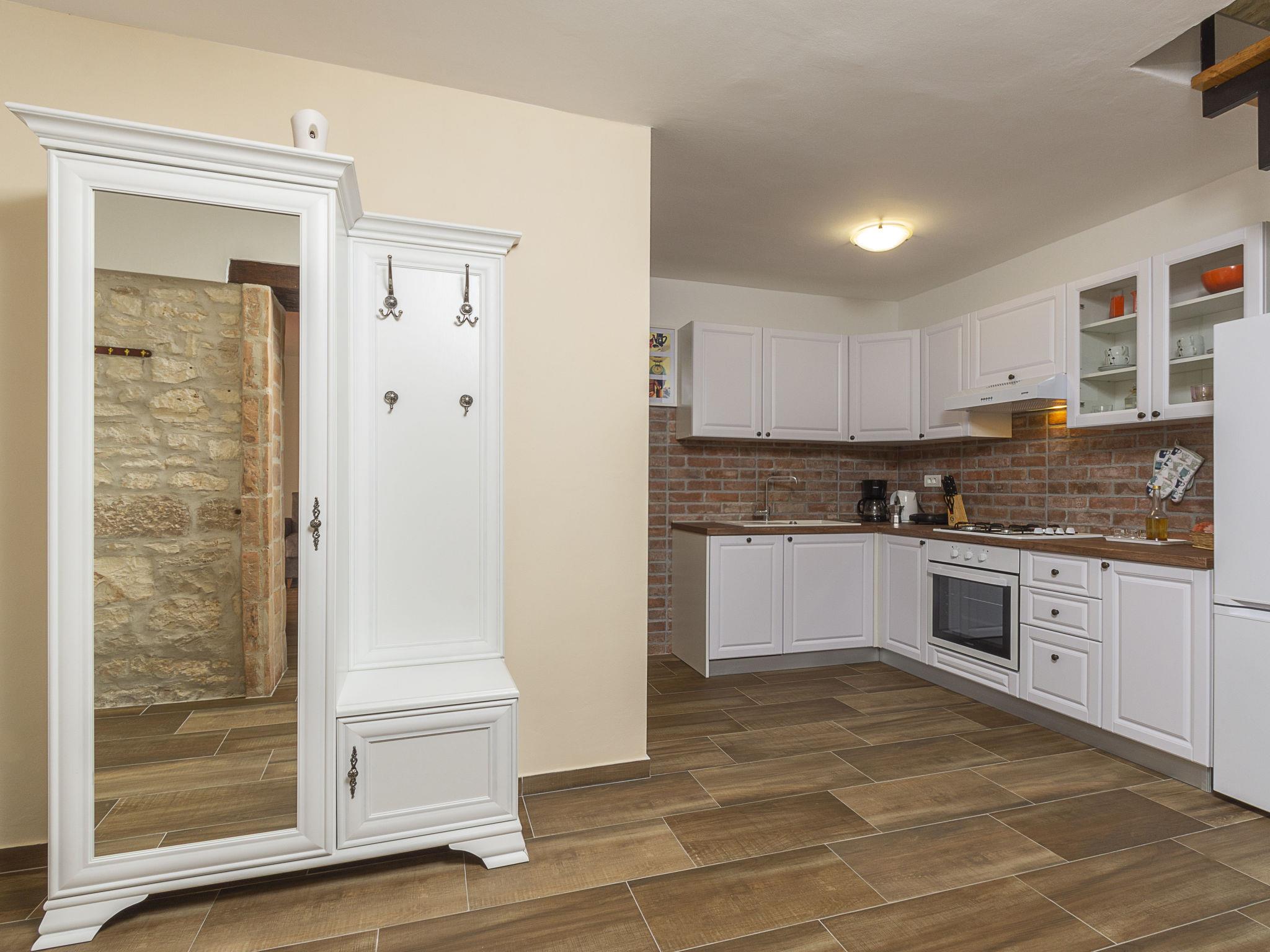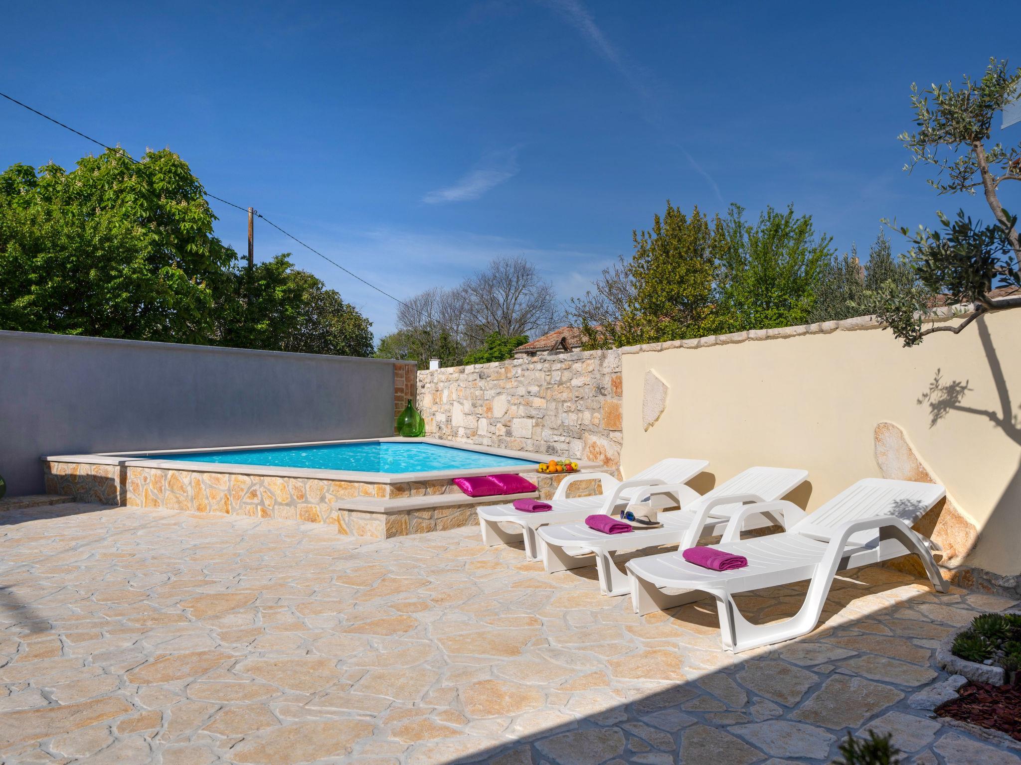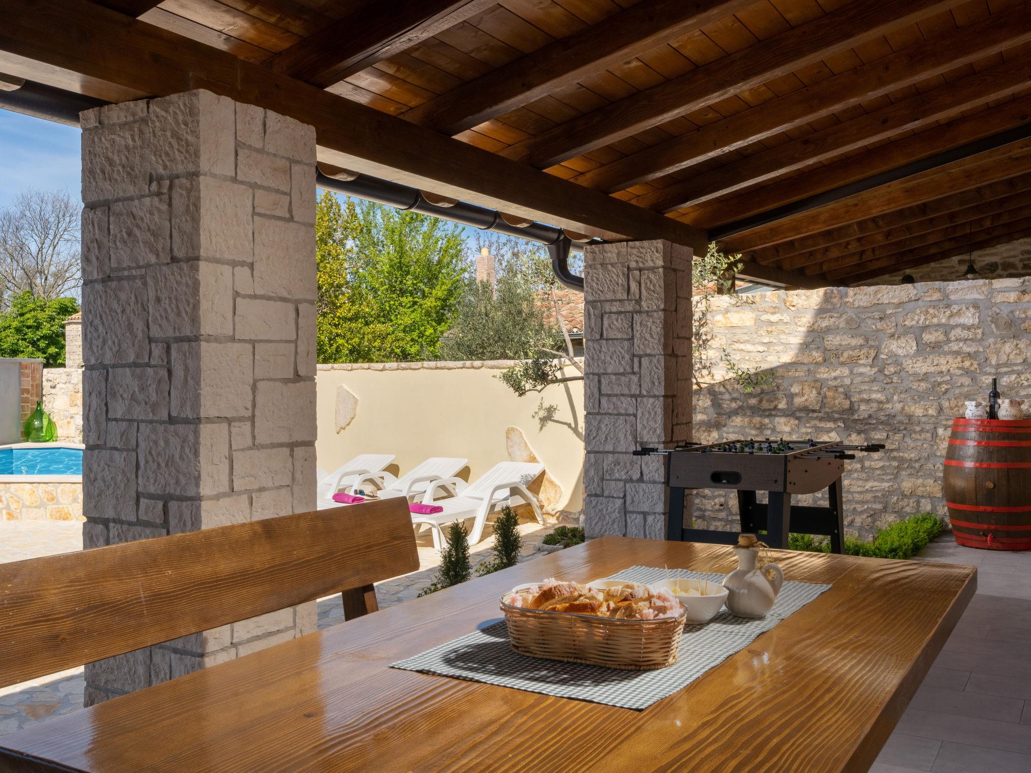 Butkovici 9 km von Vodnjan: Reihenhaus "Butkovic", auf 2 Stockwerken. 15 km vom Meer. Zur Alleinbenutzung: Grundstück 120 m2 (eingezäunt), Schwimmbad (18 m2, 140 cm tief, saisonale Verfügbarkeit: 01.Mai. - 30.Sep.) mit Innentreppe. Ungleichmässige Schwimmbadform, Aussendusche, Gartenmöbel, Grill. Im Hause: Internetzugang, Tischfussball, Waschmaschine. Parkplatz beim Haus auf dem Grundstück. Einkaufsgeschäft 9 km, Supermarkt 9 km, Restaurant 3 km, Bushaltestelle 3 km, Kieselstrand 15 km, Felsstrand 15 km. Wanderwege ab Haus, Radweg 100 m.
