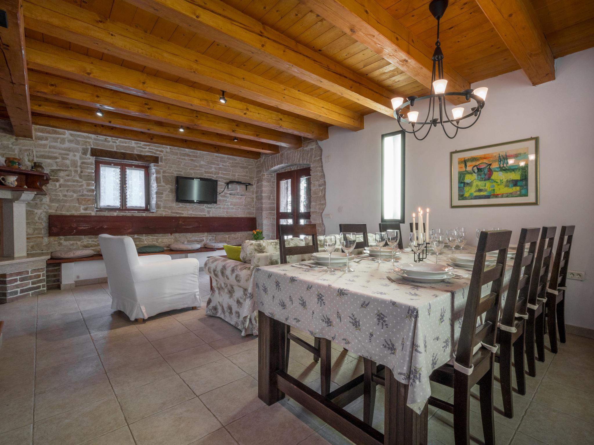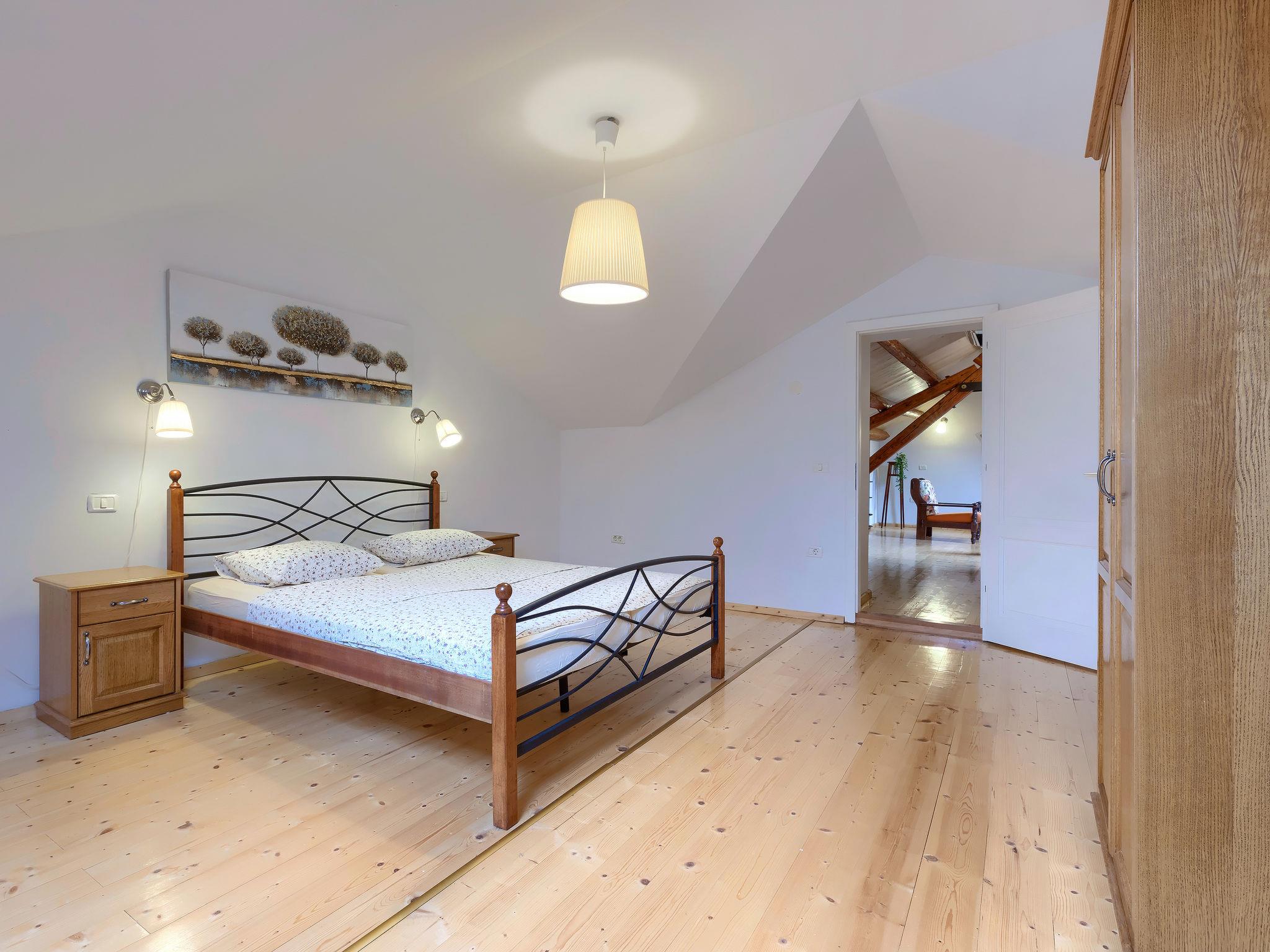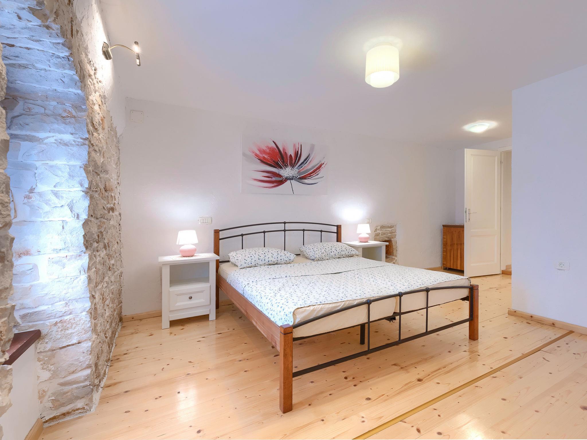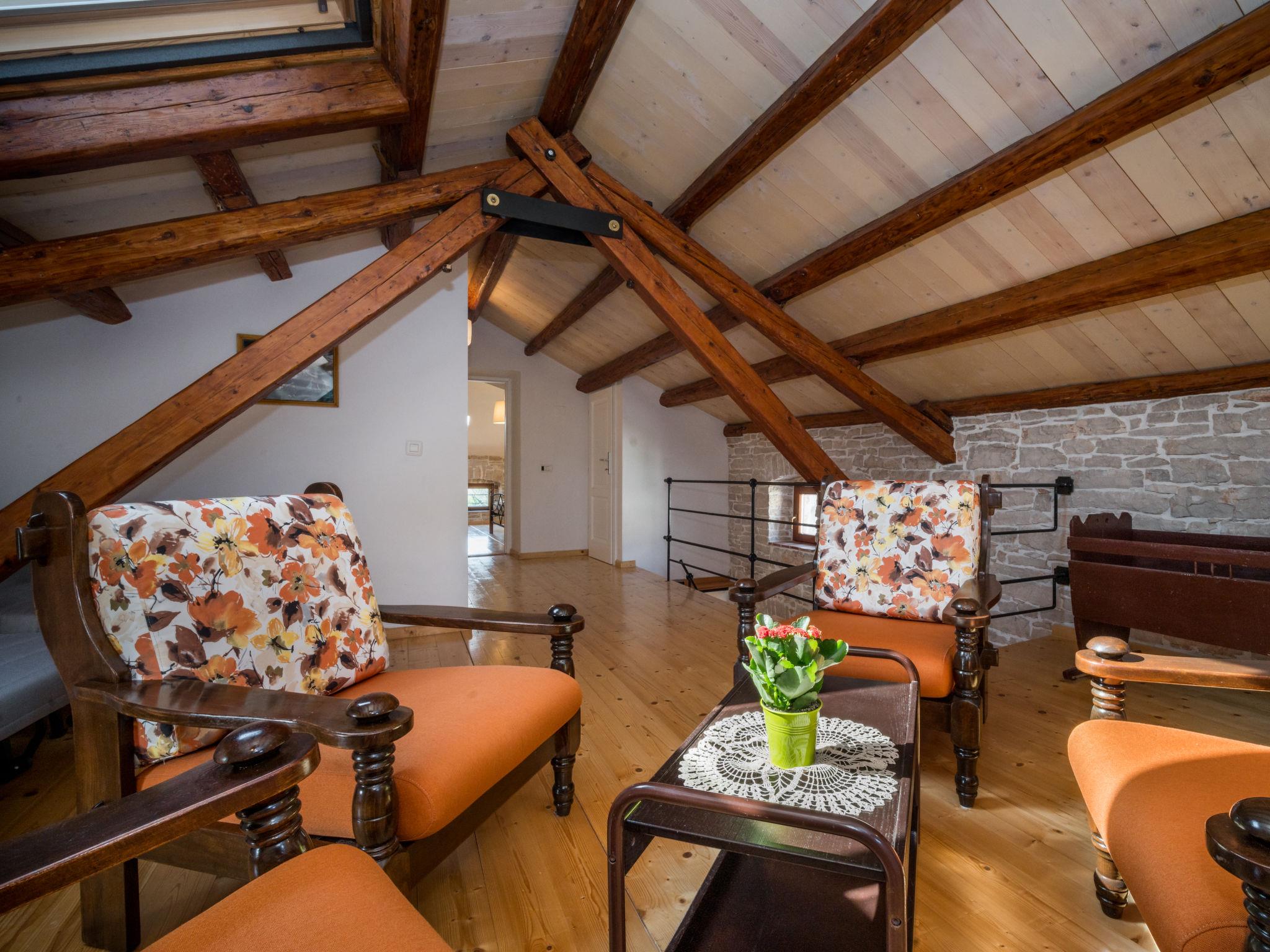 6-Zimmer-Doppelhaushälfte 160 m2 auf 3 Stockwerken. Rustikal und geschmackvoll eingerichtet: grosses Wohn-/Esszimmer 50 m2 mit offenem Kamin und Sat-TV (Flachbildschirm). Offene Küche (Backofen, Geschirrspüler, 4 Glaskeramikplatten, Toaster, Wasserkocher, Mikrowelle, Tiefkühler, elektrische Kaffeemaschine). Dusche/WC. Obergeschoss: 1 Zimmer mit 1 Doppelbett (2 x 80 cm, Länge 200 cm). Ausgang zur Terrasse. 1 Zimmer mit 1 Doppelbett (2 x 80 cm, Länge 200 cm), Dusche/WC. 1 Zimmer mit 2 Betten (90 cm, Länge 200 cm). Dusche/WC. Dachgeschoss: Wohnzimmer abgeschrägtes, Deckenhöhe 130 - 250 cm mit Klimaanlage. 1 abgeschrägtes Zimmer, Deckenhöhe 130 - 250 cm mit Dachfenster mit 1 Doppelbett (2 x 80 cm, Länge 200 cm). Dusche/WC. Terrasse 10 m2. Liegestühle. Sicht auf das Schwimmbad und die Landschaft. Zur Verfügung: Waschmaschine. Internet (Wireless LAN, gratis). KLASA:UP/I-335-03/13-01/1109 URBROJ; 2163-03-02/13