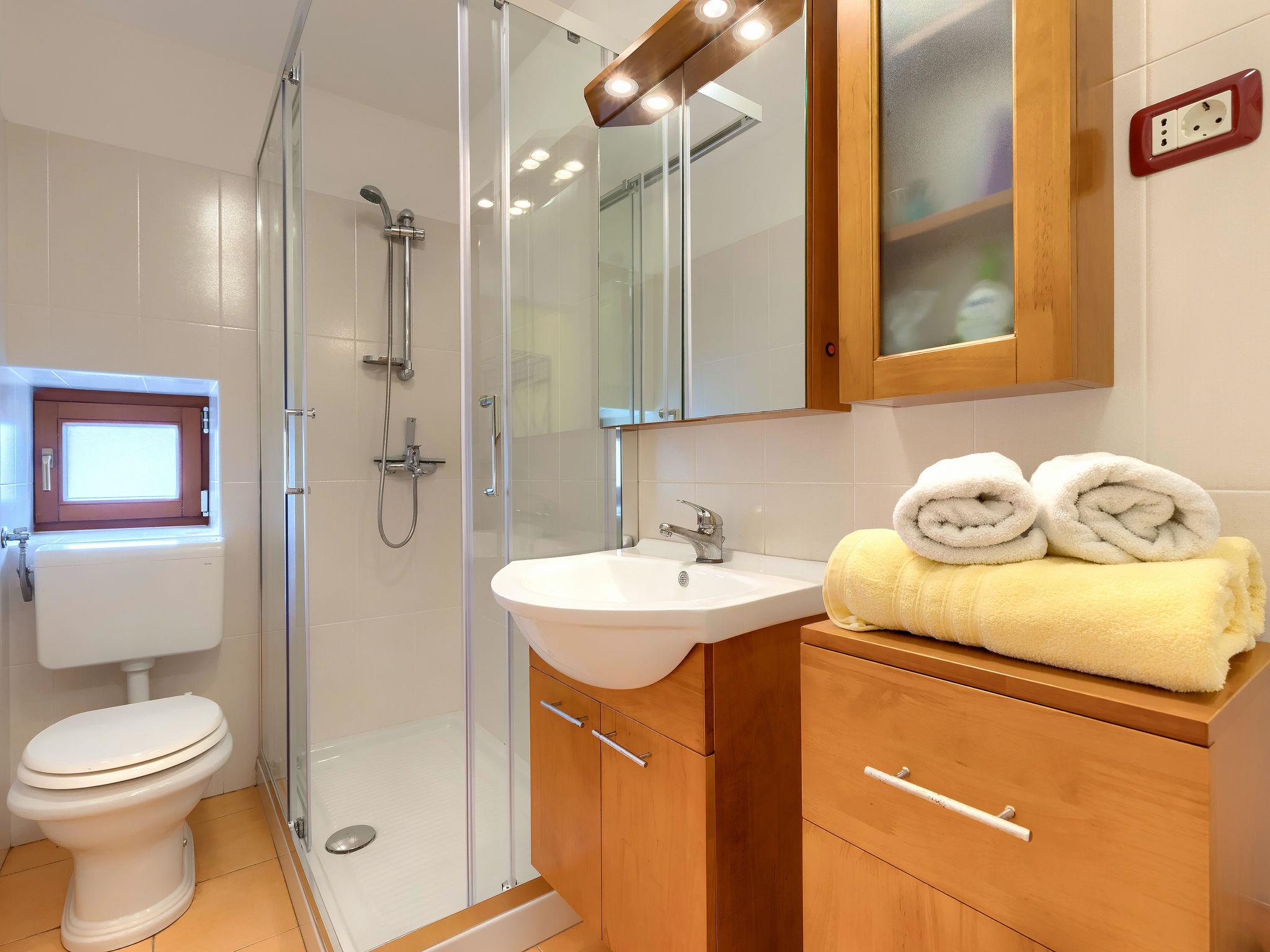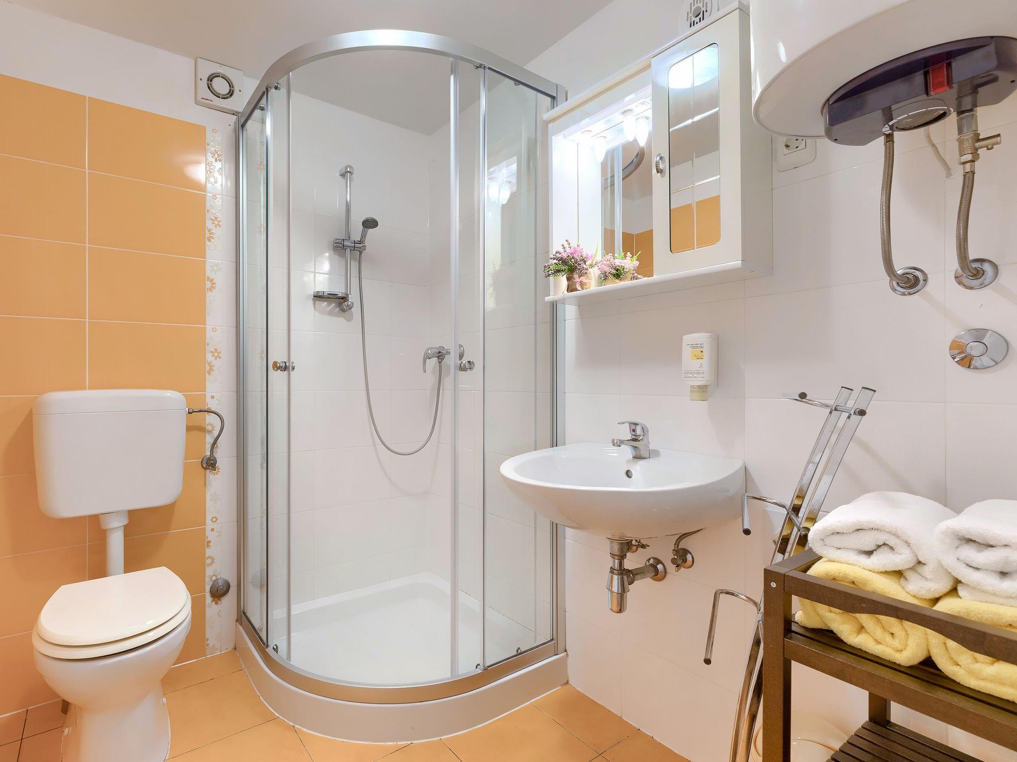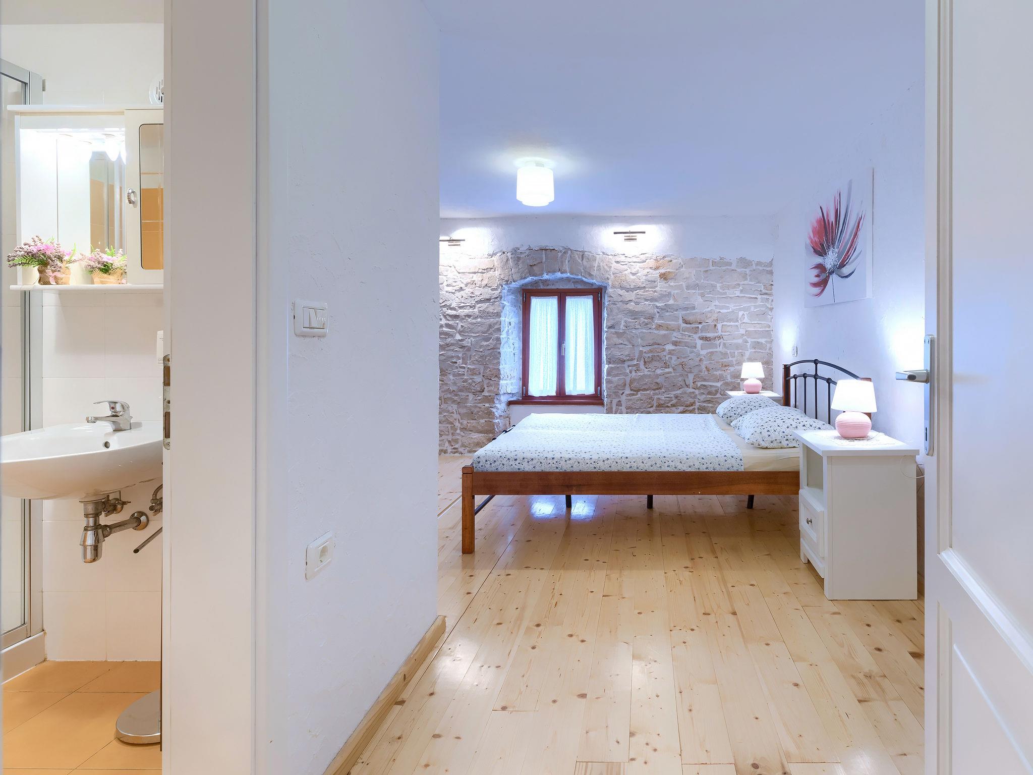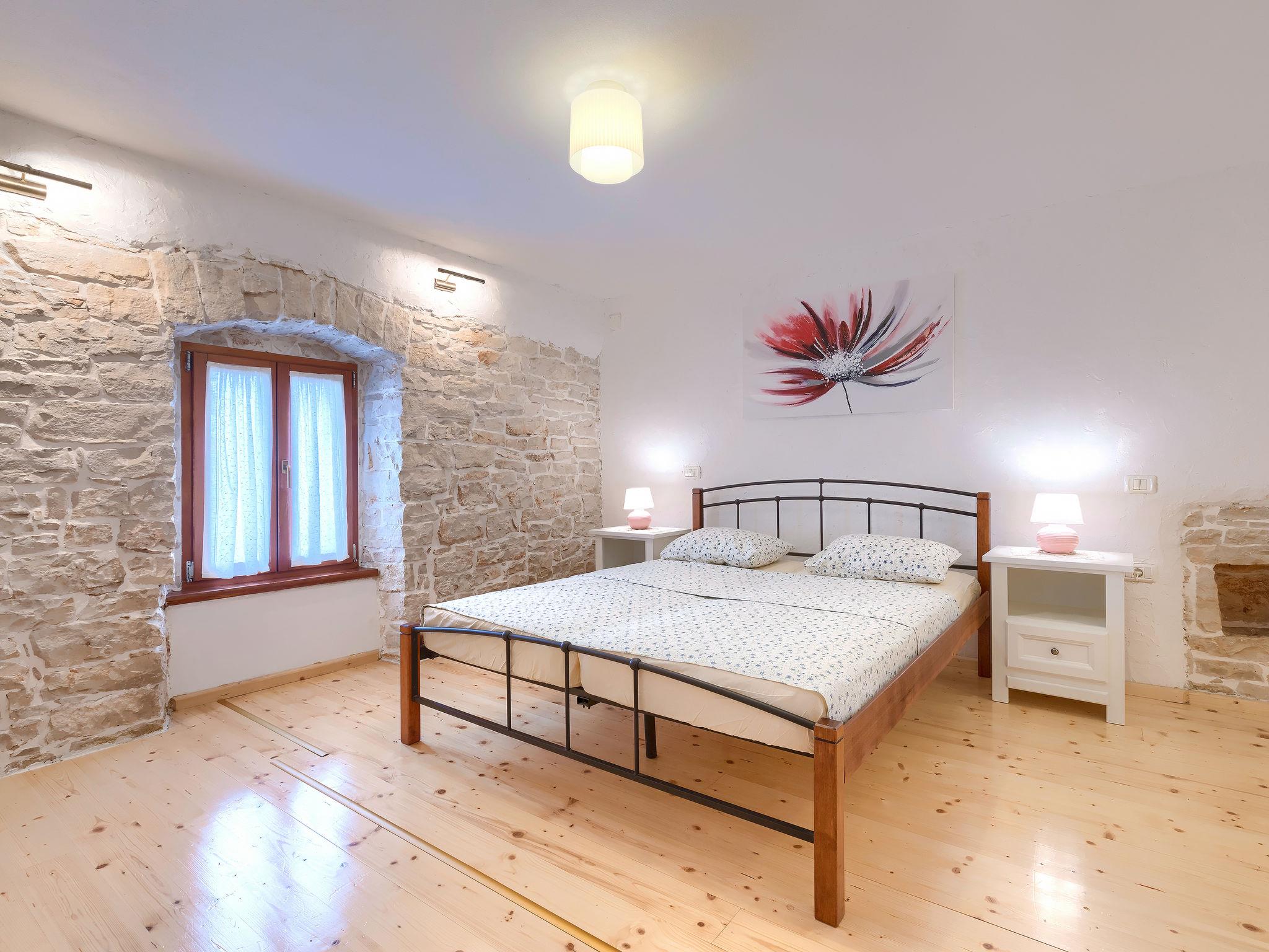 6-Zimmer-Doppelhaushälfte 160 m2 auf 3 Stockwerken. Rustikal und geschmackvoll eingerichtet: grosses Wohn-/Esszimmer 50 m2 mit offenem Kamin und Sat-TV (Flachbildschirm). Offene Küche (Backofen, Geschirrspüler, 4 Glaskeramikplatten, Toaster, Wasserkocher, Mikrowelle, Tiefkühler, elektrische Kaffeemaschine). Dusche/WC. Obergeschoss: 1 Zimmer mit 1 Doppelbett (2 x 80 cm, Länge 200 cm). Ausgang zur Terrasse. 1 Zimmer mit 1 Doppelbett (2 x 80 cm, Länge 200 cm), Dusche/WC. 1 Zimmer mit 2 Betten (90 cm, Länge 200 cm). Dusche/WC. Dachgeschoss: Wohnzimmer abgeschrägtes, Deckenhöhe 130 - 250 cm mit Klimaanlage. 1 abgeschrägtes Zimmer, Deckenhöhe 130 - 250 cm mit Dachfenster mit 1 Doppelbett (2 x 80 cm, Länge 200 cm). Dusche/WC. Terrasse 10 m2. Liegestühle. Sicht auf das Schwimmbad und die Landschaft. Zur Verfügung: Waschmaschine. Internet (Wireless LAN, gratis). KLASA:UP/I-335-03/13-01/1109 URBROJ; 2163-03-02/13