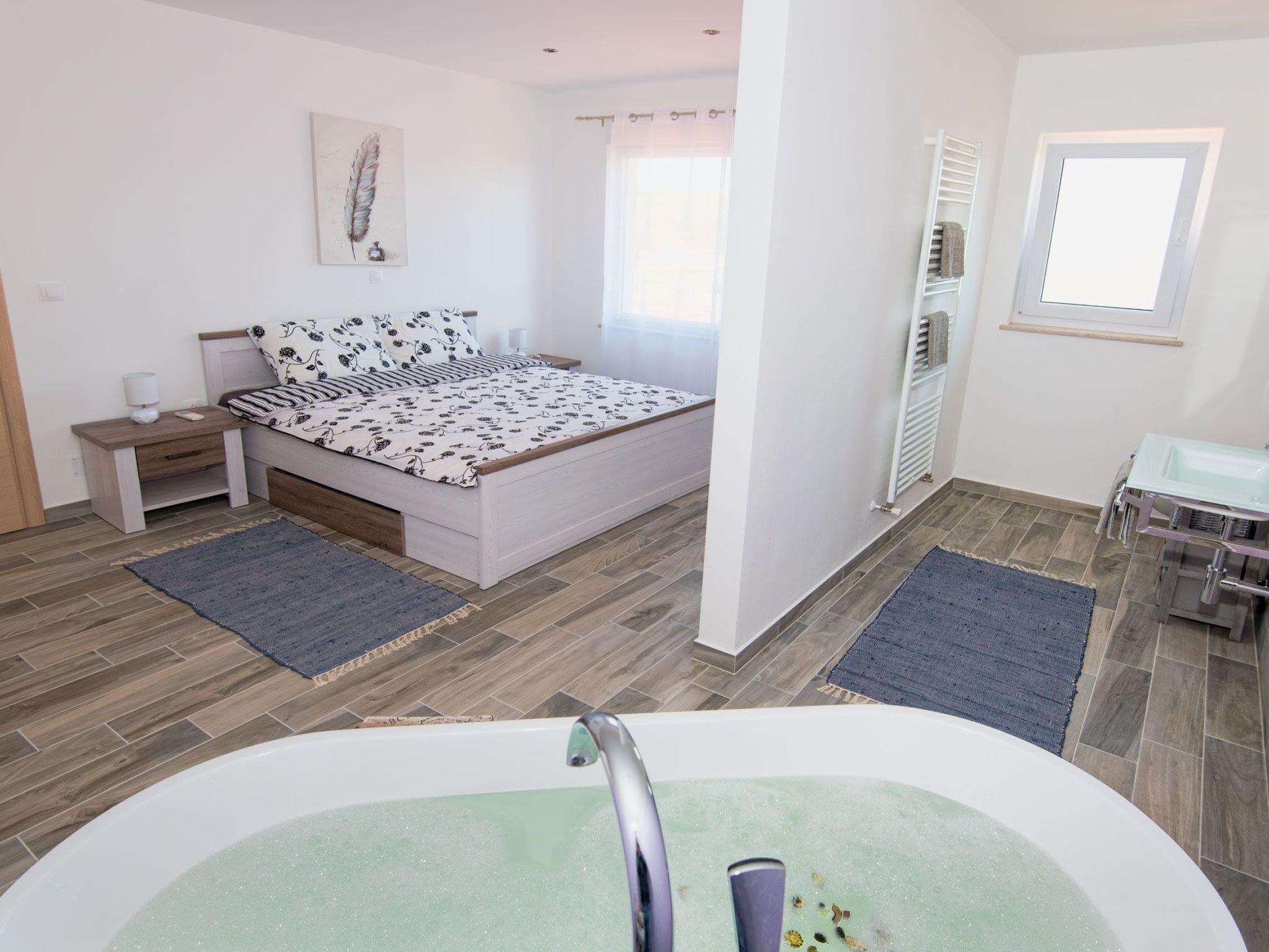 Besonders zu erwähnen ist der tolle Wellness-Bereich mit einer Sauna und einem Whirlpool/Hot Tub, der in einem nur wenige Meter entfernten Nebengebäude liegt.