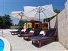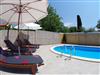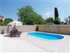 Im Inneren bietet das Haus eine gemütliche und funktionelle Wohnfläche von 70 m2. Das Herzstück des Hauses ist das Wohnzimmer, das sich nahtlos in die offene Küche einfügt und den Gästen ein geselliges Ambiente bietet. Für Komfort sorgen Annehmlichkeiten wie ein Kamin, Satellitenfernsehen, ein Esstisch und eine Klimaanlage. Die Küche ist mit einem 4-Platten-Herd, einem Backofen, einer Mikrowelle, einem Geschirrspüler, einer Kaffeemaschine, einem Kühlschrank mit Gefrierfach und einer Dunstabzugshaube komplett ausgestattet und lässt keine kulinarischen Wünsche offen. Zwei einladende Schlafzimmer bieten direkten Zugang zum Poolbereich und versprechen erholsame Nächte. Das erste Schlafzimmer ist mit einem bequemen Doppelbett ausgestattet, während das zweite Schlafzimmer zwei Einzelbetten hat. Ein gut ausgestattetes Badezimmer mit Dusche, WC, Waschbecken und Waschmaschine sorgt für zusätzlichen Komfort.