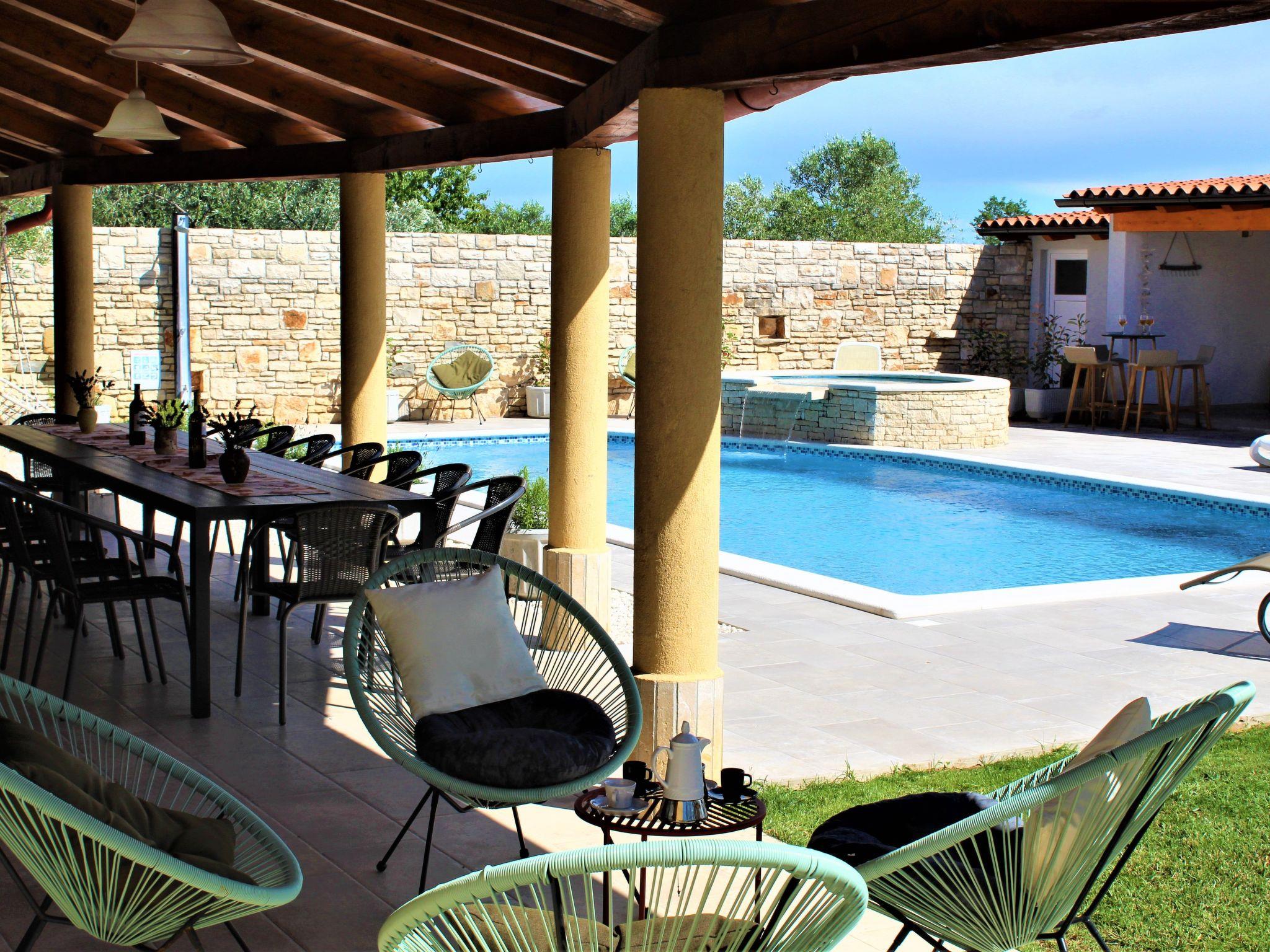 Die Entfernung vom Flughafen Pula ist nur etwas über 8 Kilometer und vom nächsten Strand weniger als 4 Minuten. Die Stadt hat ein Geschäft und ein Restaurant nur einen Spaziergang entfernt. Die Villa ist von viel Grün, Blumen und berühmten istrischen Olivenbäumen umgeben. Es bietet alles für einen Urlaub: Entspannung für die Eltern, Spaß für ihre Kinder. Neben dem angenehmen Ambiente wird das Erlebnis mit einem unwiderstehlichen Blick auf den Brijuni-Archipel abgerundet.Für große Familien oder Gruppen, pool 50m2, Whirlpool, 4 km nächster Strand, Meerblick, ruhige Lage, beheizter Pool, Gruppen willkommen!