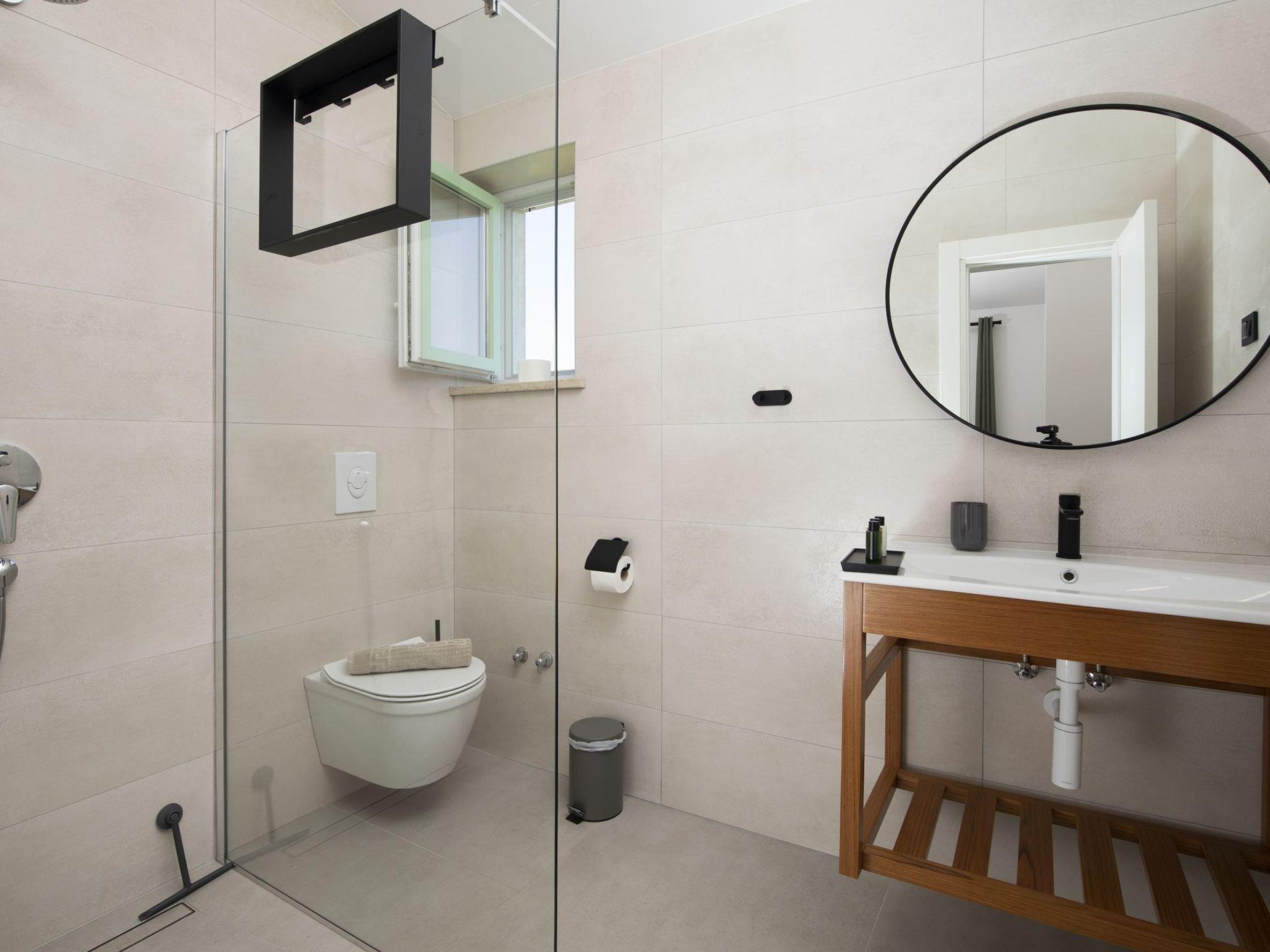 Im ersten Stock gibt es einen Balkon mit wunderschönem Meerblick und zwei Schlafzimmer mit eigenem Bad.