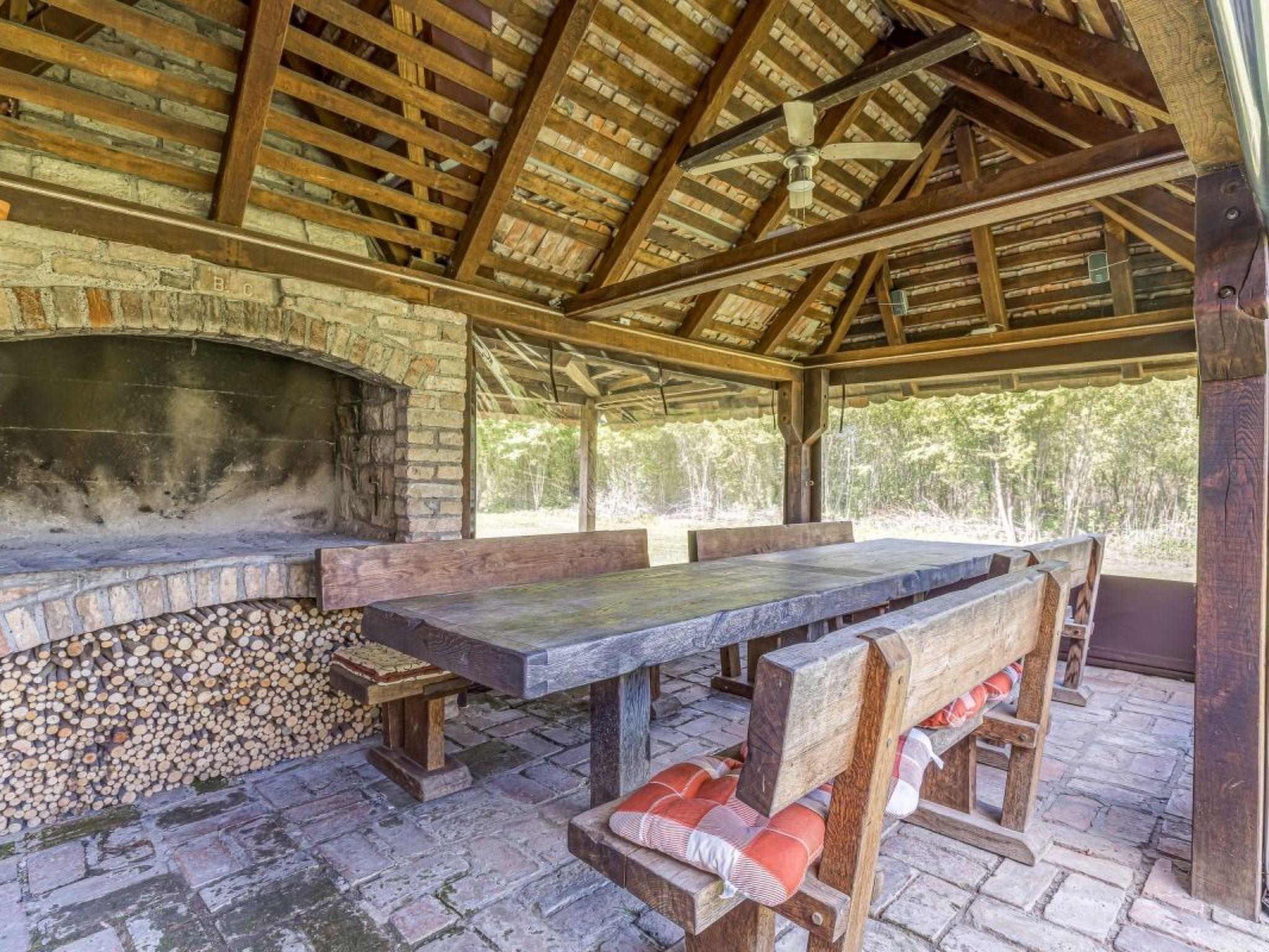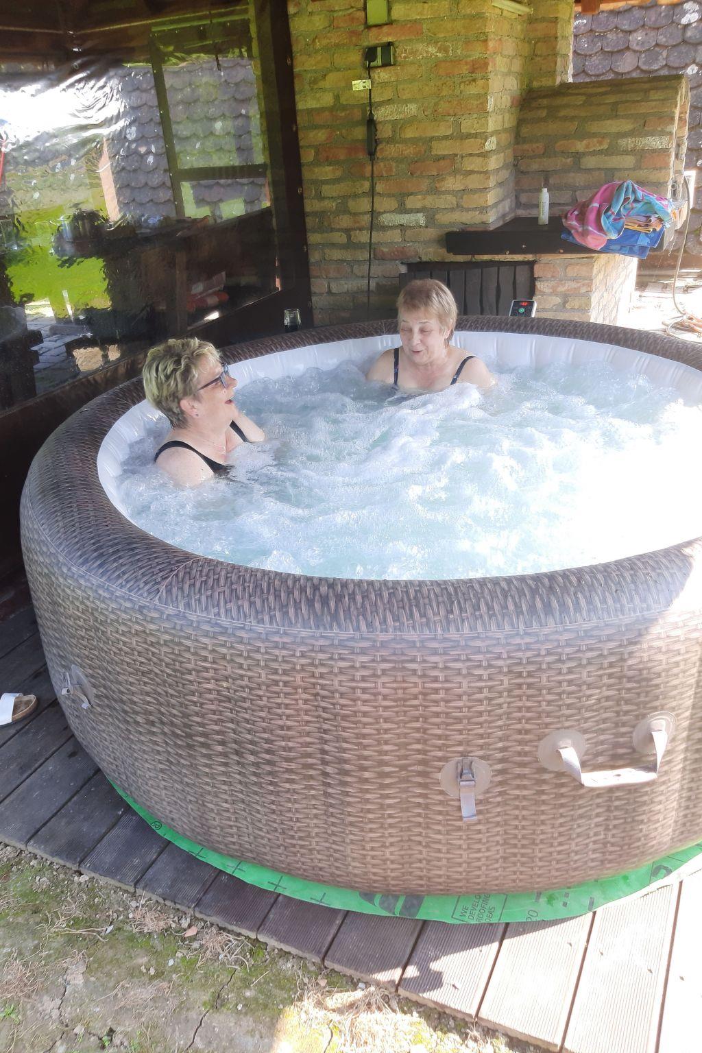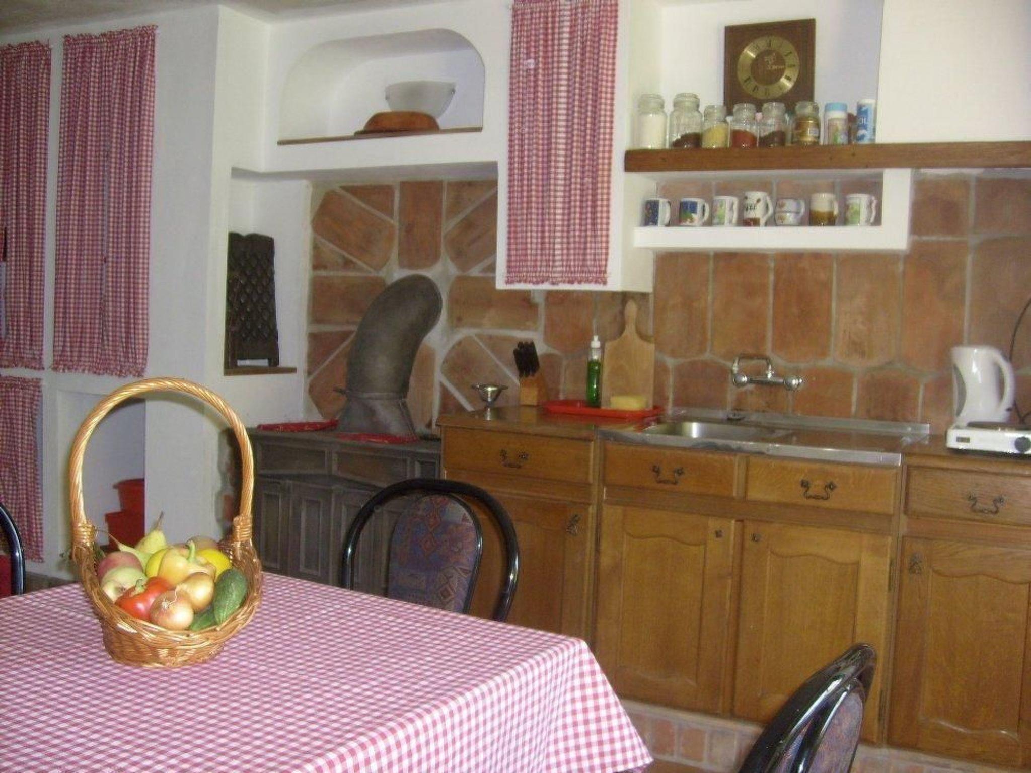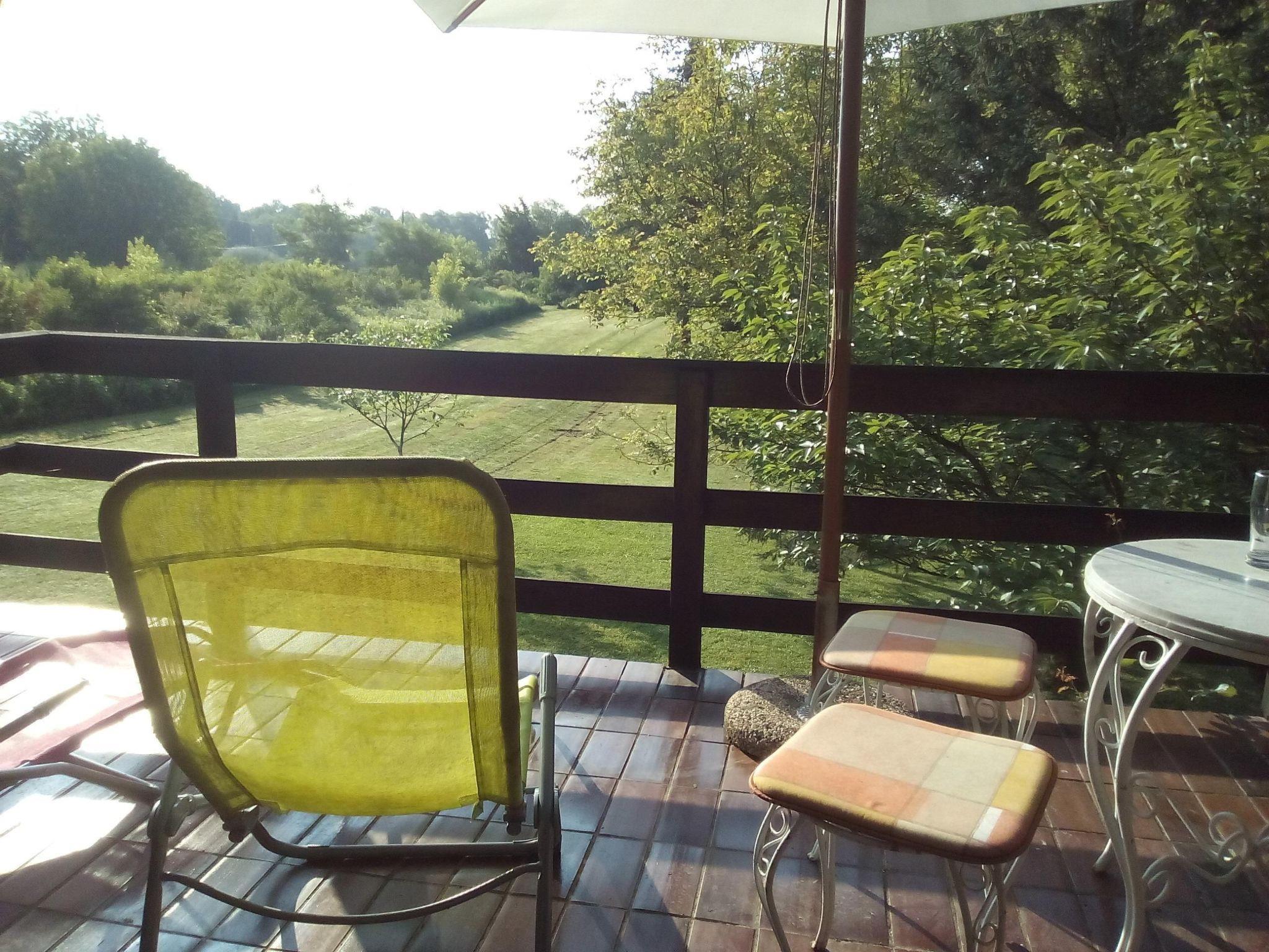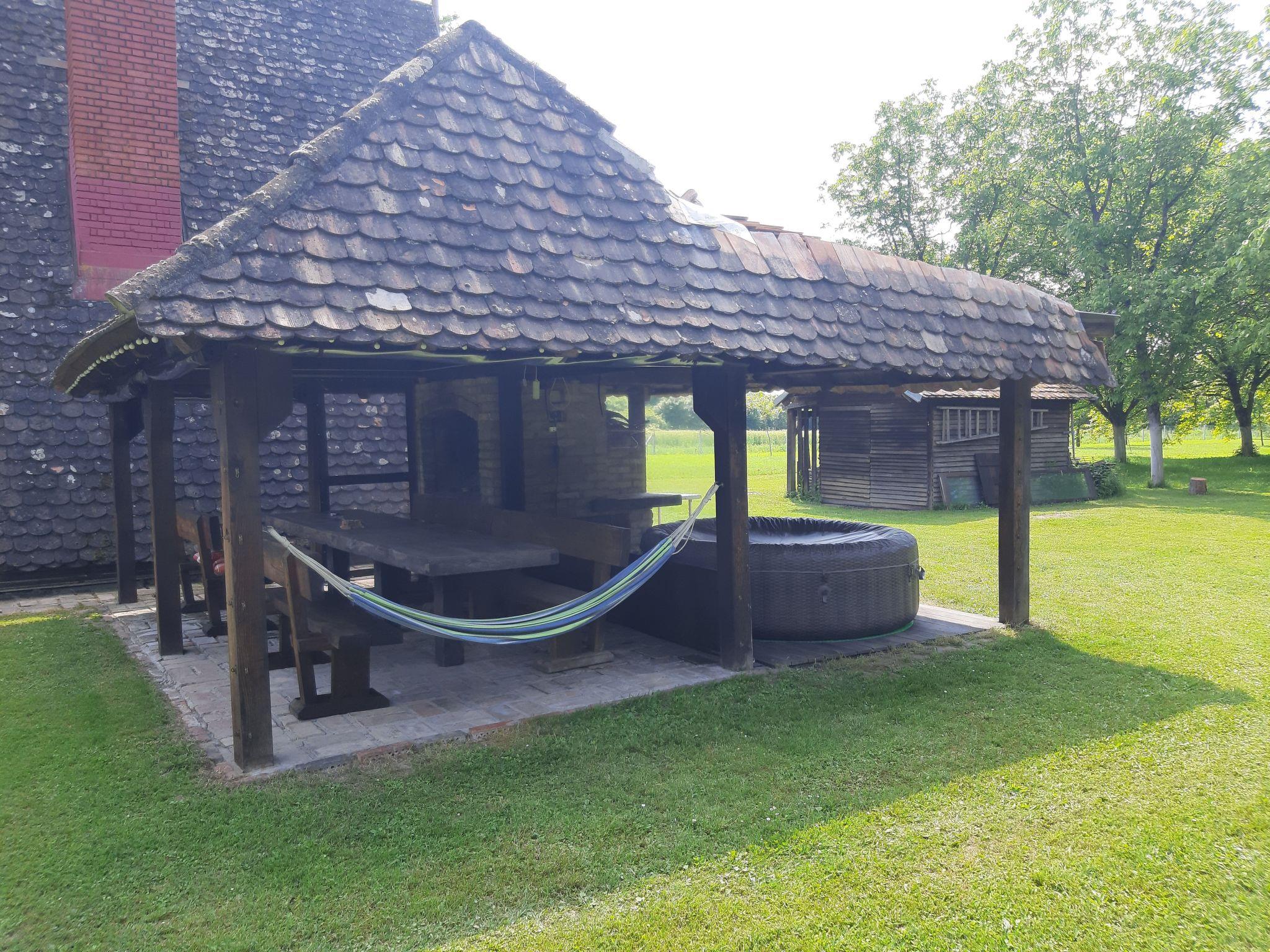 Vom Sonnenbalkon in der oberen Etage können Sie den Blick über das grüne Gartengelände genießen. Und mit einem bisschen Glück lassen sich von hier sogar Störche beobachten. Unten im Gartenbereich können Sie um den traditionellen Steingrill auf der überdachten Terrasse herum lange Mahlzeiten unter blauem Himmel genießen. Ein Auto wird während Ihres Aufenthaltes empfohlen, Parkplätze bieten sich direkt vorm Haus.