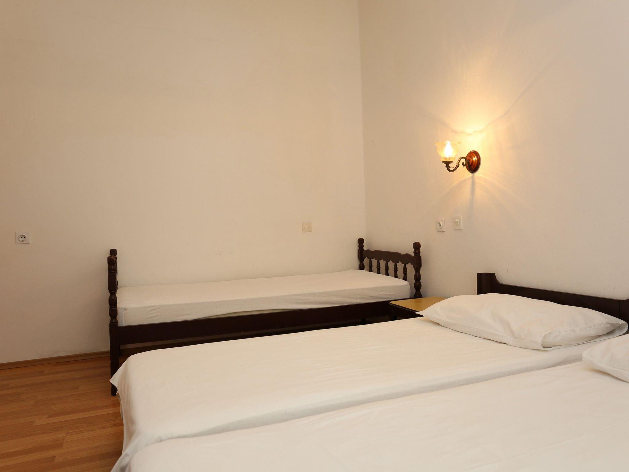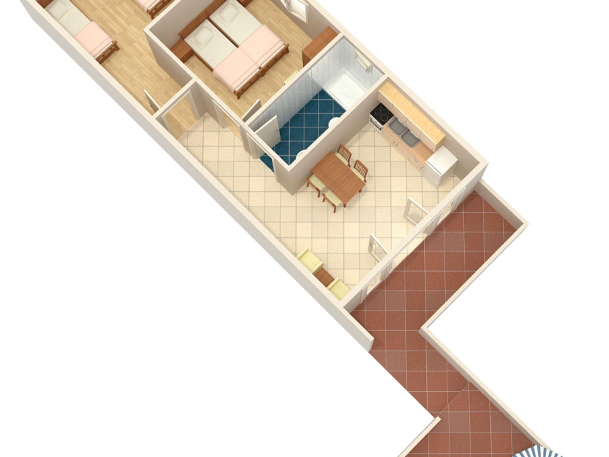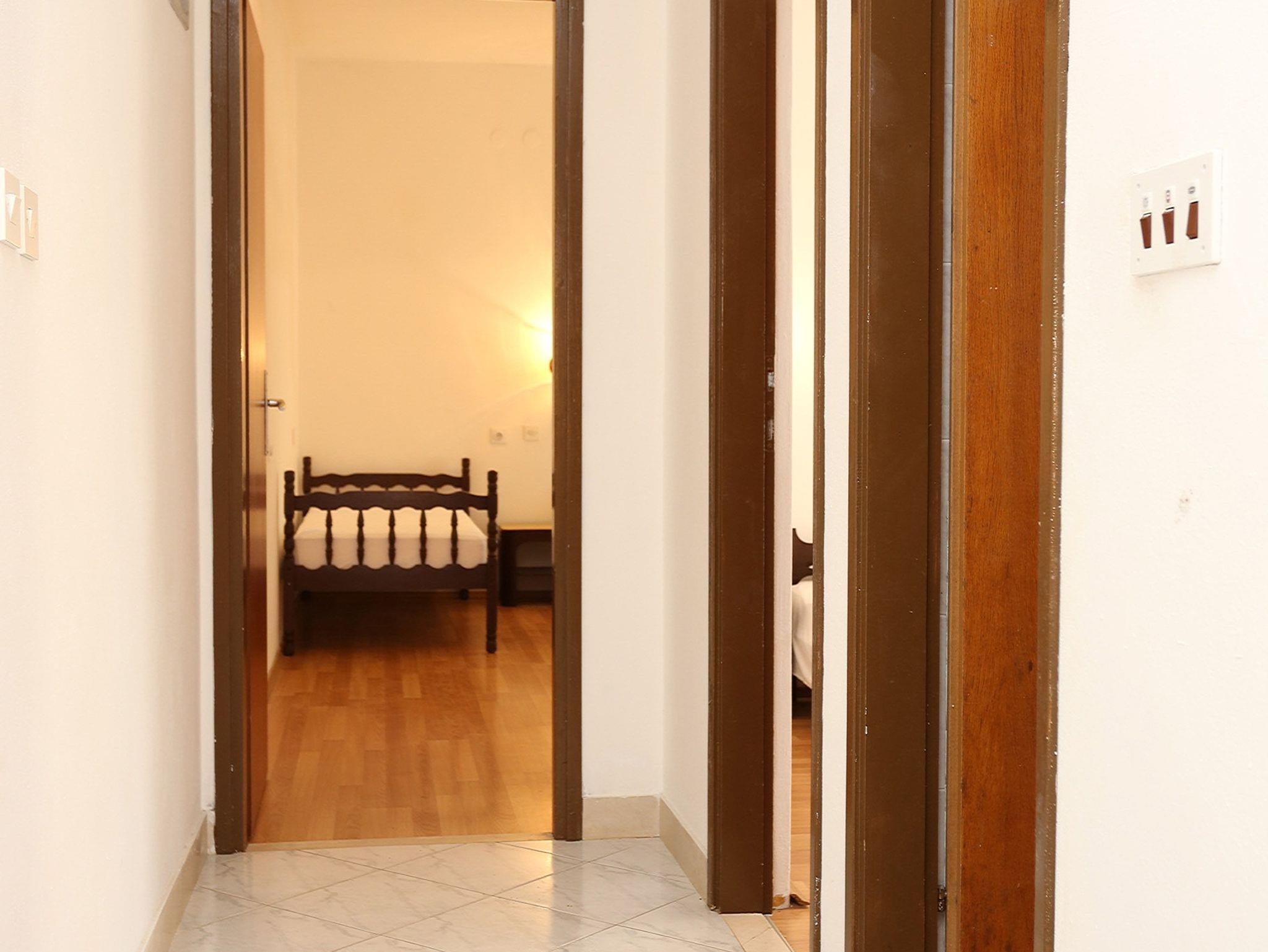 Ferienwohnung bietet Platz für 6 Gäste. Die Betten sind in Schlafzimmern, die es 2 gibt, und in Esszimmer, innerhalb einer Gesamtfläche von 50m2, angeordnet. Die Gäste haben eine eigene Terrasse zur Verfügung, auf der sie in warmen Sommernächten genießen können. Das Apartment bietet Meerblick. Es ist erlaubt, Speisen auf dem Gemeinschafts-Grill vorzubereiten. Unterkunftseinheit hat Räume, die von dem Rest der Einheit abgetrennt werden. IM PREIS INBEGRIFFEN: Kurtaxe, Endreinigung, Klimatisierung, Parkplatz, Internet, Bootsanlegeplatz, Bügeleisen, Bügelbrett, Liegestühle. VERBINDLICHE ZUSÄTZLICHE KOSTEN: Aufzahlung für Kurzaufenthalte (prozentualer Zuschlag pro Nächtigungsanzahl: 30% - 1, 20% - 2, 10% - 3). UNVERBINDLICHE ZUSÄTZLICHE KOSTEN: Zusatzbett (8,00 € pro Nacht). Die Verfügbarkeit zusätzlicher Dienstleistungen in Ihrem reservierten Termin und die Preise derselben (falls nicht aufgeführt) müssen im Voraus überprüft werden. Zusätzliche Dienstleistungen die in der Zahlungsaufforderung nicht aufgeführt sind werden direkt beim Vermieter bezahlt, angenommen der Gast nutzt auch diese. Ermäßigung auf den Grundpreis: Gratistag 14=13 (bei einem Aufenthalt von 14 Tagen oder mehr erhalten Sie einen Gratistag für den Aufenthalt bis 31.12.26).