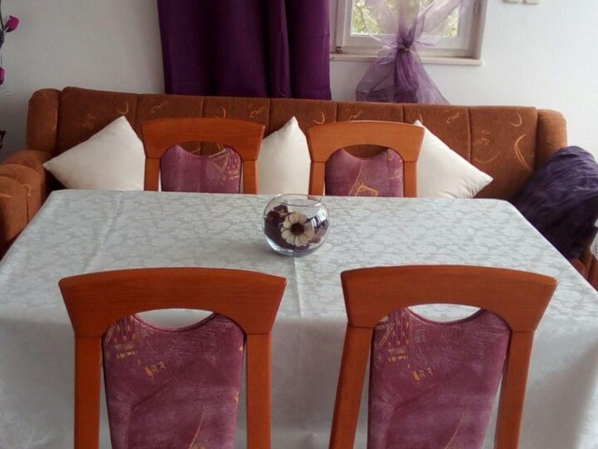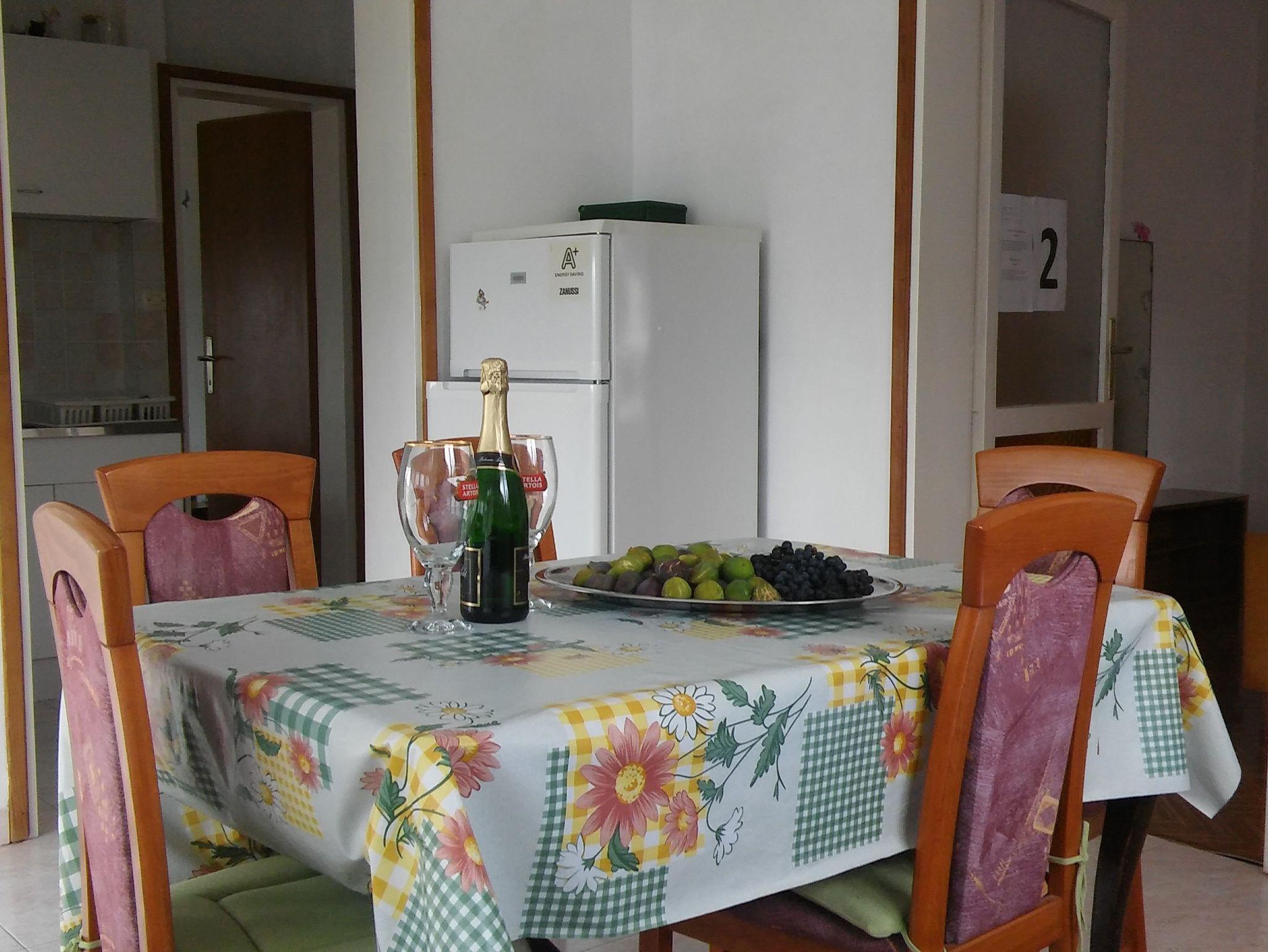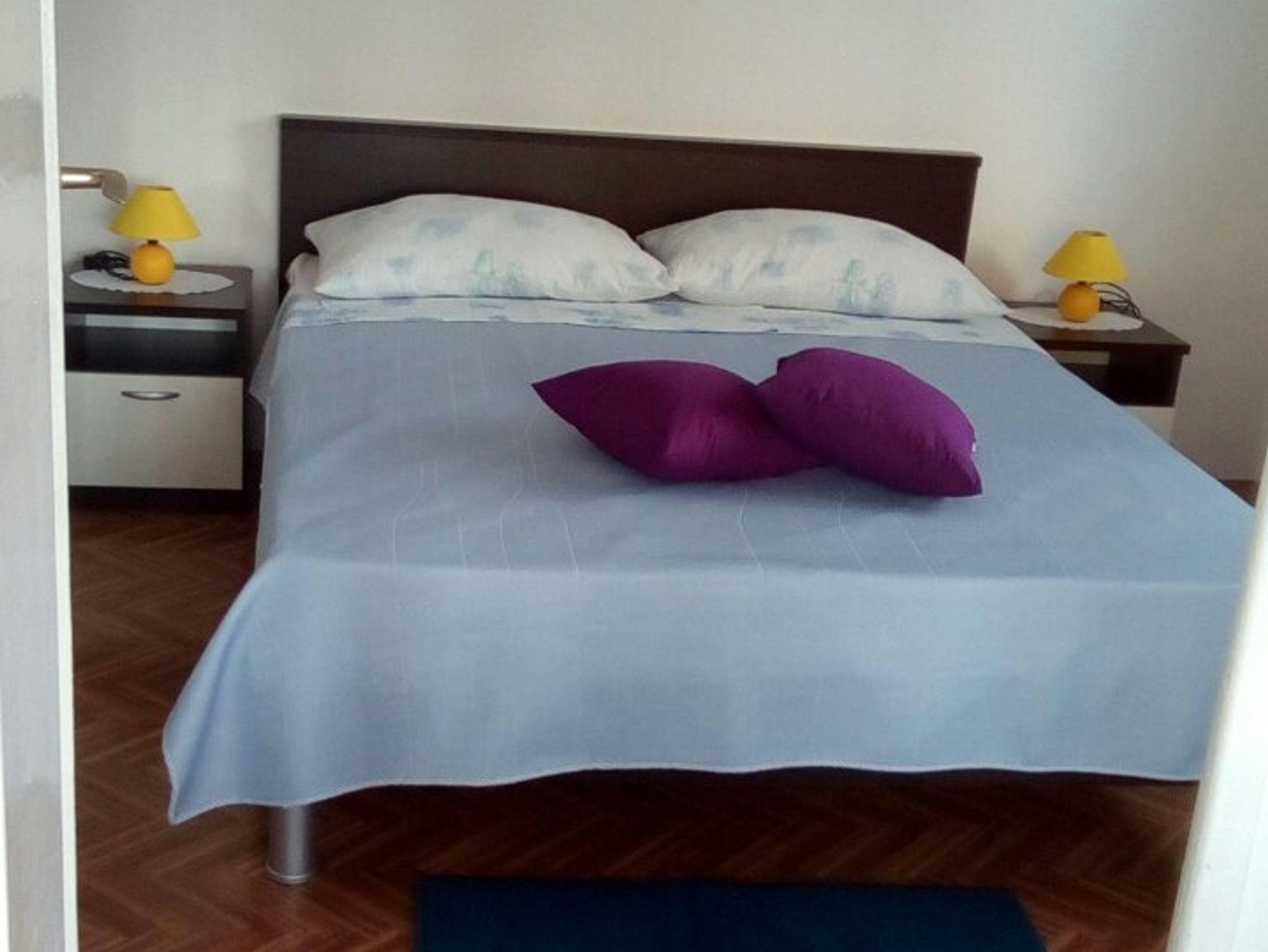 Ferienwohnung bietet Platz für 5 Gäste. Die Betten sind in Schlafzimmern, die es 2 gibt, innerhalb einer Gesamtfläche von 50m2, angeordnet. Die Gäste haben einen eigenen Balkon zur Verfügung, auf der sie in warmen Sommernächten genießen können. Das Apartment bietet Meerblick. Es ist erlaubt, Speisen auf dem Gemeinschafts-Grill vorzubereiten. IM PREIS INBEGRIFFEN: Kurtaxe, Endreinigung, Klimatisierung, Parkplatz, Garage, Internet, Wäschewaschen, Bootsanlegeplatz, Bügeleisen, Bügelbrett, Föhn, Liegestühle. VERBINDLICHE ZUSÄTZLICHE KOSTEN: Aufzahlung für Kurzaufenthalte (prozentualer Zuschlag pro Nächtigungsanzahl: 30% - 1, 20% - 2, 10% - 3). Die Verfügbarkeit zusätzlicher Dienstleistungen in Ihrem reservierten Termin und die Preise derselben (falls nicht aufgeführt) müssen im Voraus überprüft werden. Zusätzliche Dienstleistungen die in der Zahlungsaufforderung nicht aufgeführt sind werden direkt beim Vermieter bezahlt, angenommen der Gast nutzt auch diese.