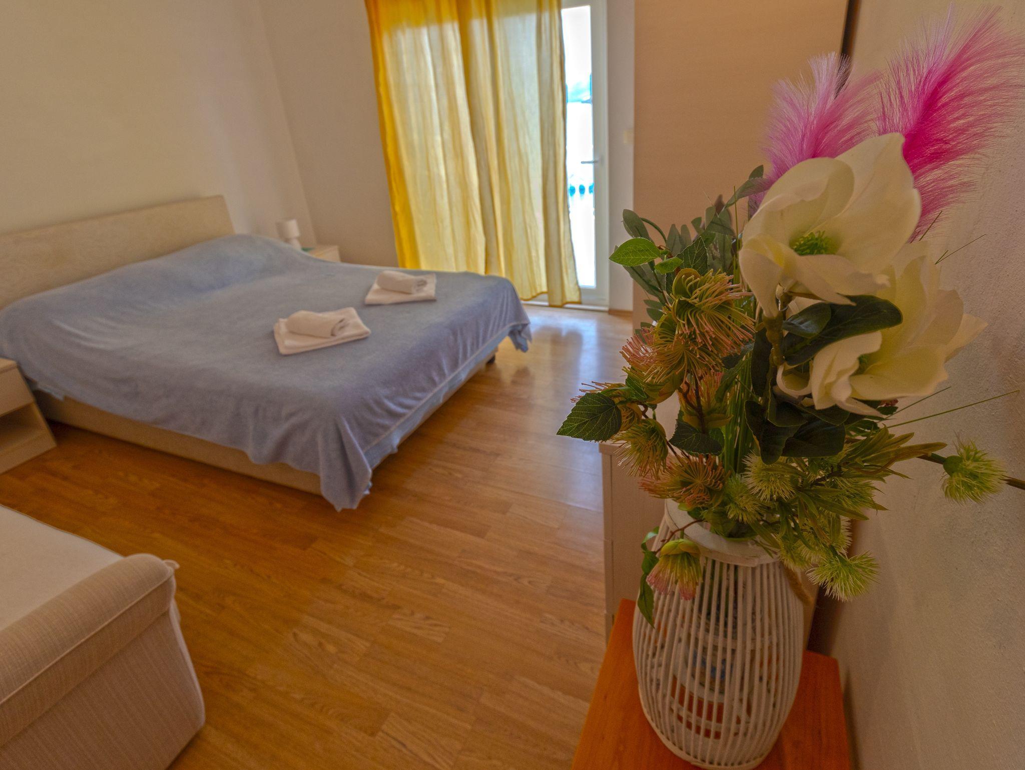 Ferienwohnung bietet Platz für 3 Gäste. Die Betten sind in Schlafzimmern, die es 1 gibt, innerhalb einer Gesamtfläche von 24m2, angeordnet. Die Gäste haben eine eigene Terrasse zur Verfügung, auf der sie in warmen Sommernächten genießen können. Das Apartment bietet Meerblick. Es ist erlaubt, Speisen auf dem Gemeinschafts-Grill vorzubereiten. IM PREIS INBEGRIFFEN: Kurtaxe, Endreinigung, Klimatisierung, Parkplatz, Internet, Bügeleisen, Bügelbrett, Föhn, tragbarer Grill, Liegestühle. Die Verfügbarkeit zusätzlicher Dienstleistungen in Ihrem reservierten Termin und die Preise derselben (falls nicht aufgeführt) müssen im Voraus überprüft werden. Zusätzliche Dienstleistungen die in der Zahlungsaufforderung nicht aufgeführt sind werden direkt beim Vermieter bezahlt, angenommen der Gast nutzt auch diese.